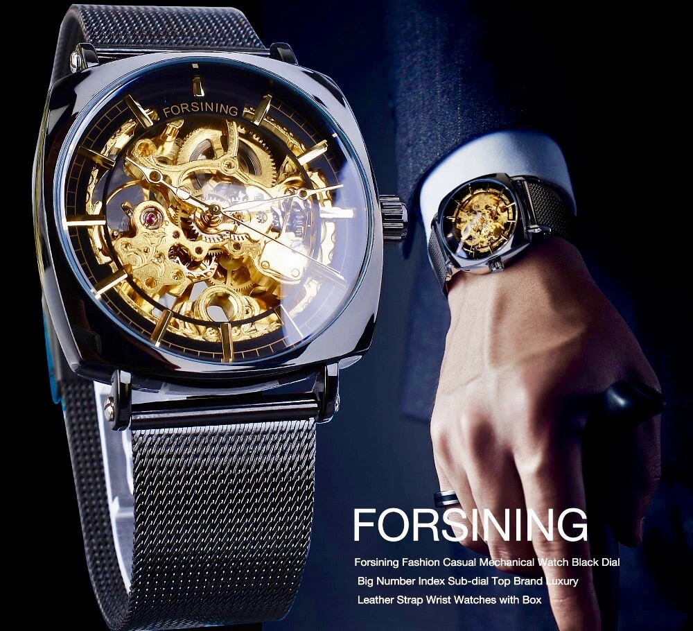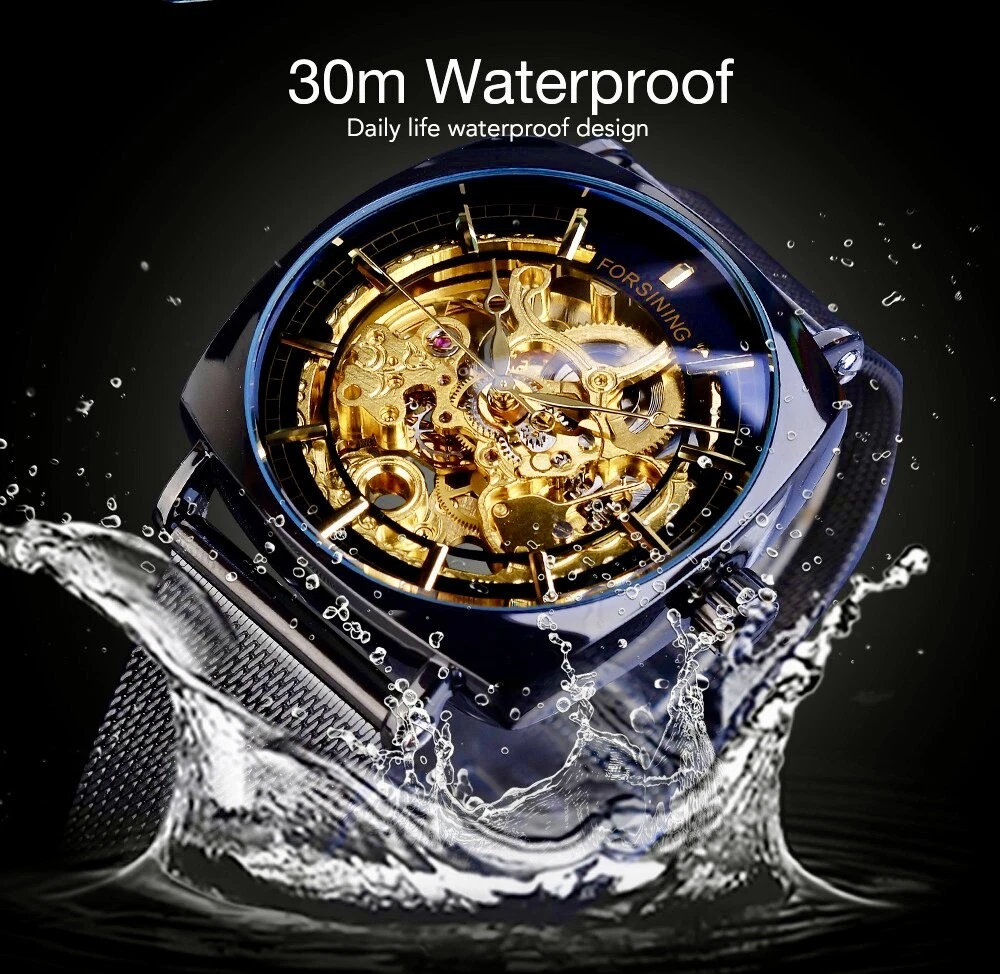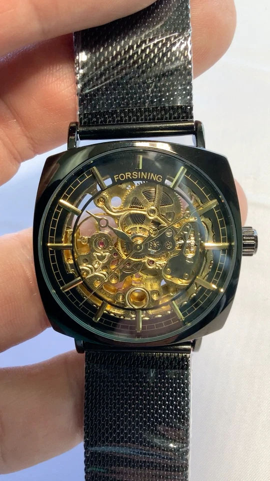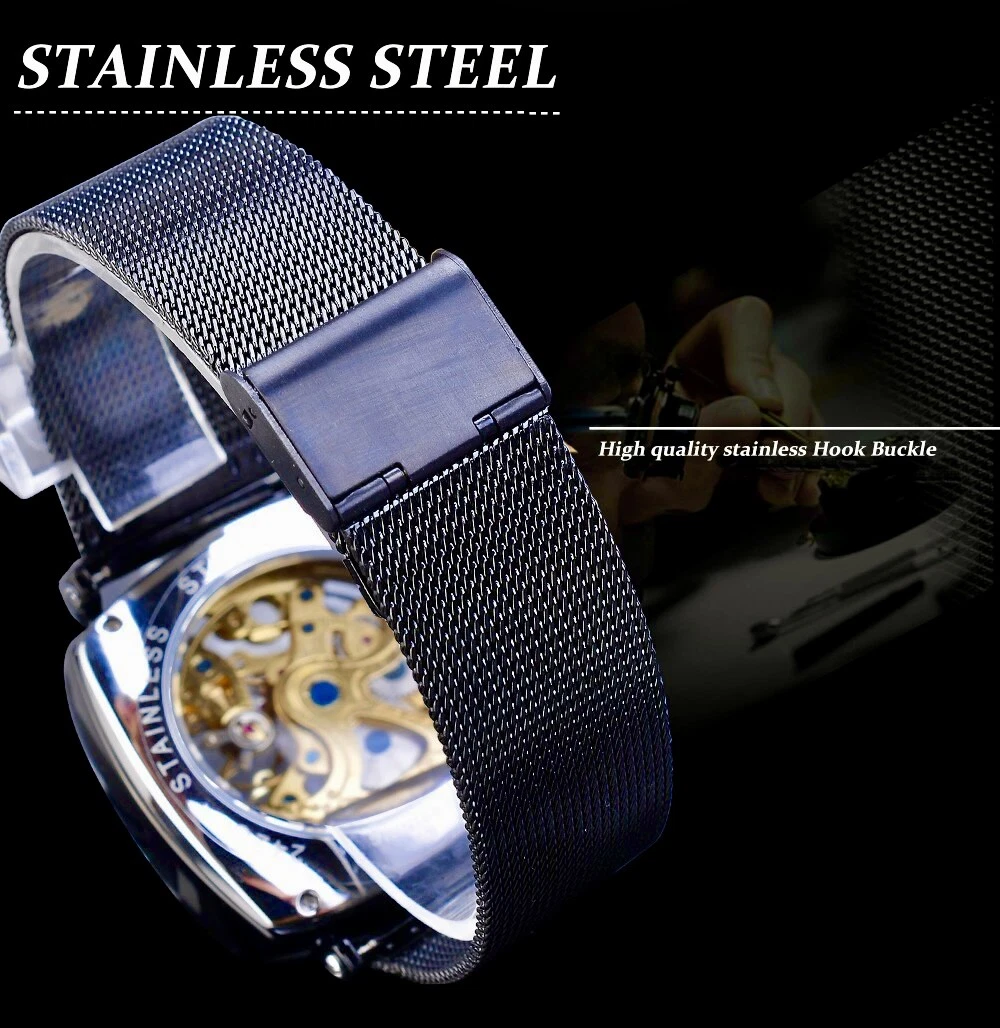 FORSINING Skeleton Transparent Mechanical Automatic Watch, Stainless Mesh Band