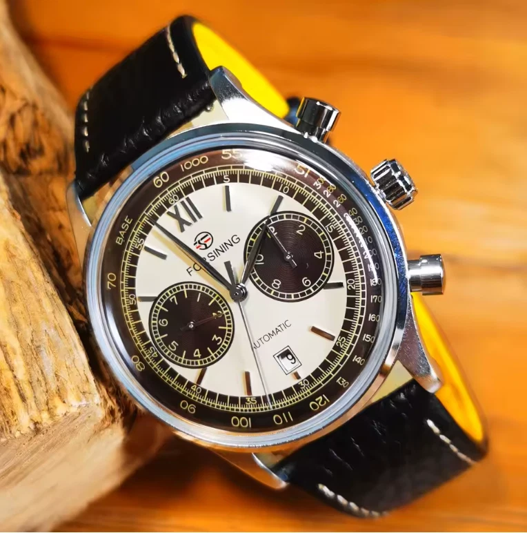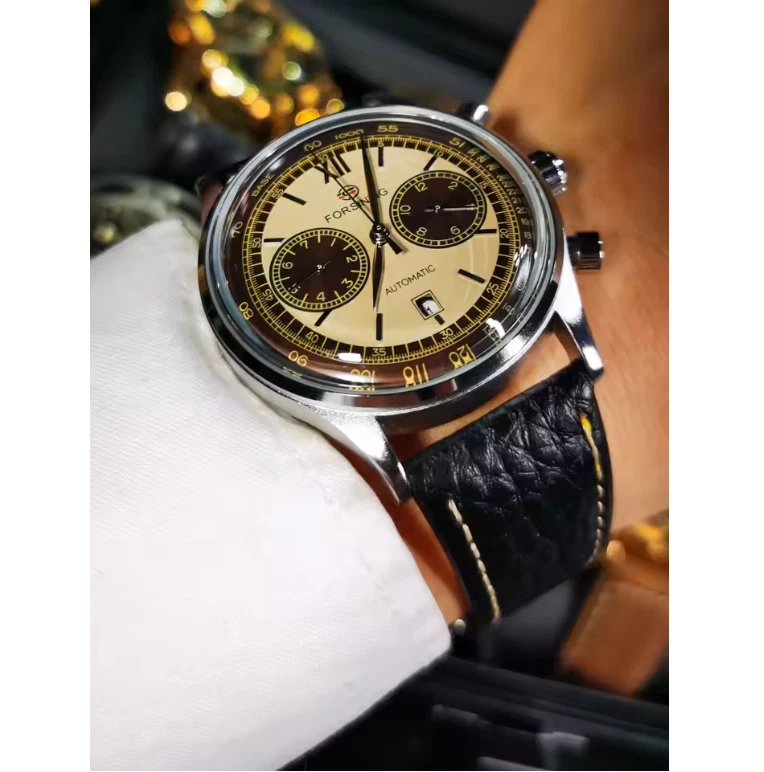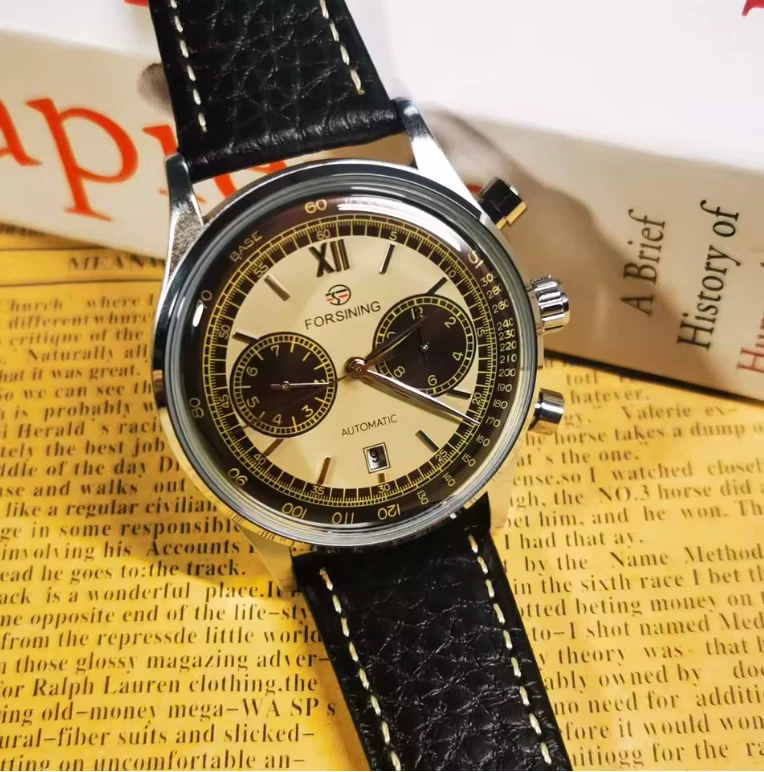 Forsining Mens Watch Automatic Chronograph Watch for Men Classic Leather Strap