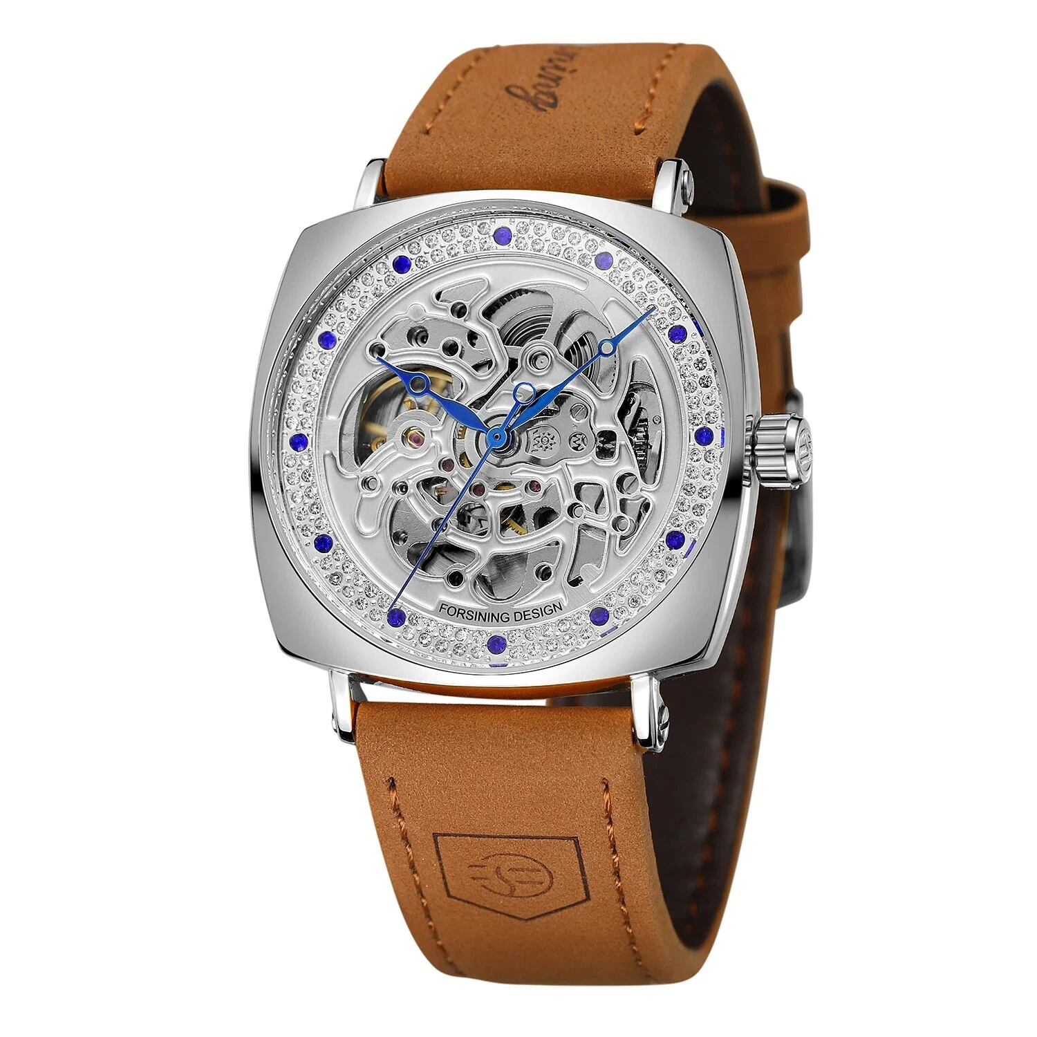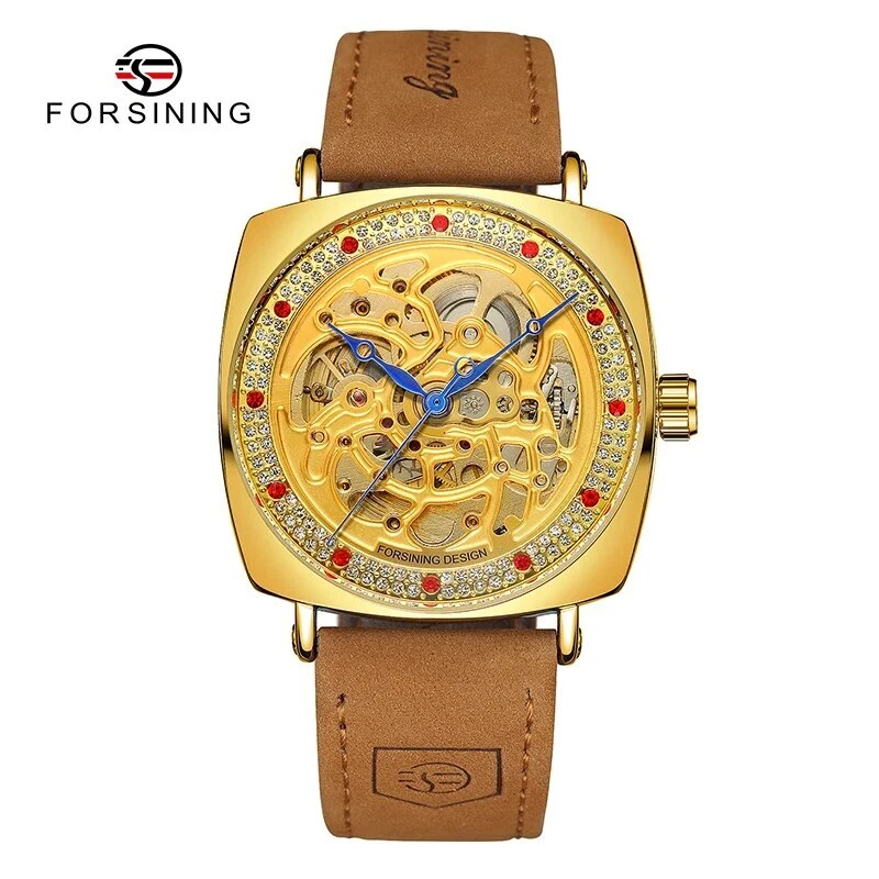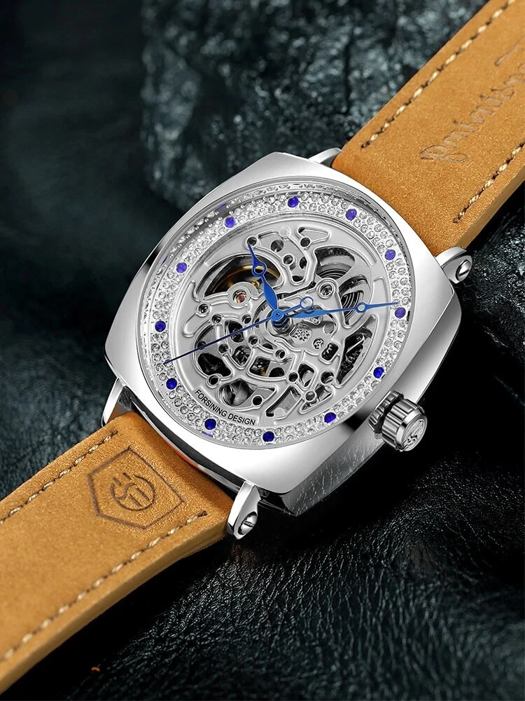 unusual silver Watch Forsining Luxury Leather Strap Skelton Automatic Mechanical