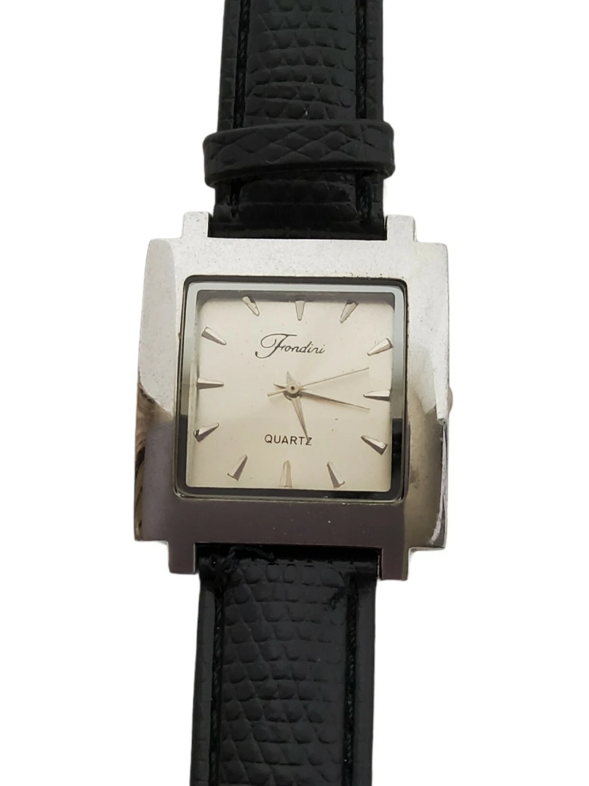 Fondini Quartz Watch, Swiss Parts Unisex Watch Stainless Steel Back Black Band -