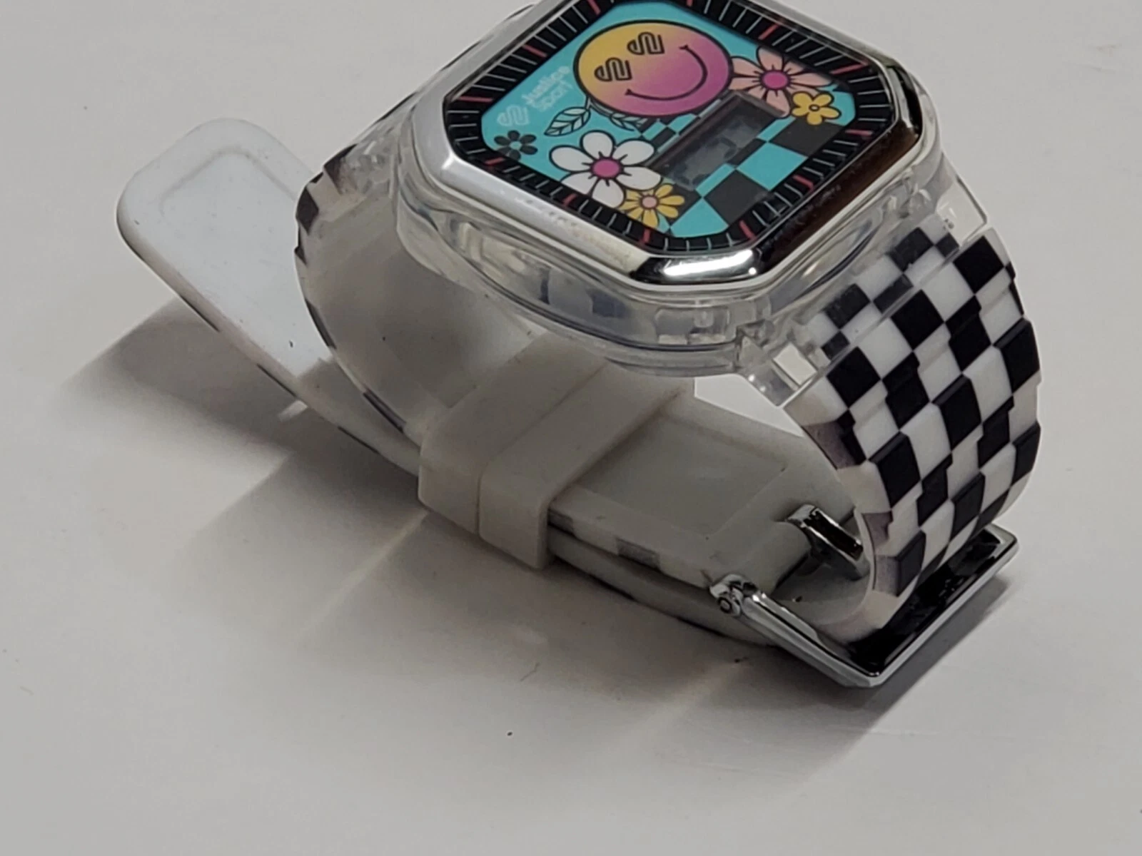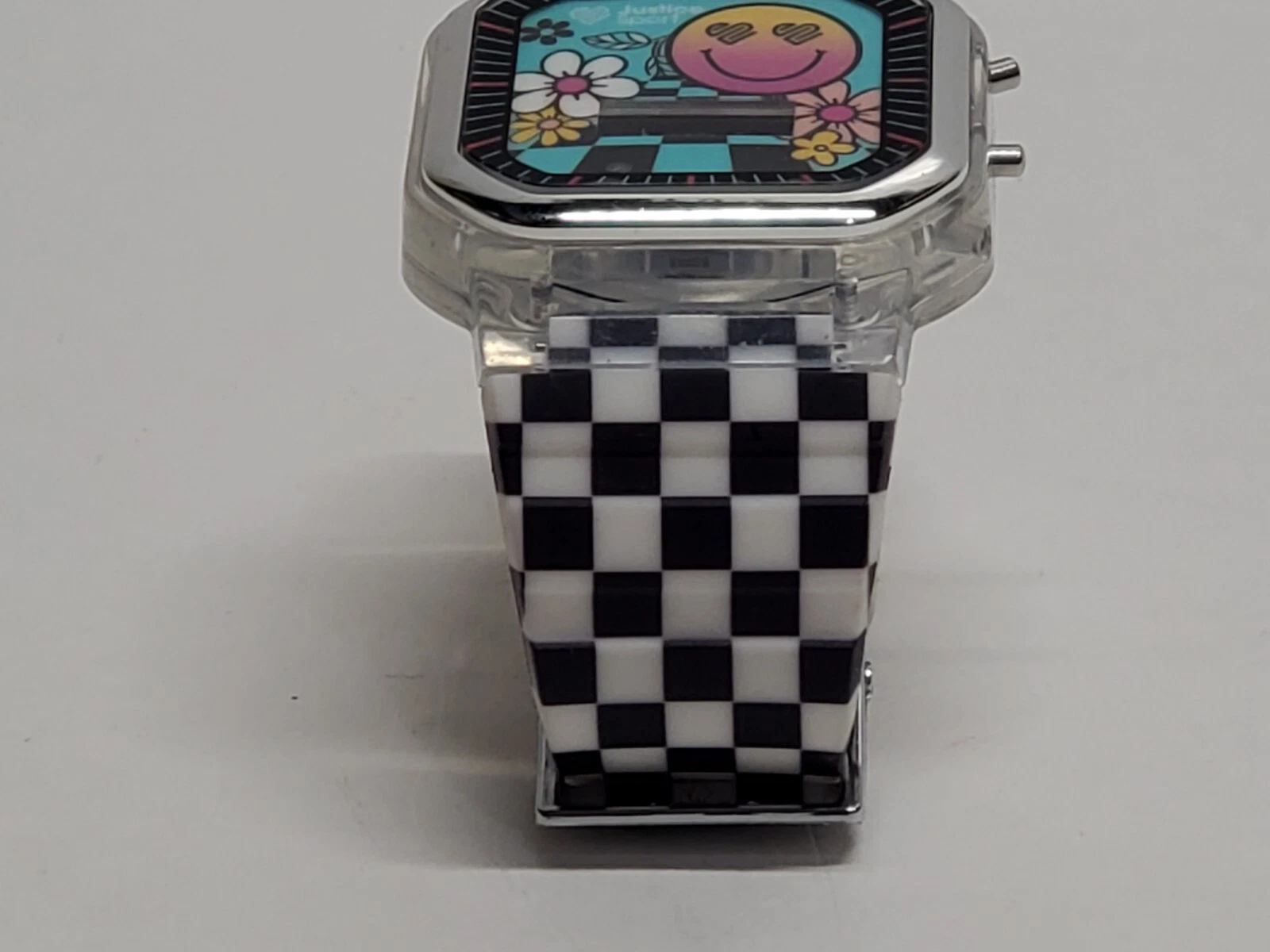 Justice Unisex Watch Child Smiley Face Checkered Flag Black White Silicone Strap
