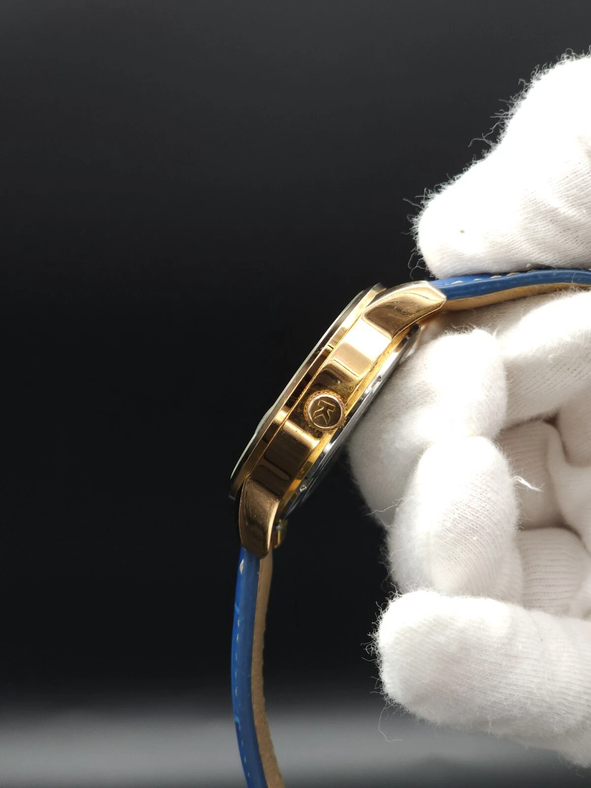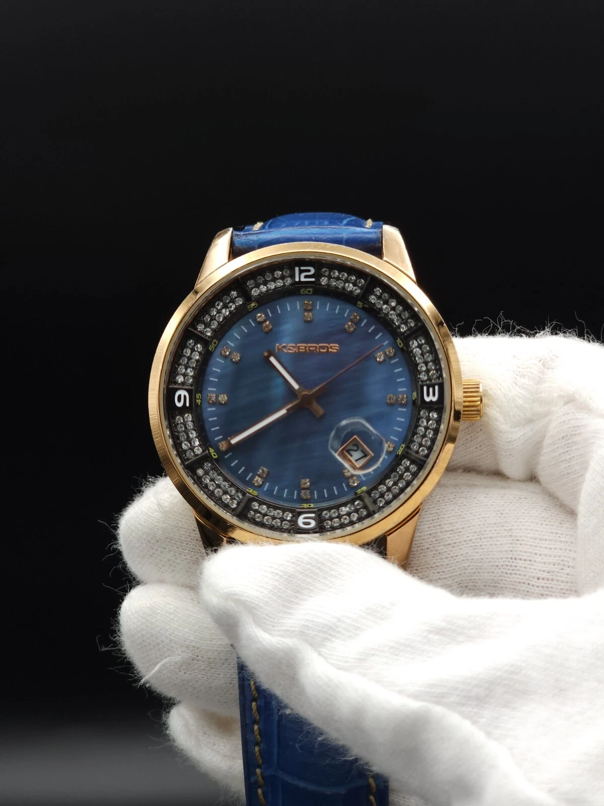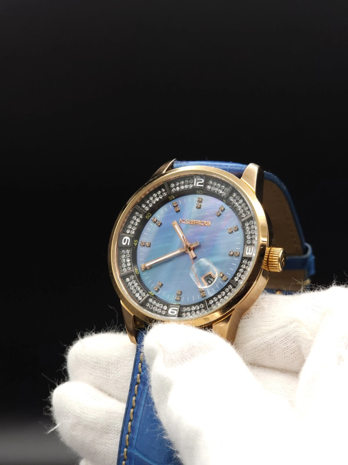 K&BROS Women's 9145-3 Steel Moon Rose Gold Shiny Leather Strap Watch
