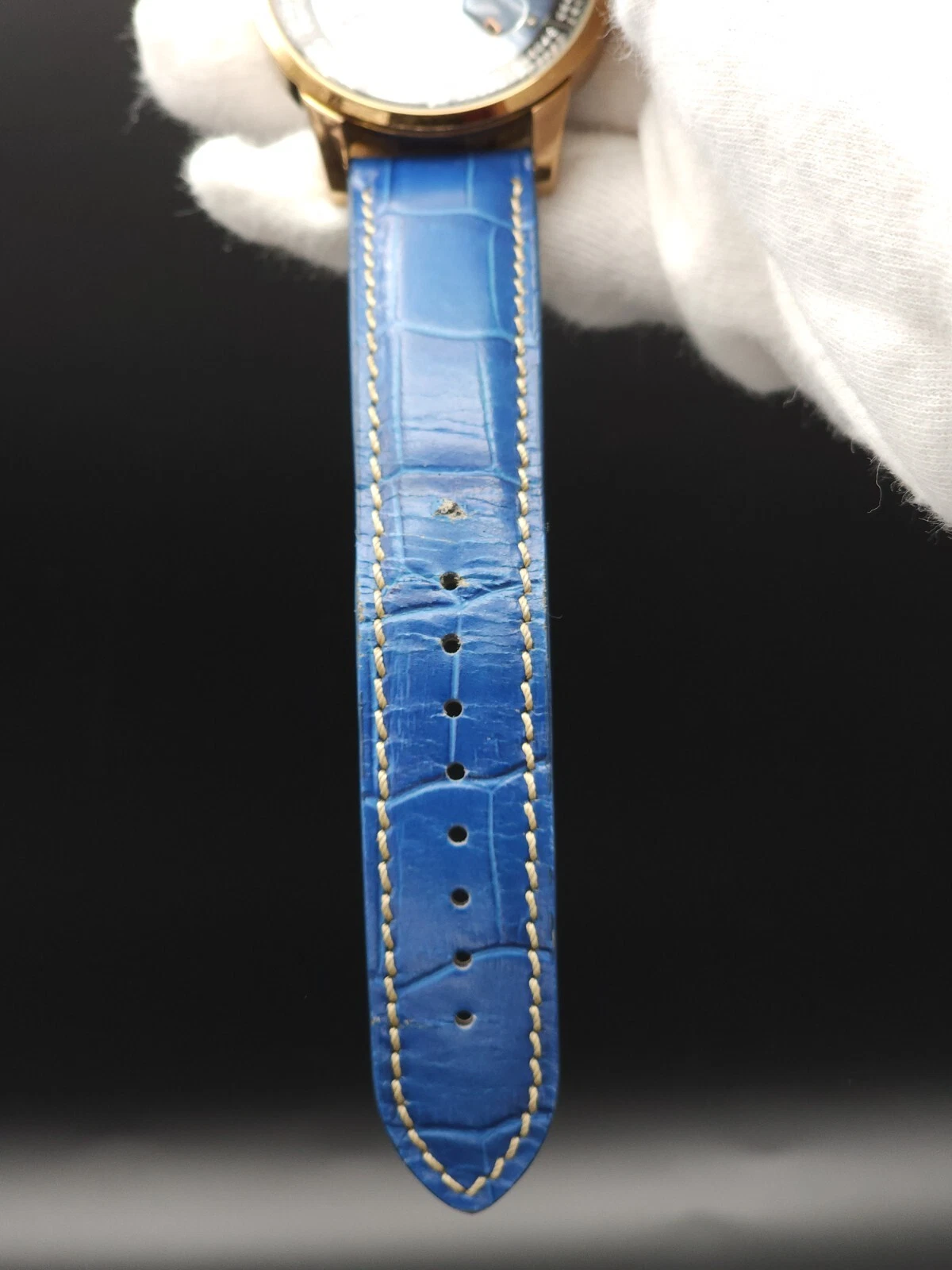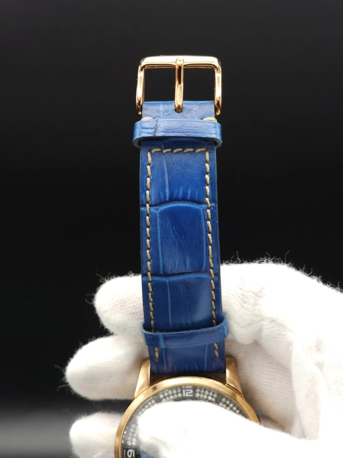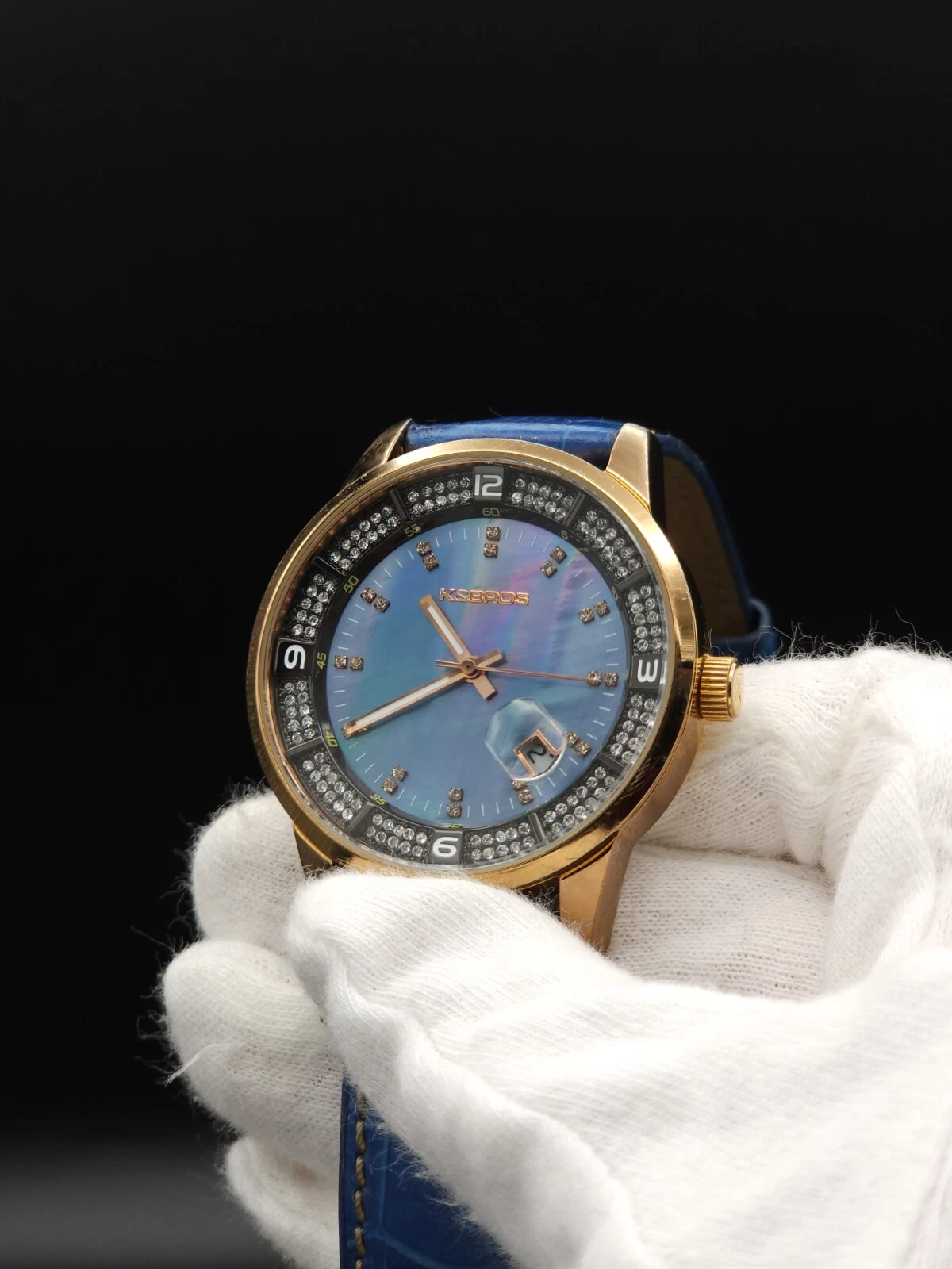 K&BROS Women's 9145-3 Steel Moon Rose Gold Shiny Leather Strap Watch