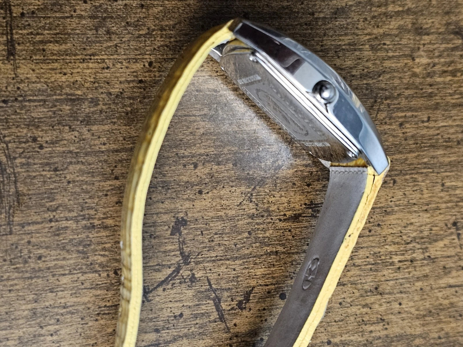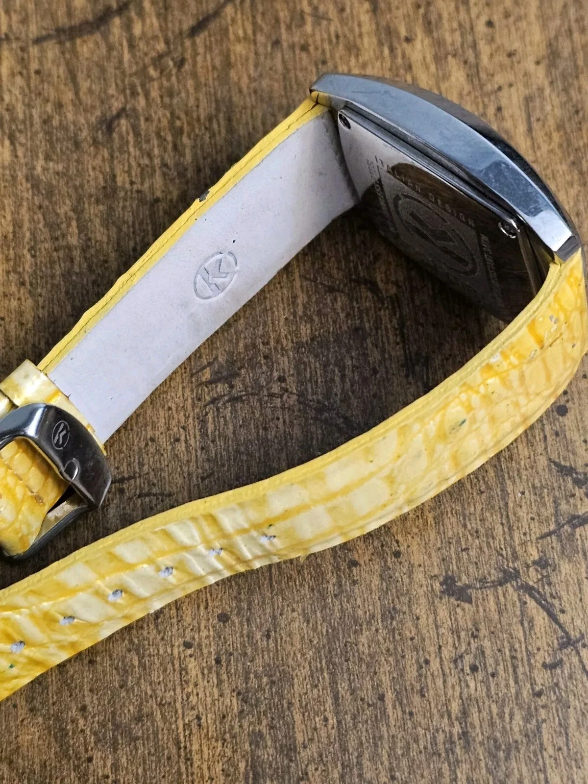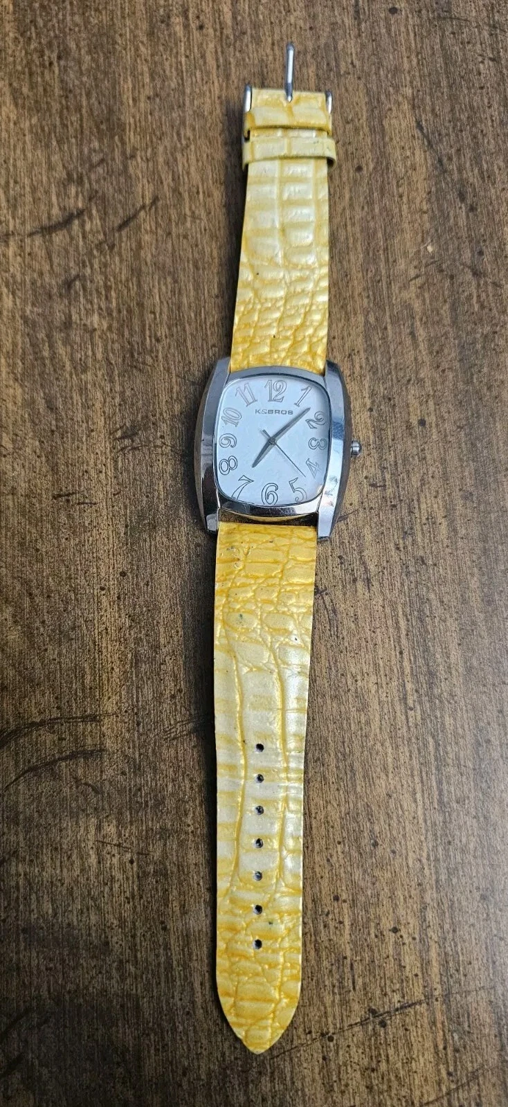 K&Bros Silver-Tone Unisex Watch with Gold Leather Band -New Battery