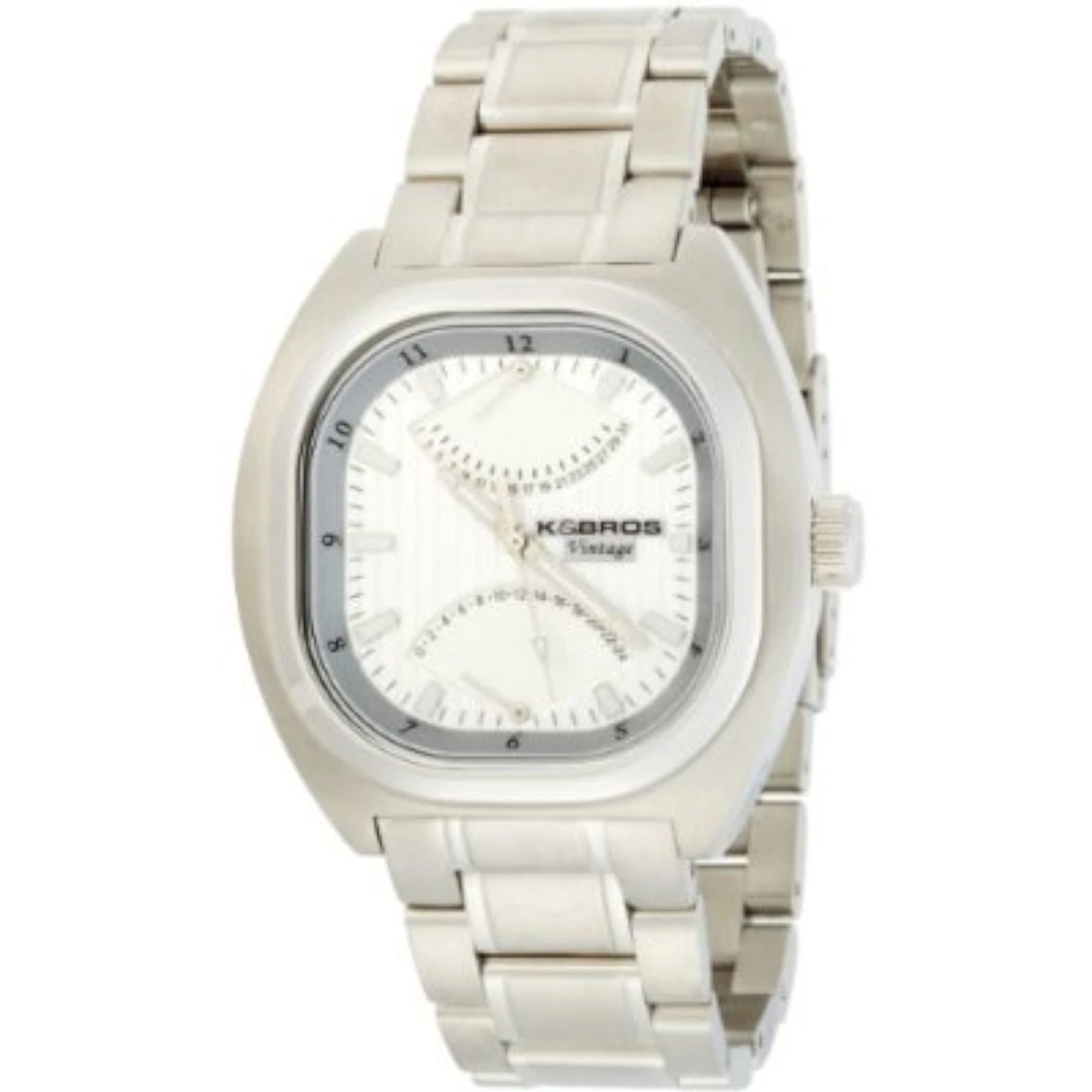 NEW K&BROS 9462-1 Mens Steel Silver-tone Bracelet Black Dial Watch W Month & Day