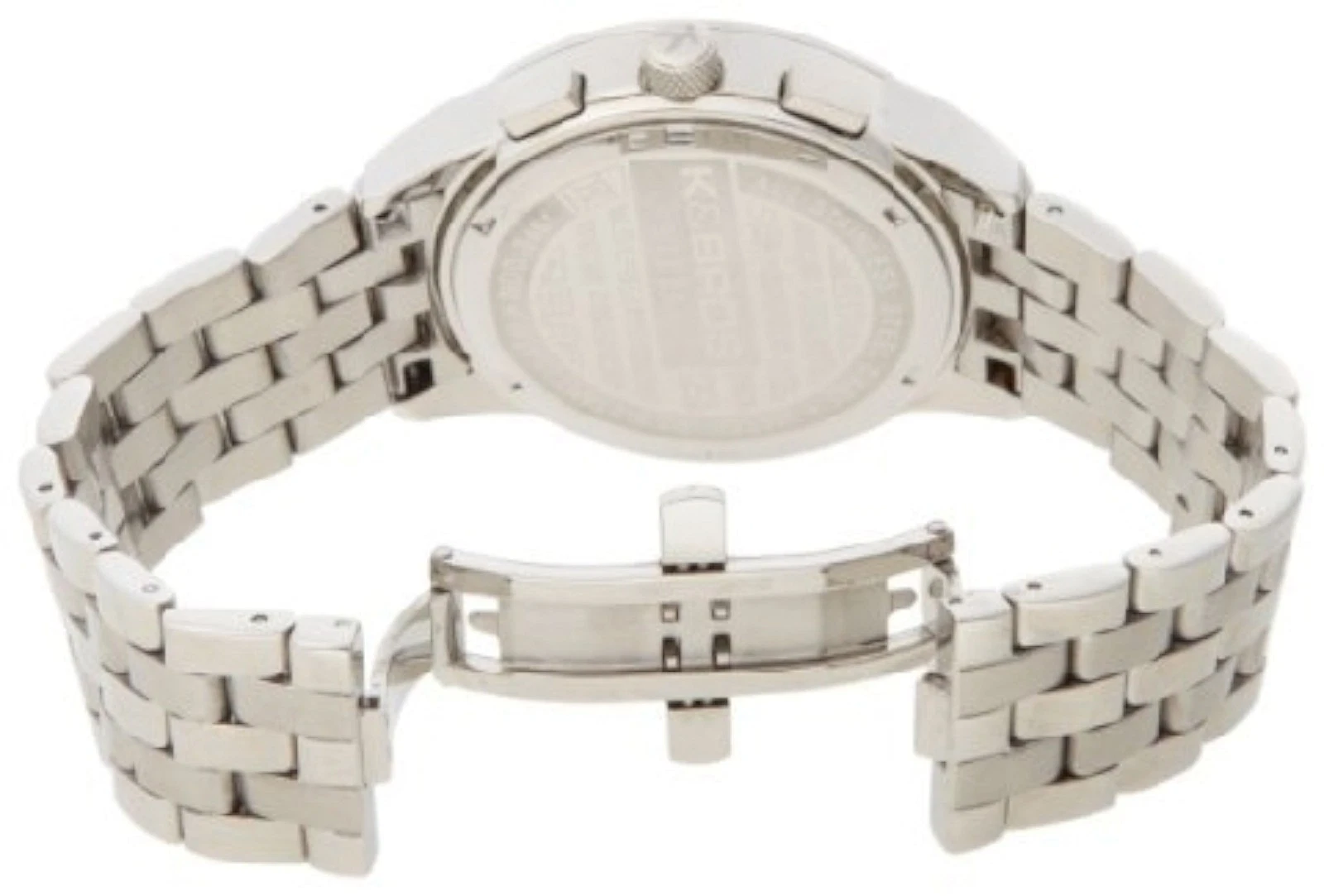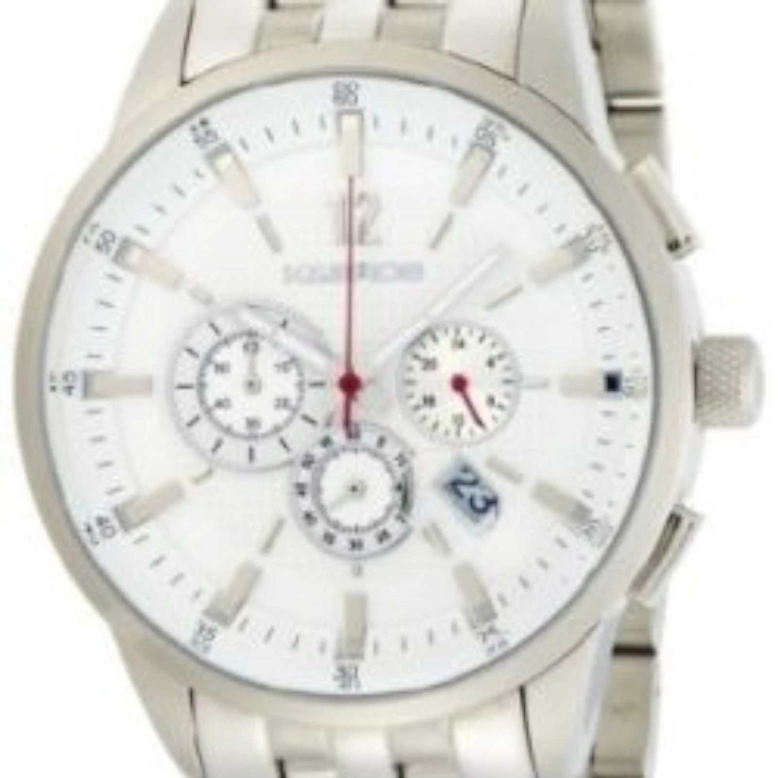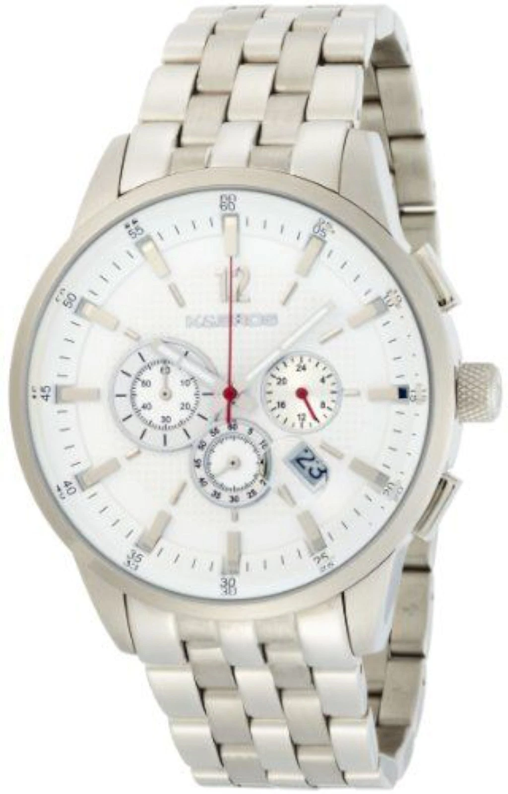 K&BROS 9461-2 Mens Steel Chronograph White Textured Dial Bracelet Watch Date