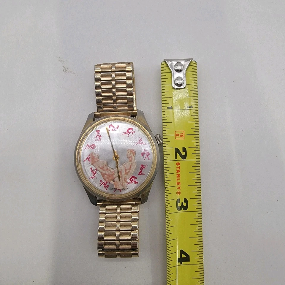 60's Sexual Positions Naughty Men's Wristwatch Hong Kong W/thrusting Second Hand