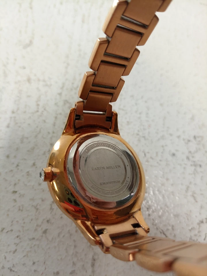 Elegant Karen Millen Rose Gold-Tone Quartz Women's Watch- Spares Or Repairs