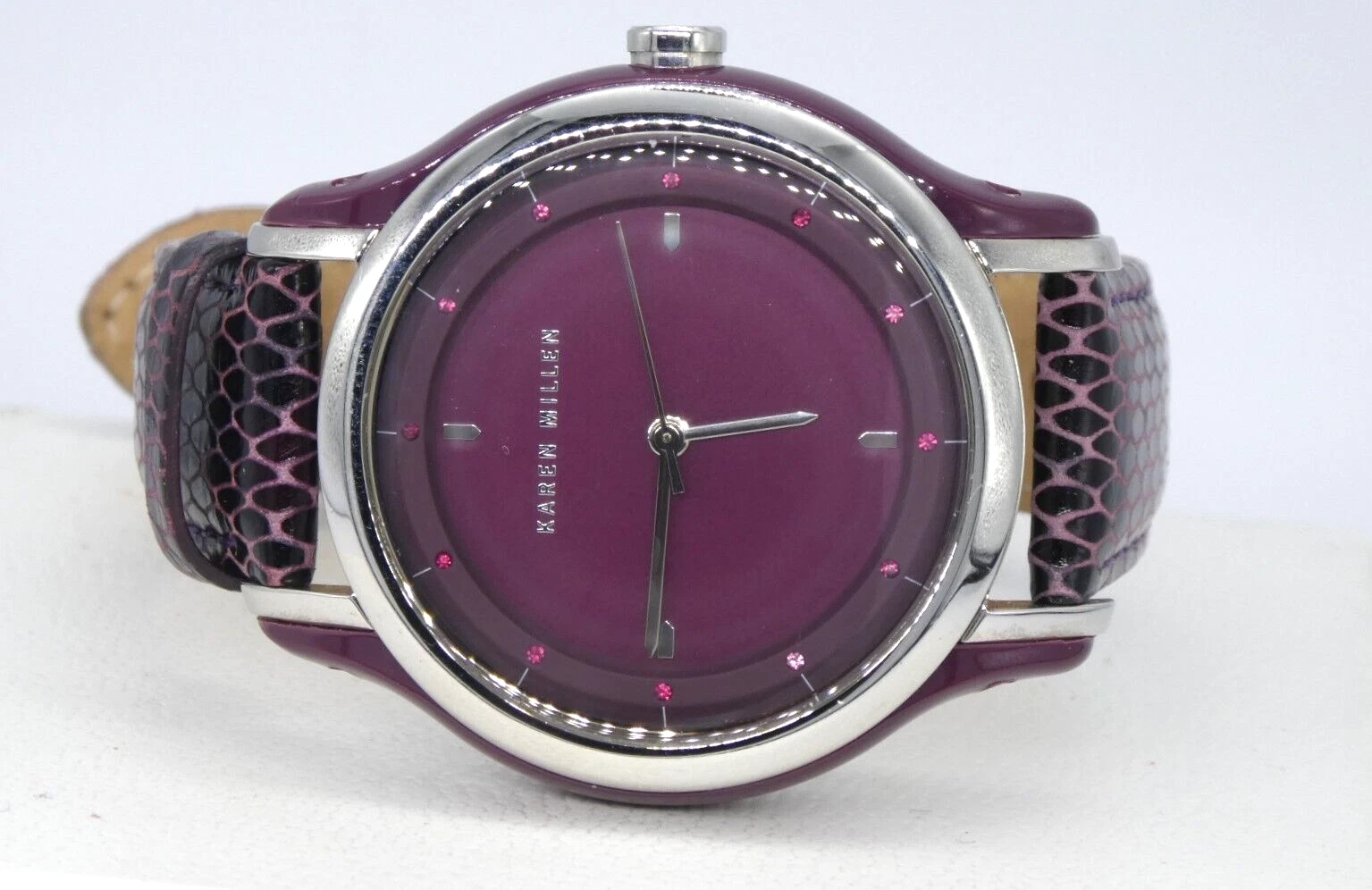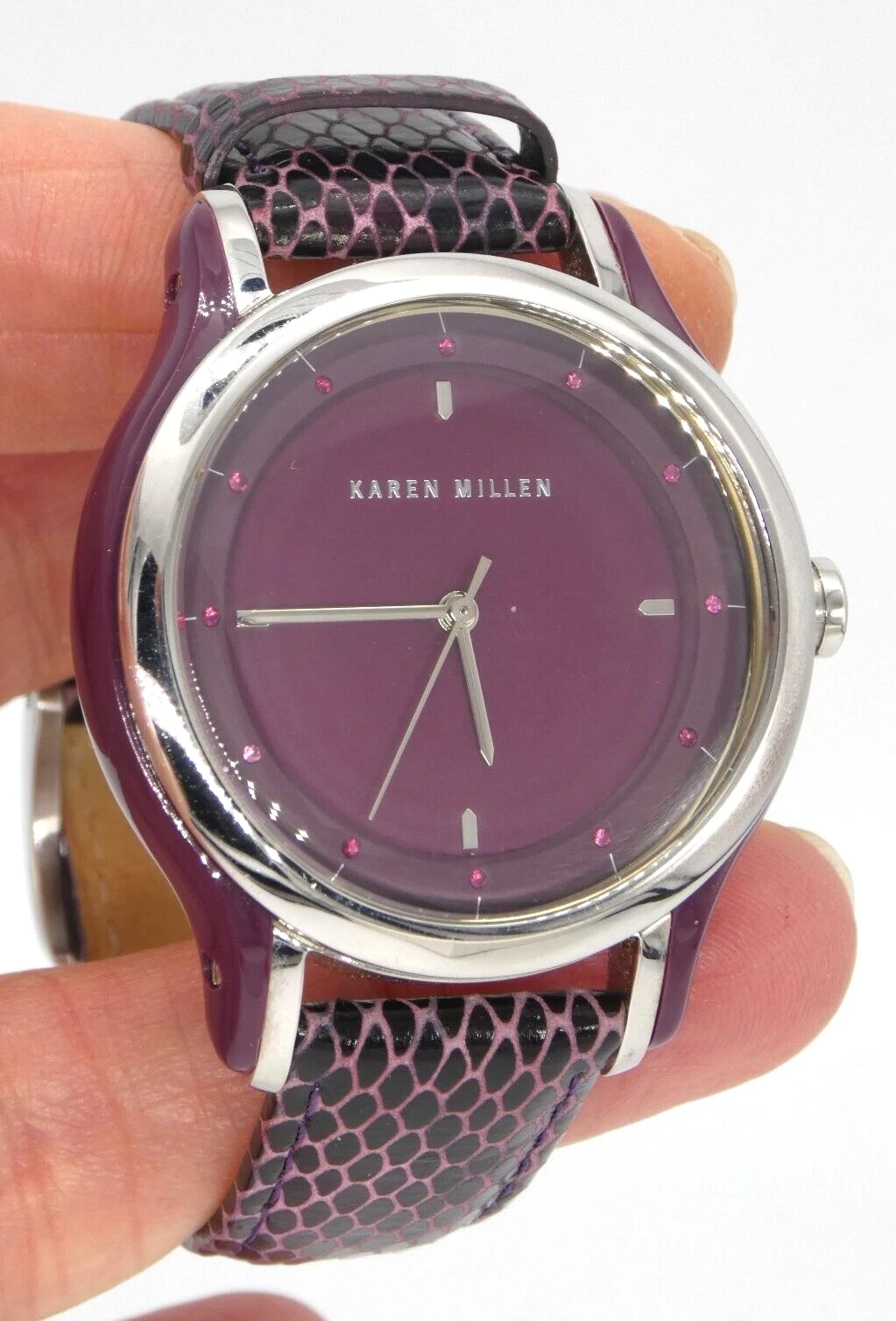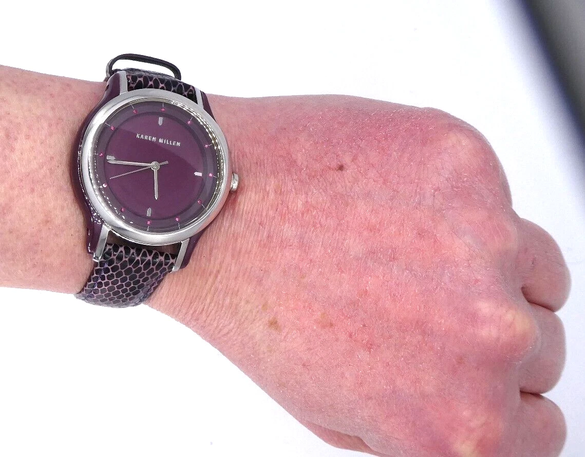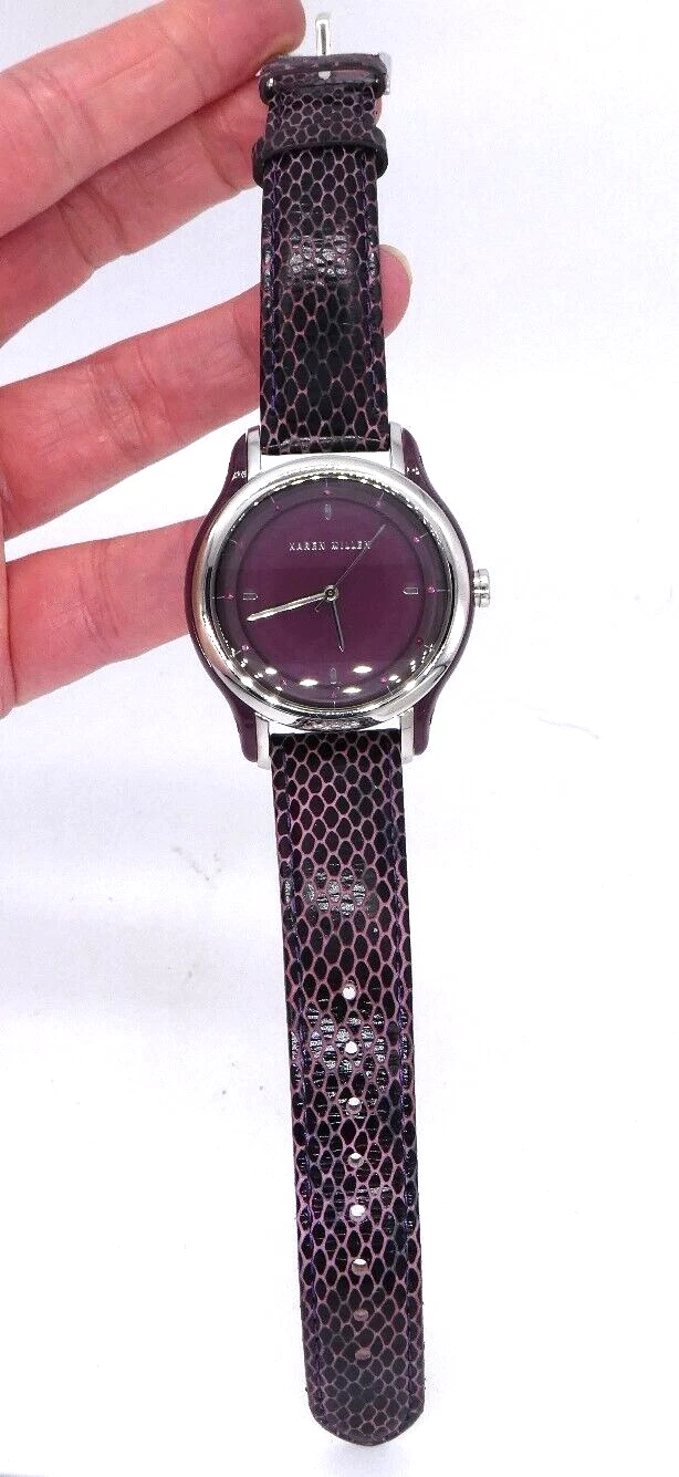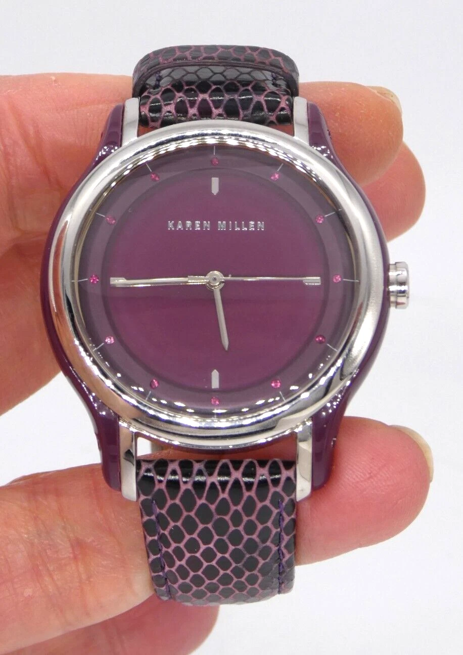 Karen Millen KM105U Ladies Quartz Watch Purple Dial Leather Strap Ex Display