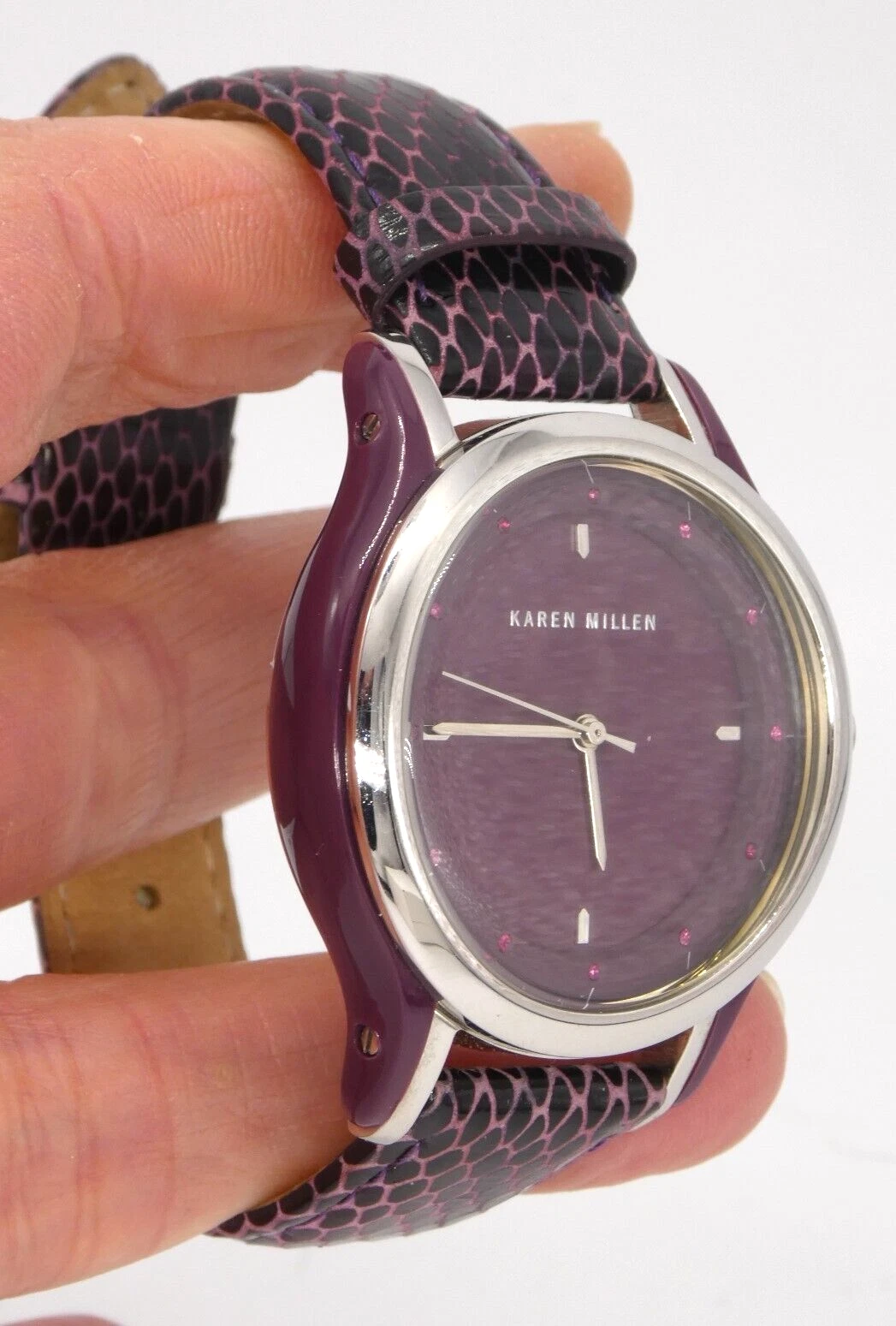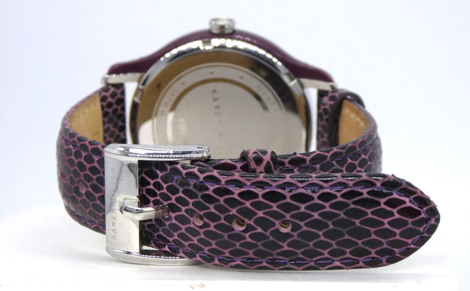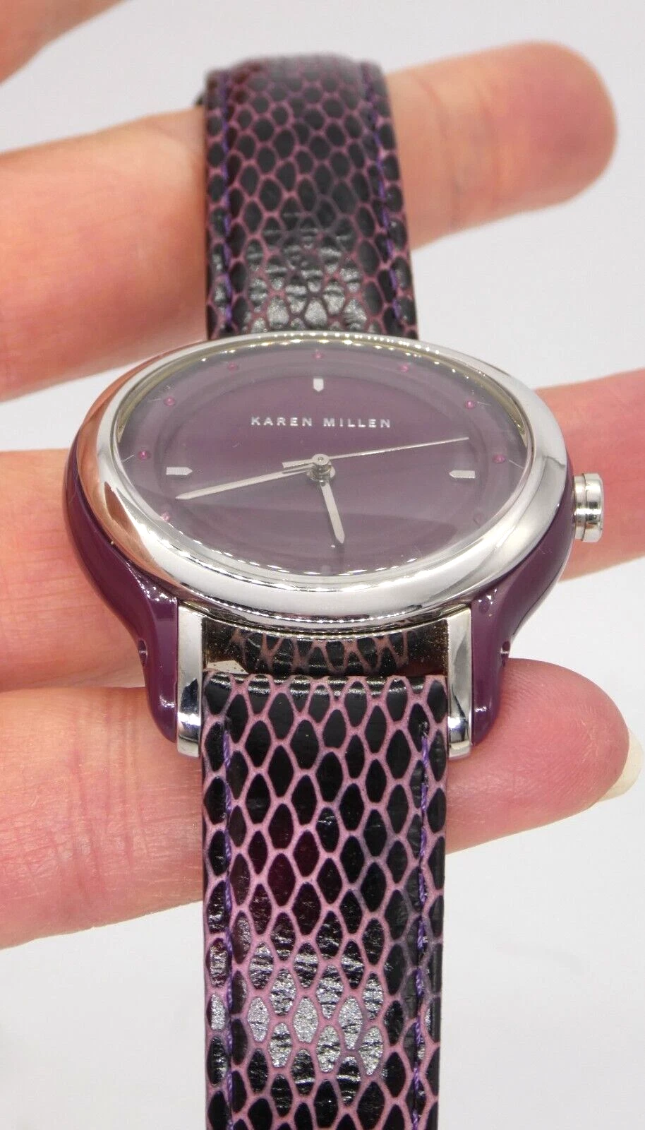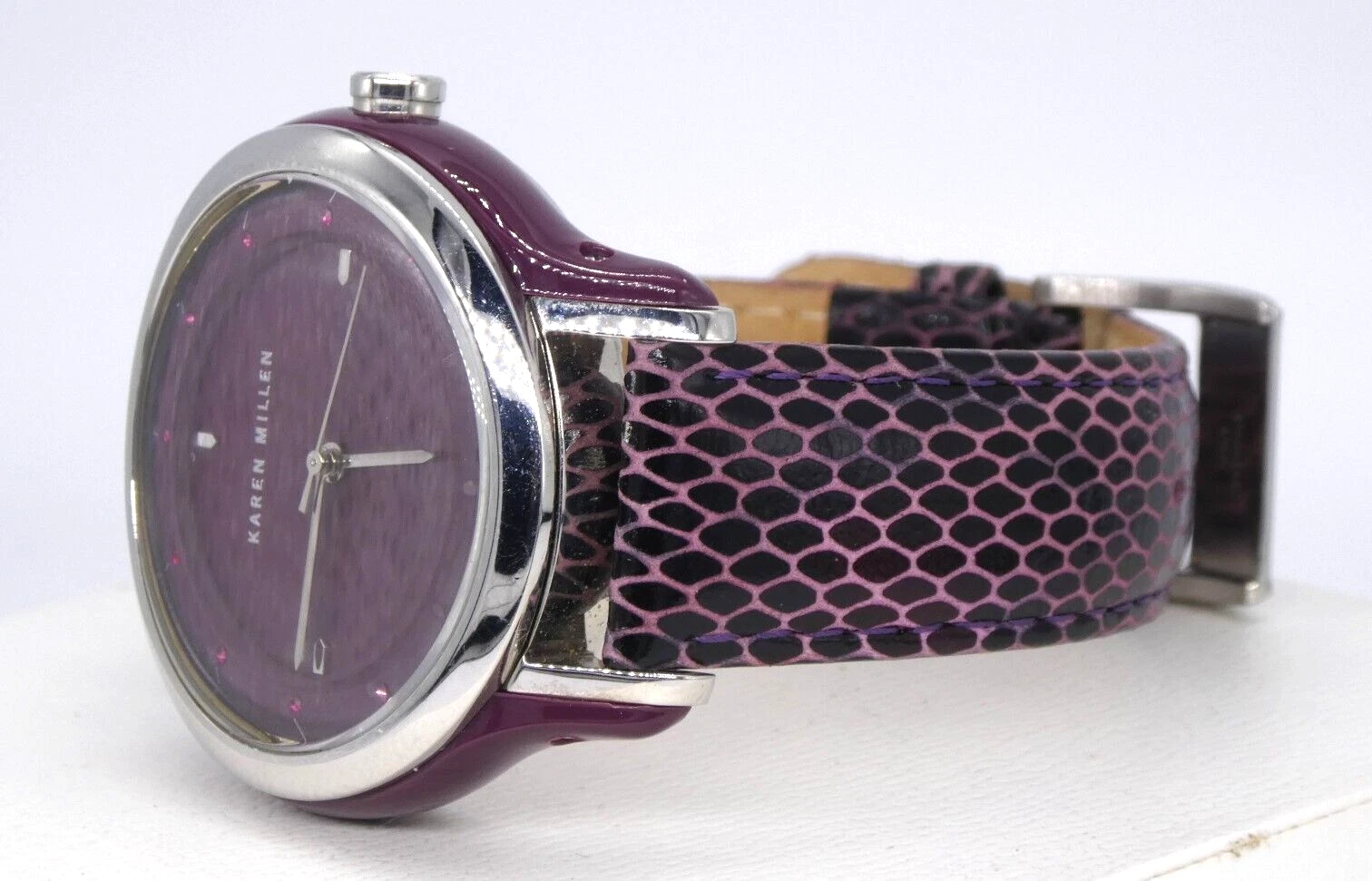 Karen Millen KM105U Ladies Quartz Watch Purple Dial Leather Strap Ex Display