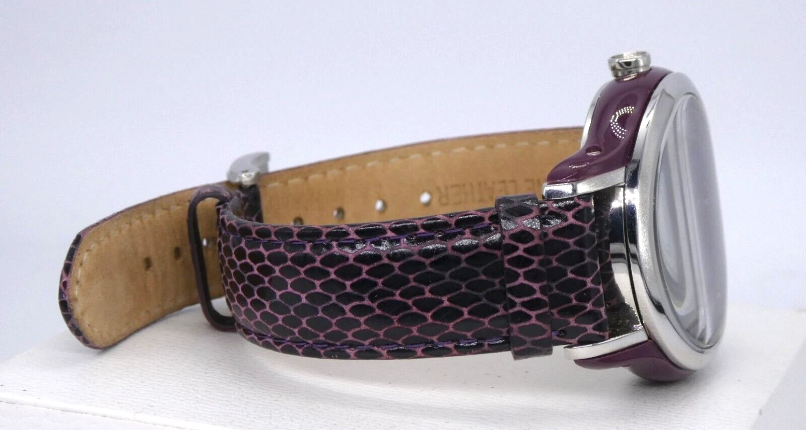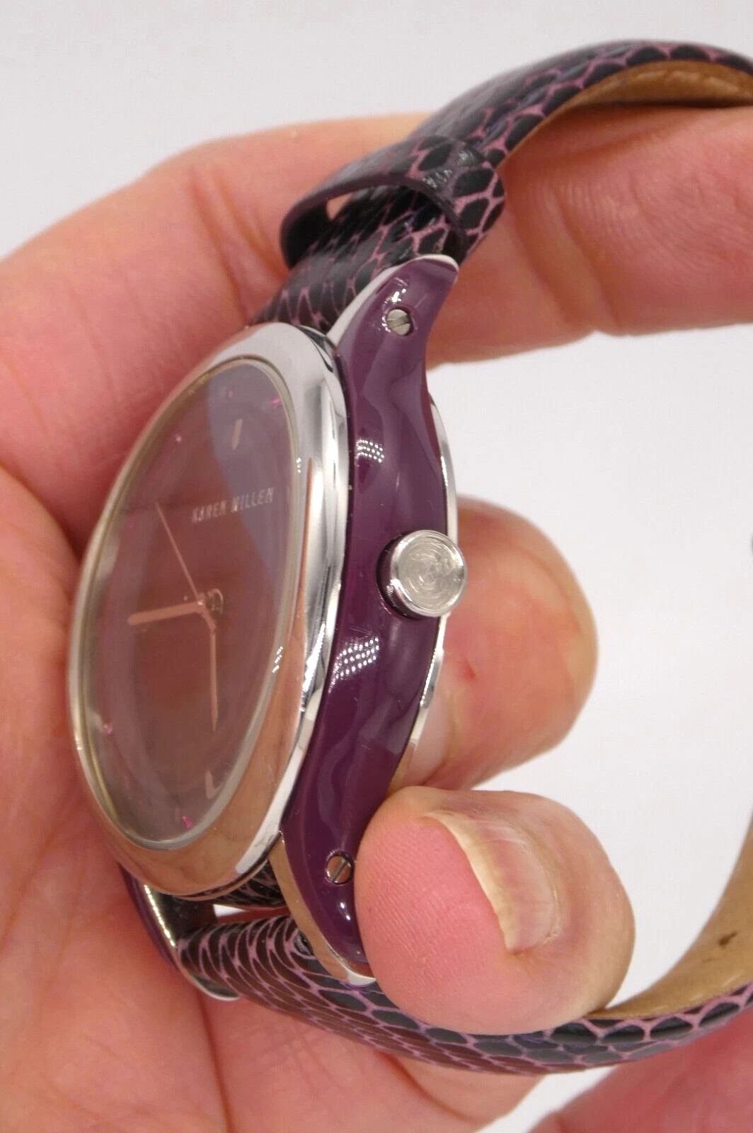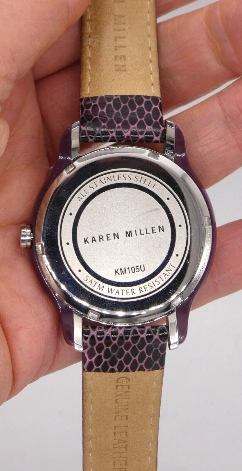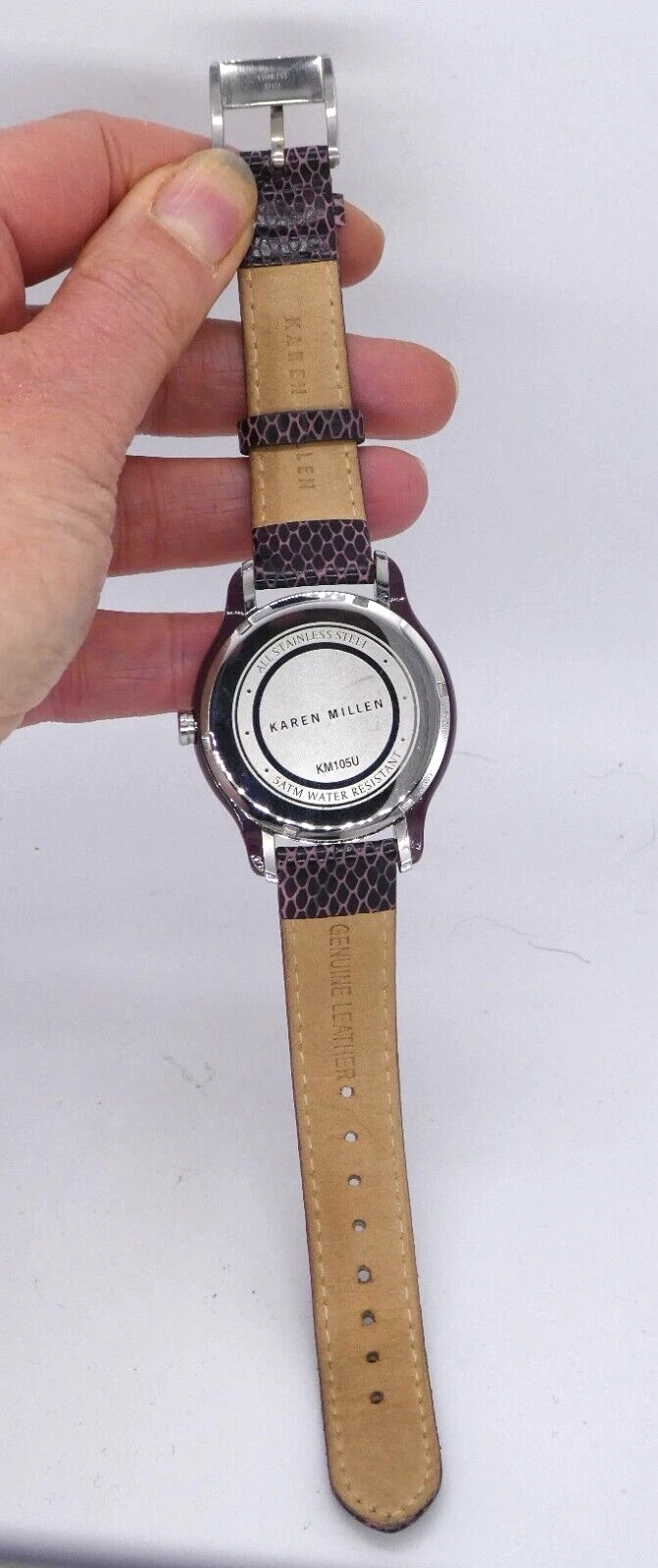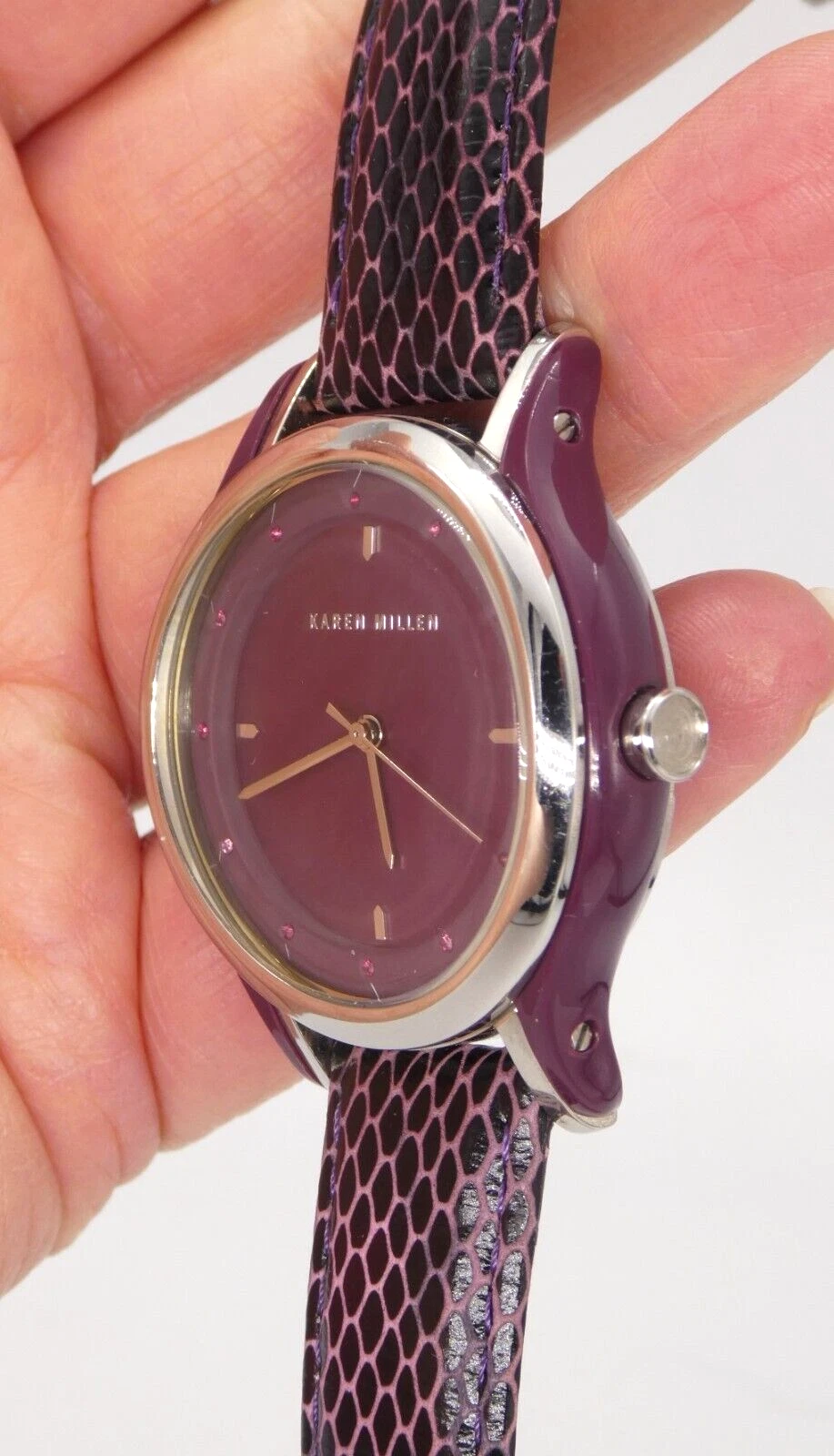 Karen Millen KM105U Ladies Quartz Watch Purple Dial Leather Strap Ex Display