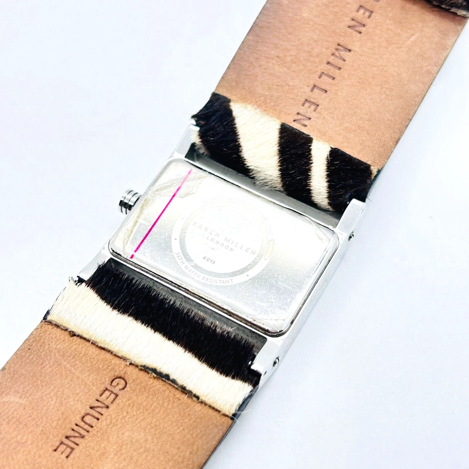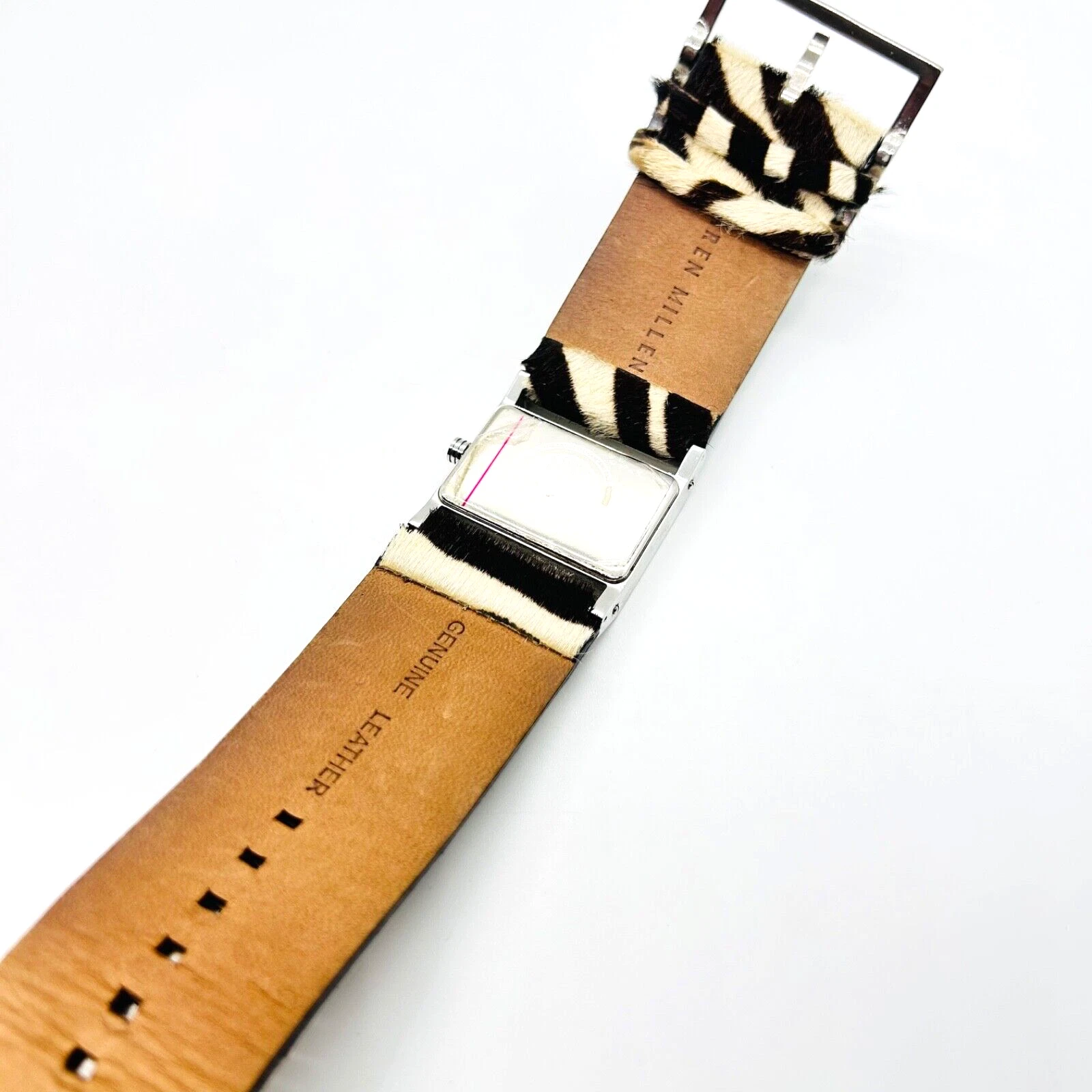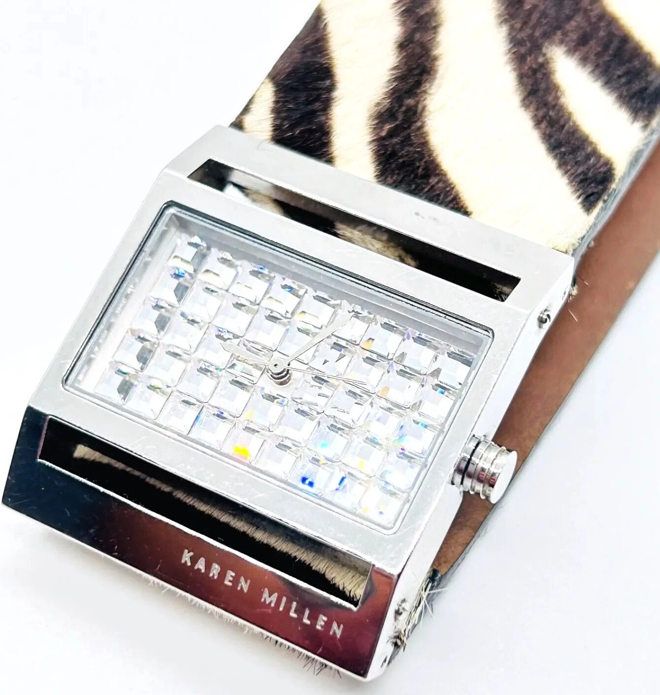 (B66) Fine Karen Millen Silver Tone Zebra Print Diamante Quartz Wristwatch