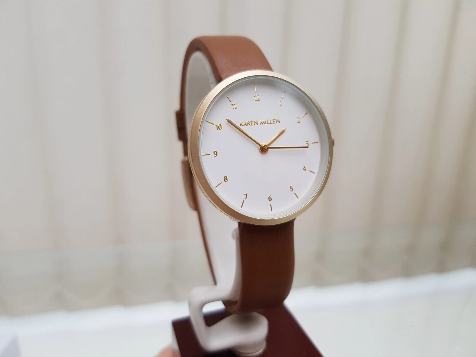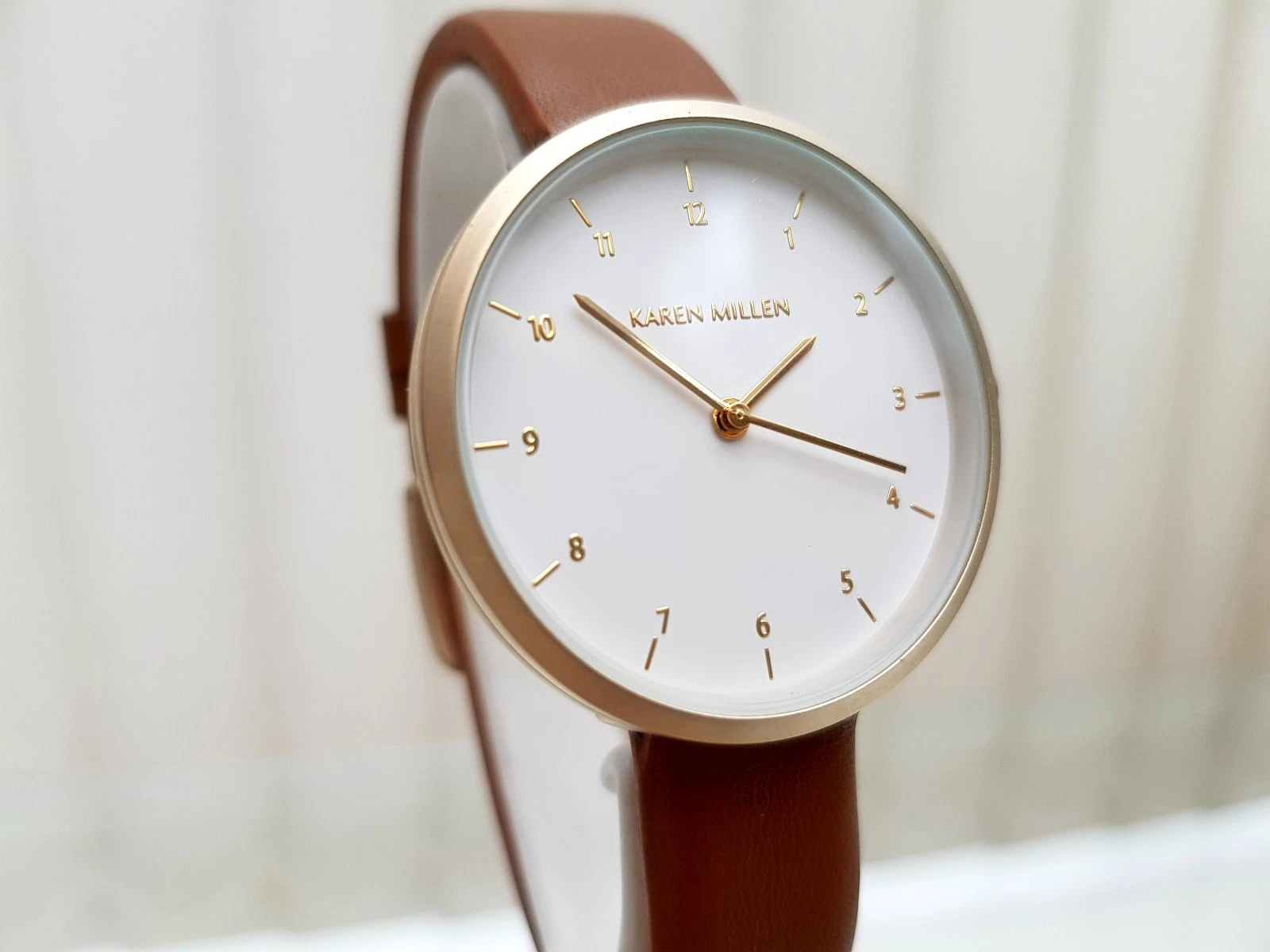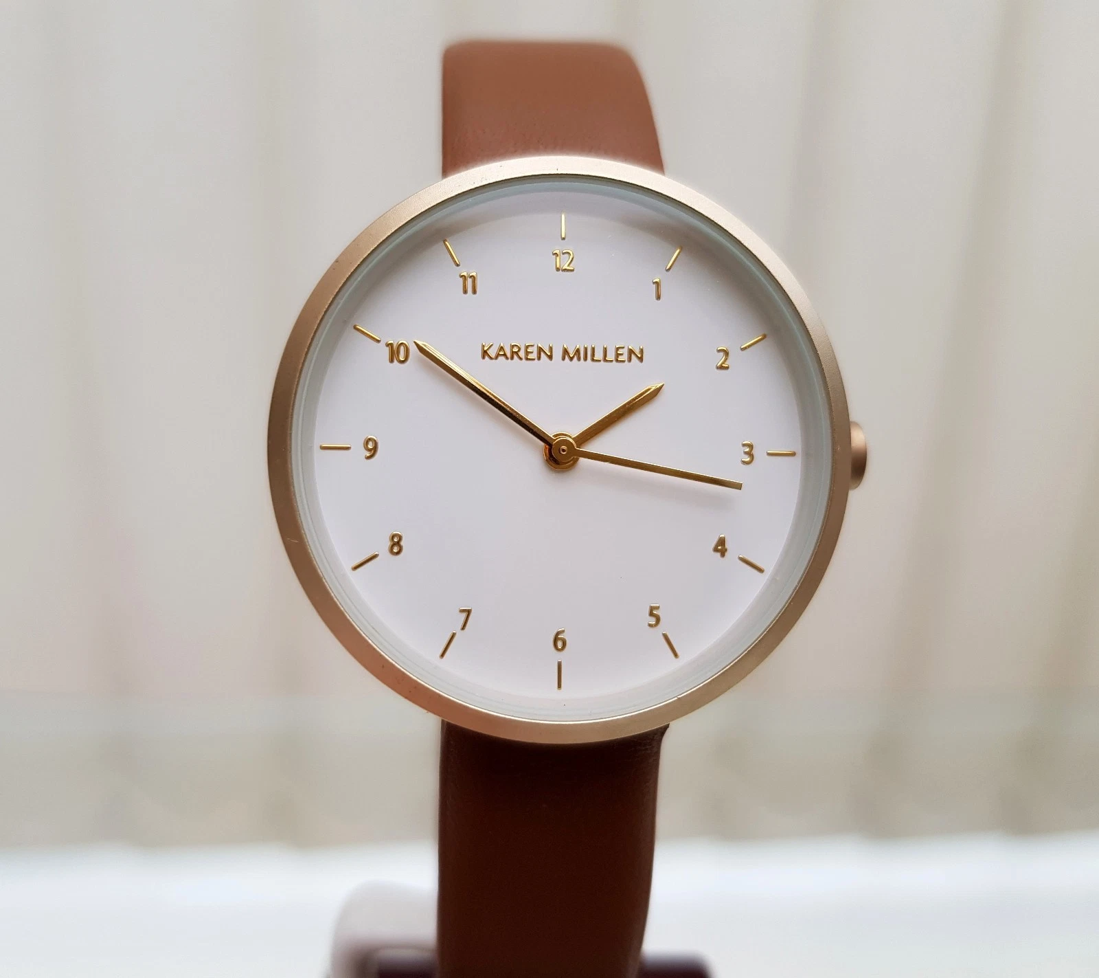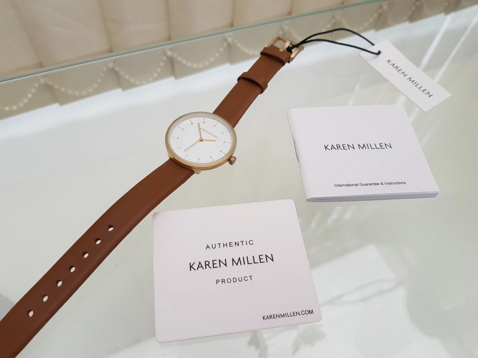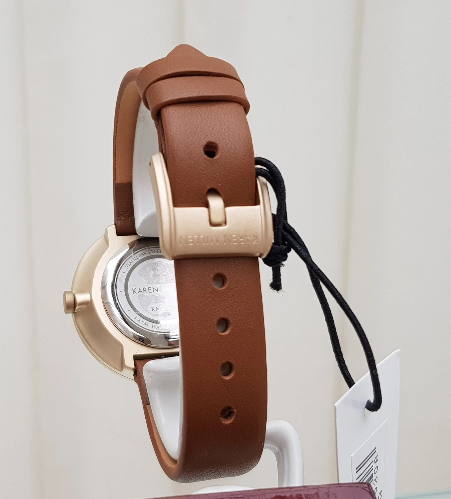 New KAREN MILLEN Ladies Watch Tan Genuine Leather strap IDEAL GIFT!! RRP £120 !