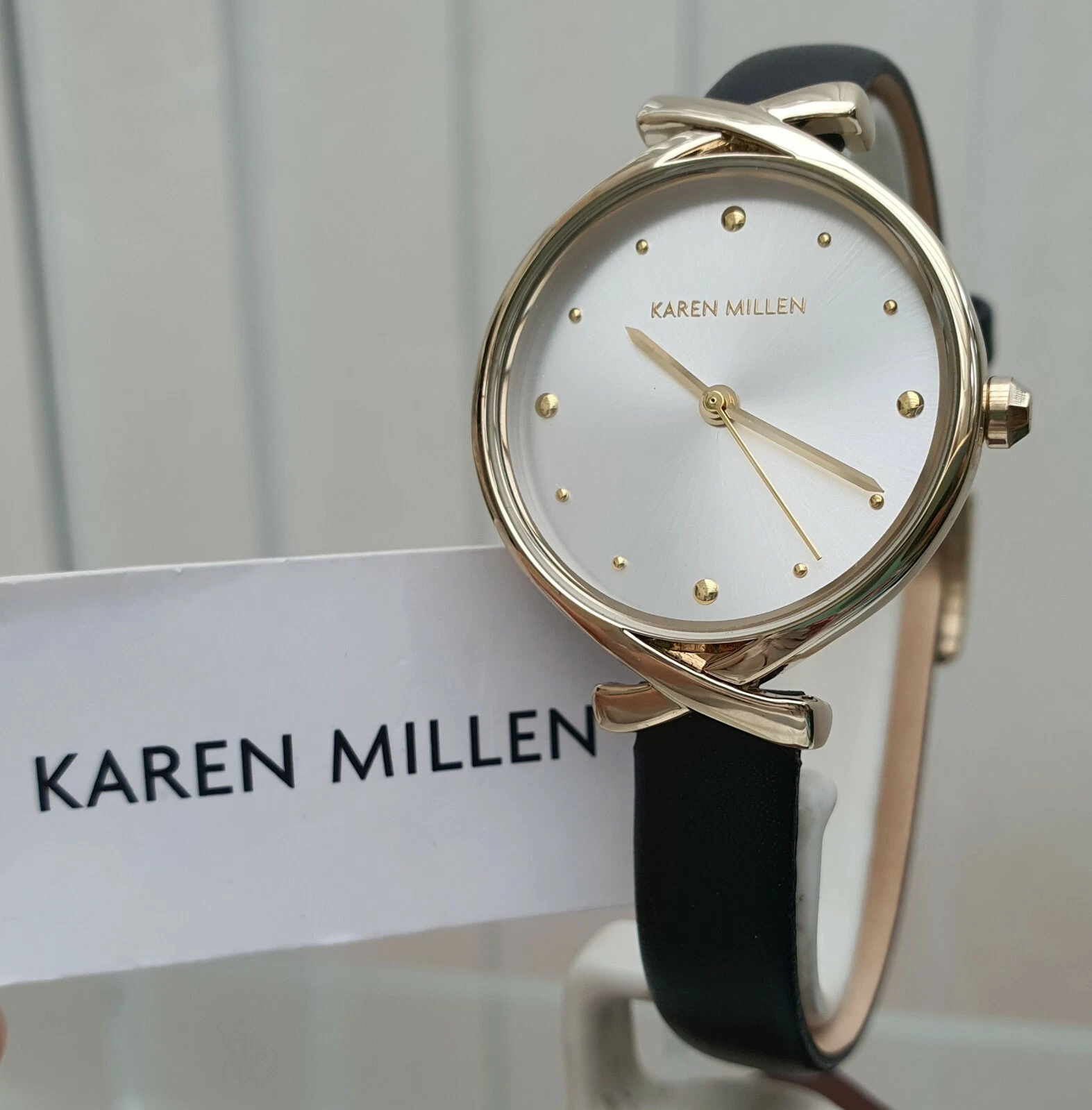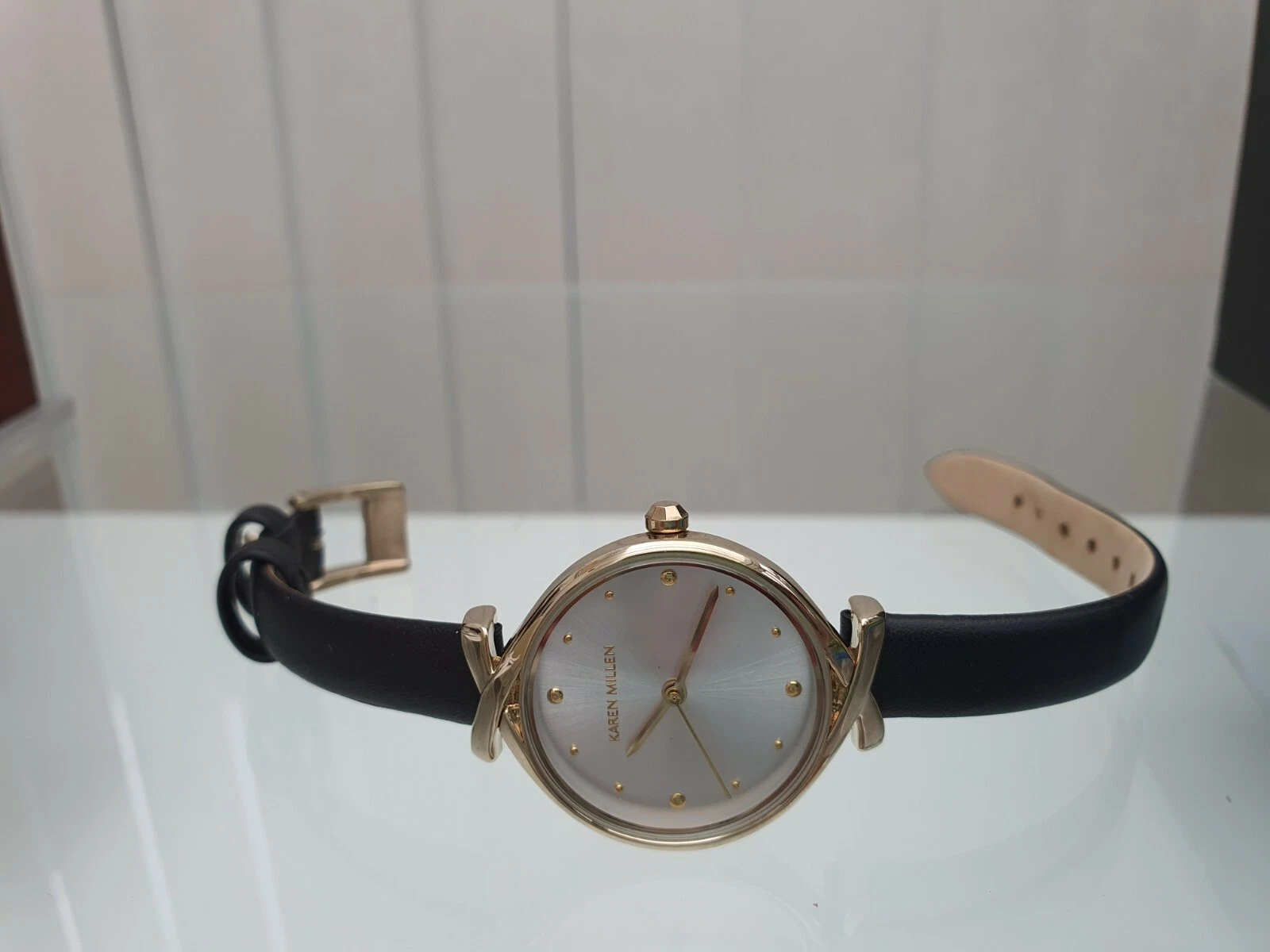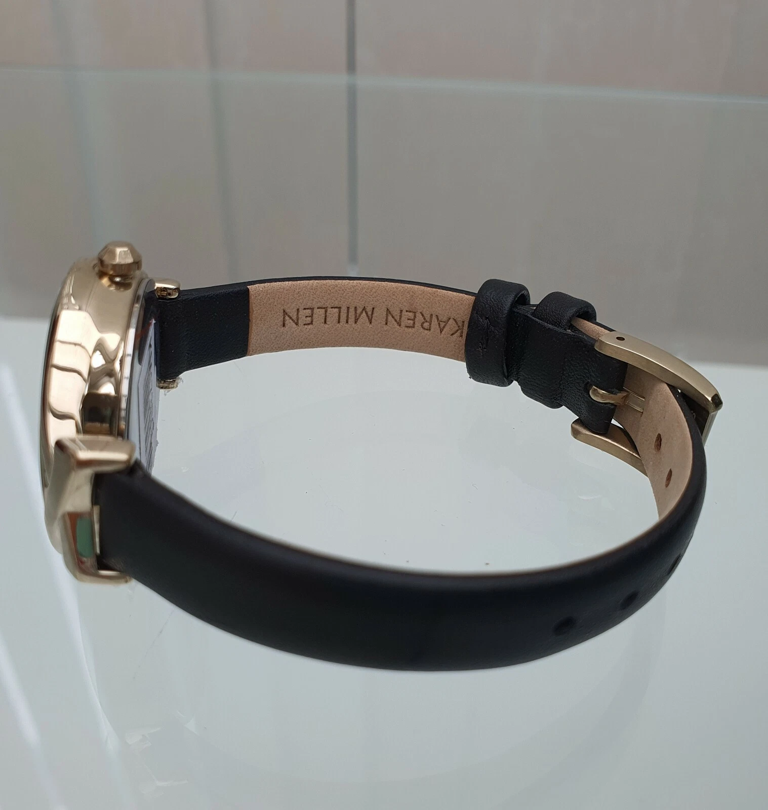New KAREN MILLEN Ladies Watch Gold & Black leather sr, Lightweight RRP £189(KM54