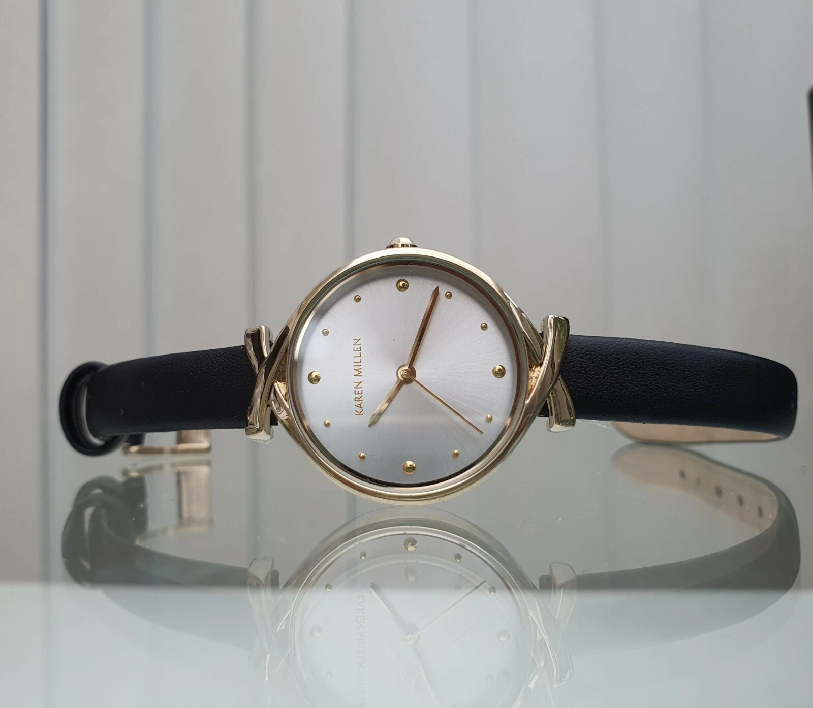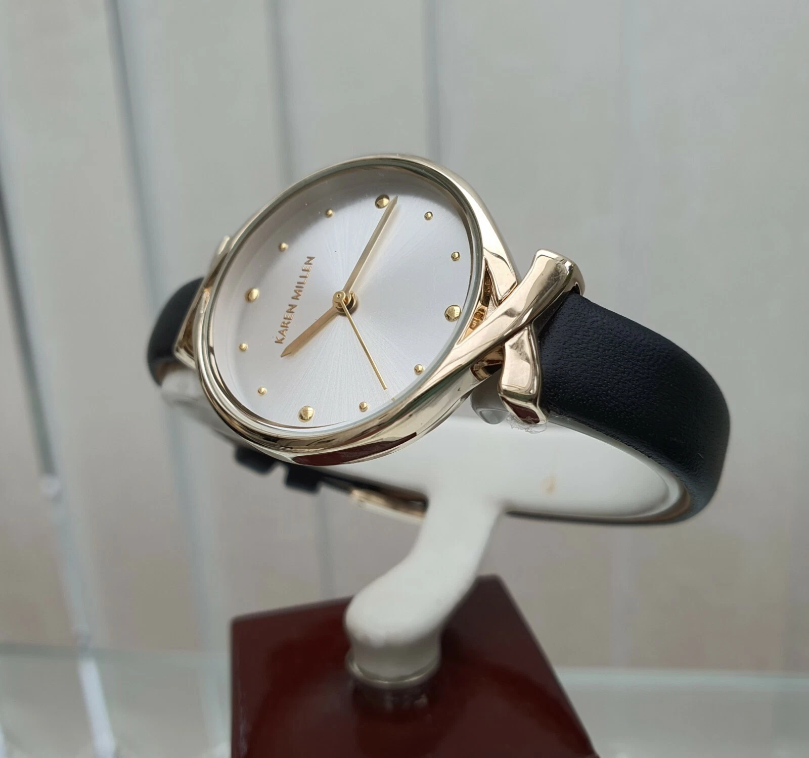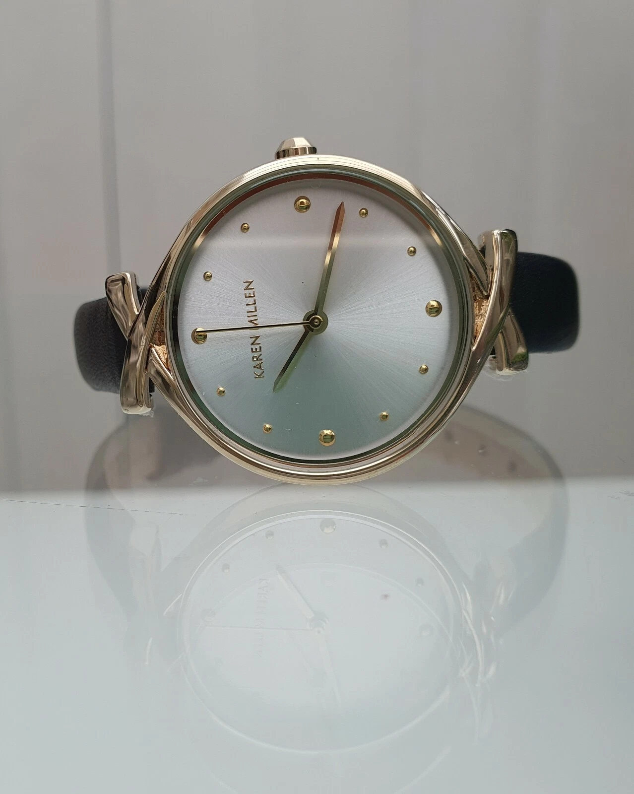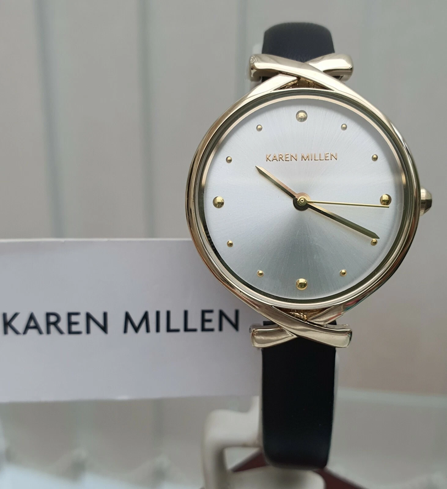 New KAREN MILLEN Ladies Watch Gold & Black leather sr, Lightweight RRP £189(KM54
