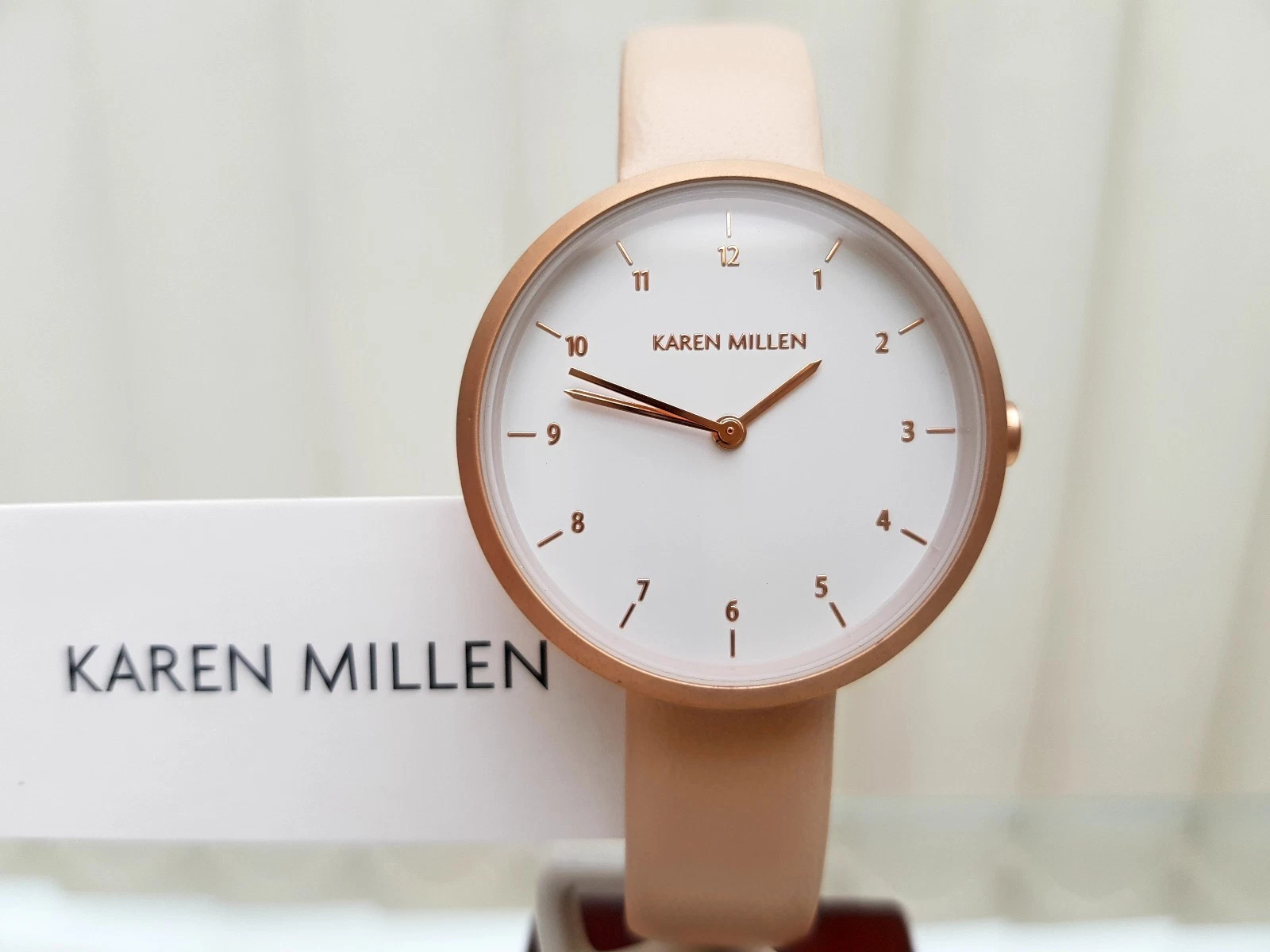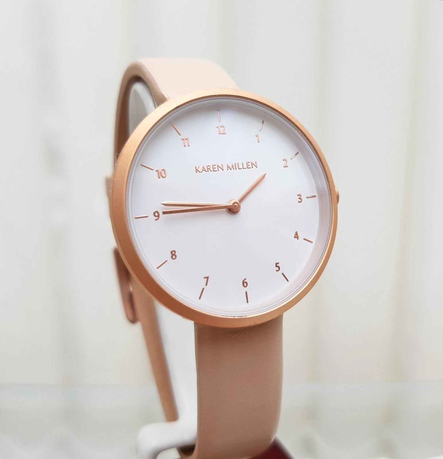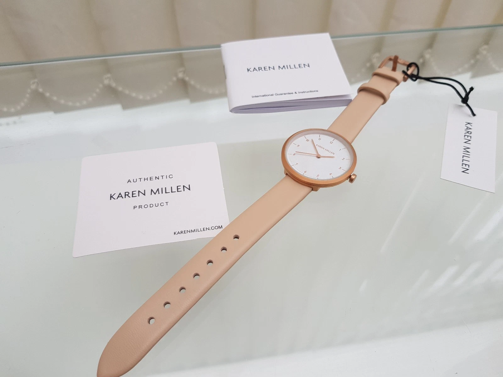 New KAREN MILLEN Watch Nude leather strap Matte case IDEAL GIFT!! RRP £120 ! (k1