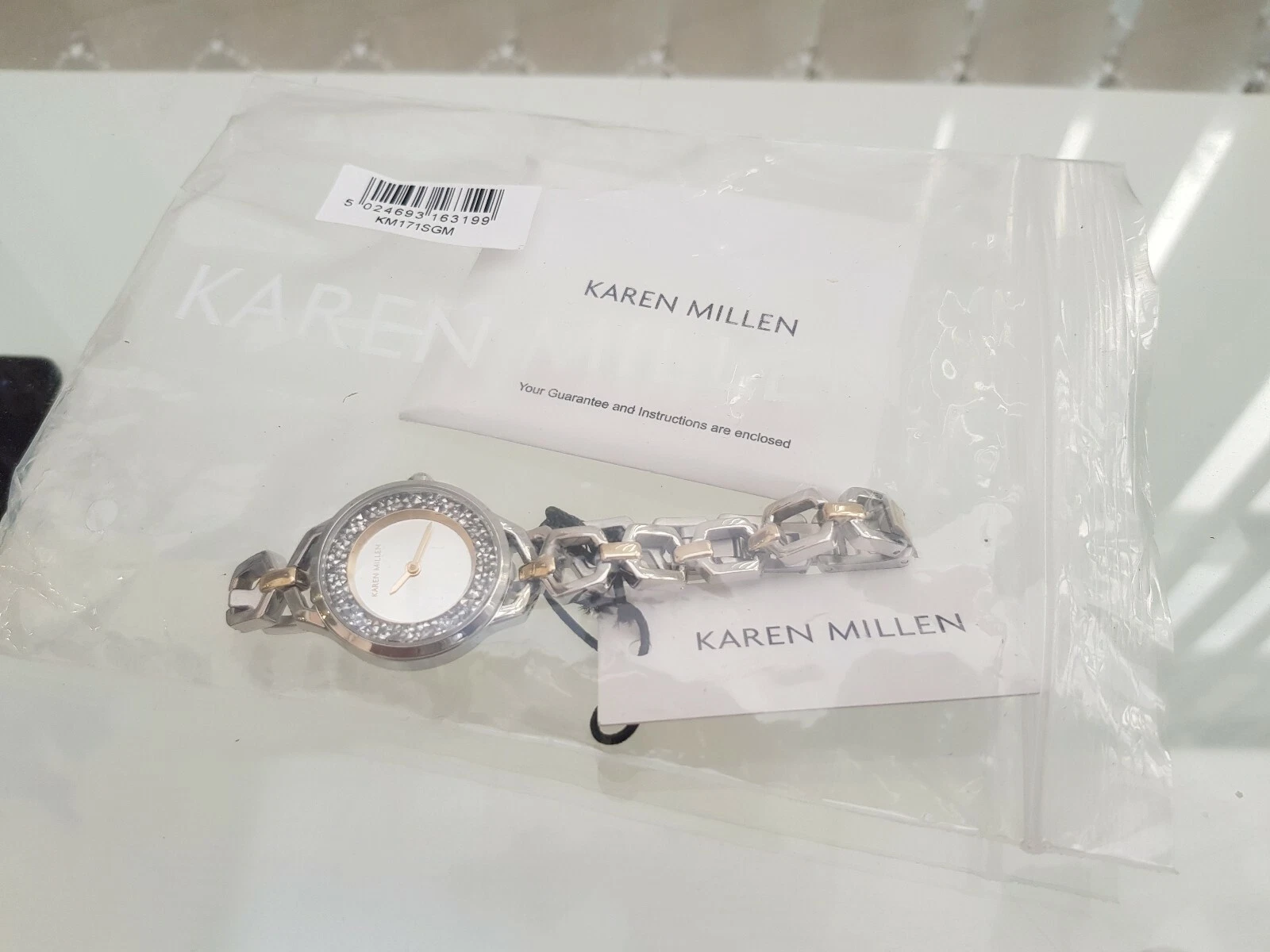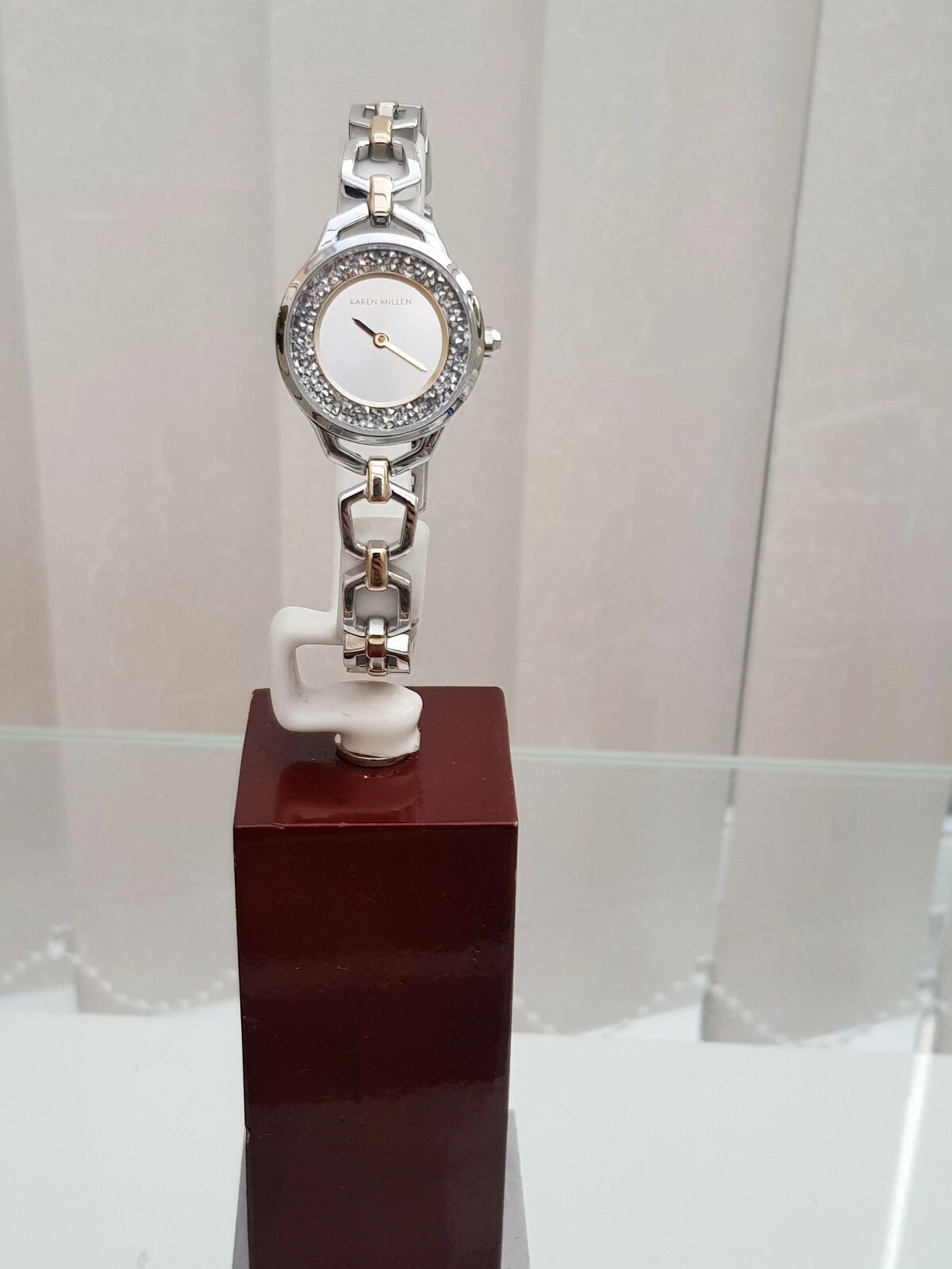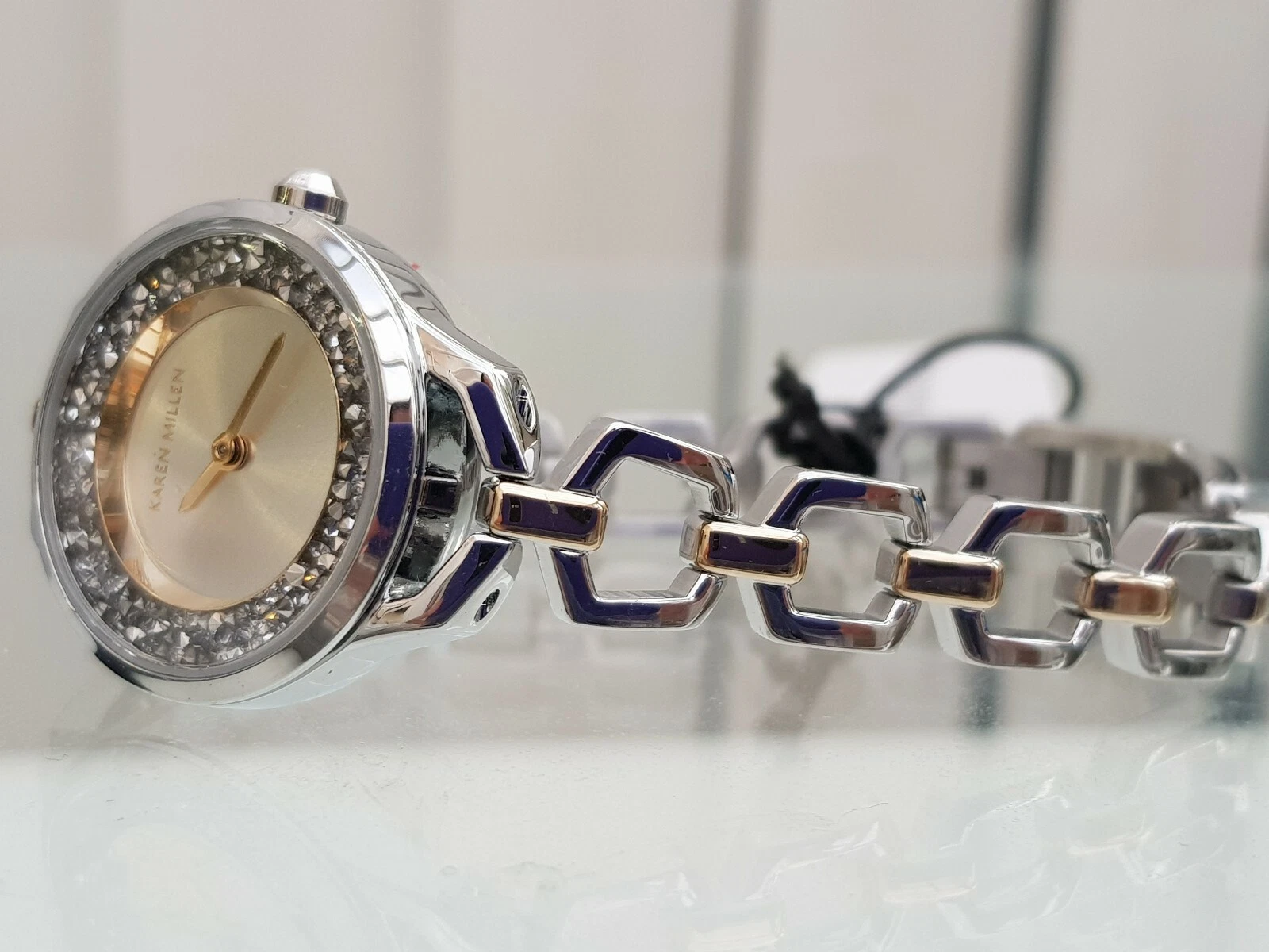New KAREN MILLEN Silver Bracelet Ladies Watch Silver Shimmer dial RRP £189(KM53