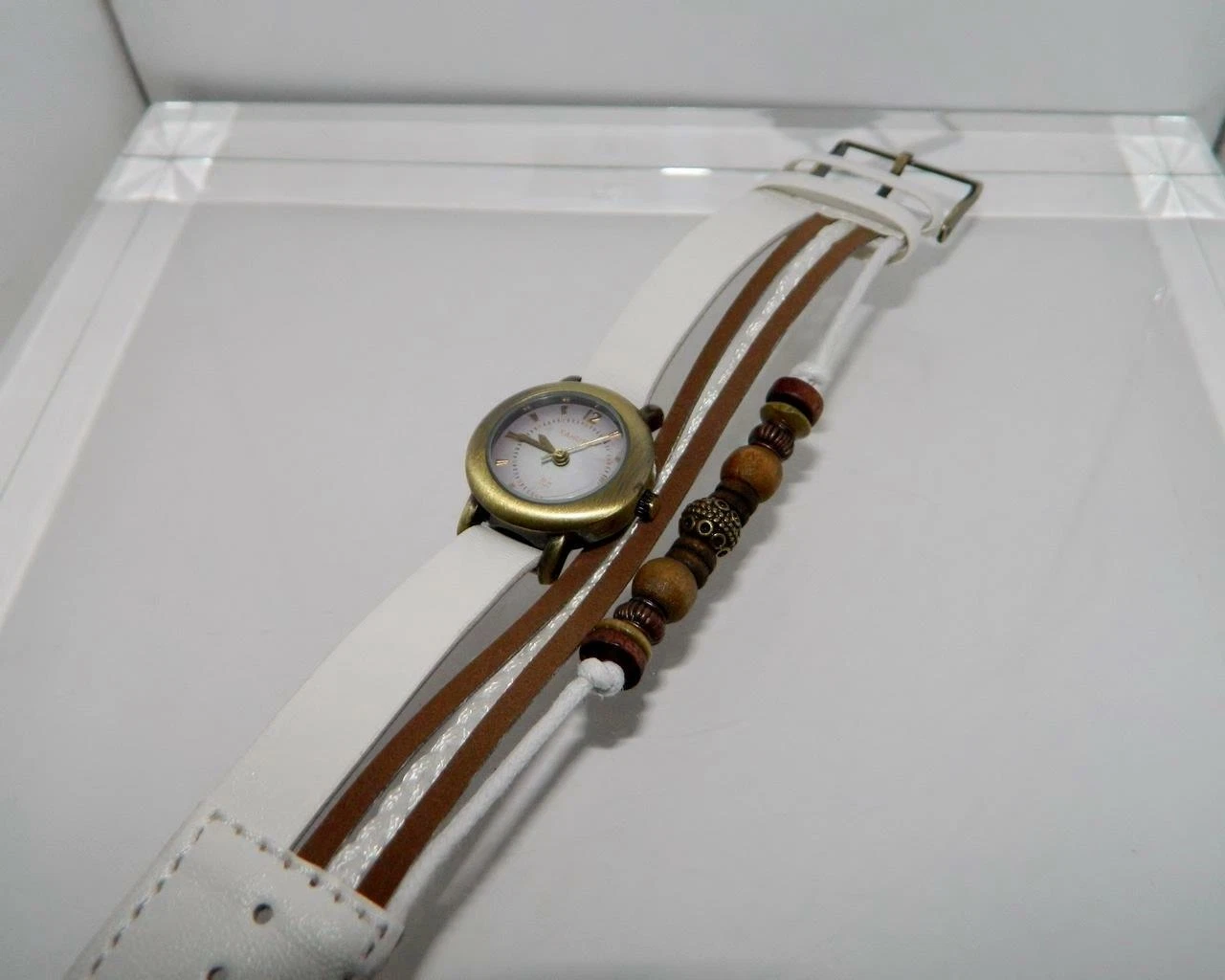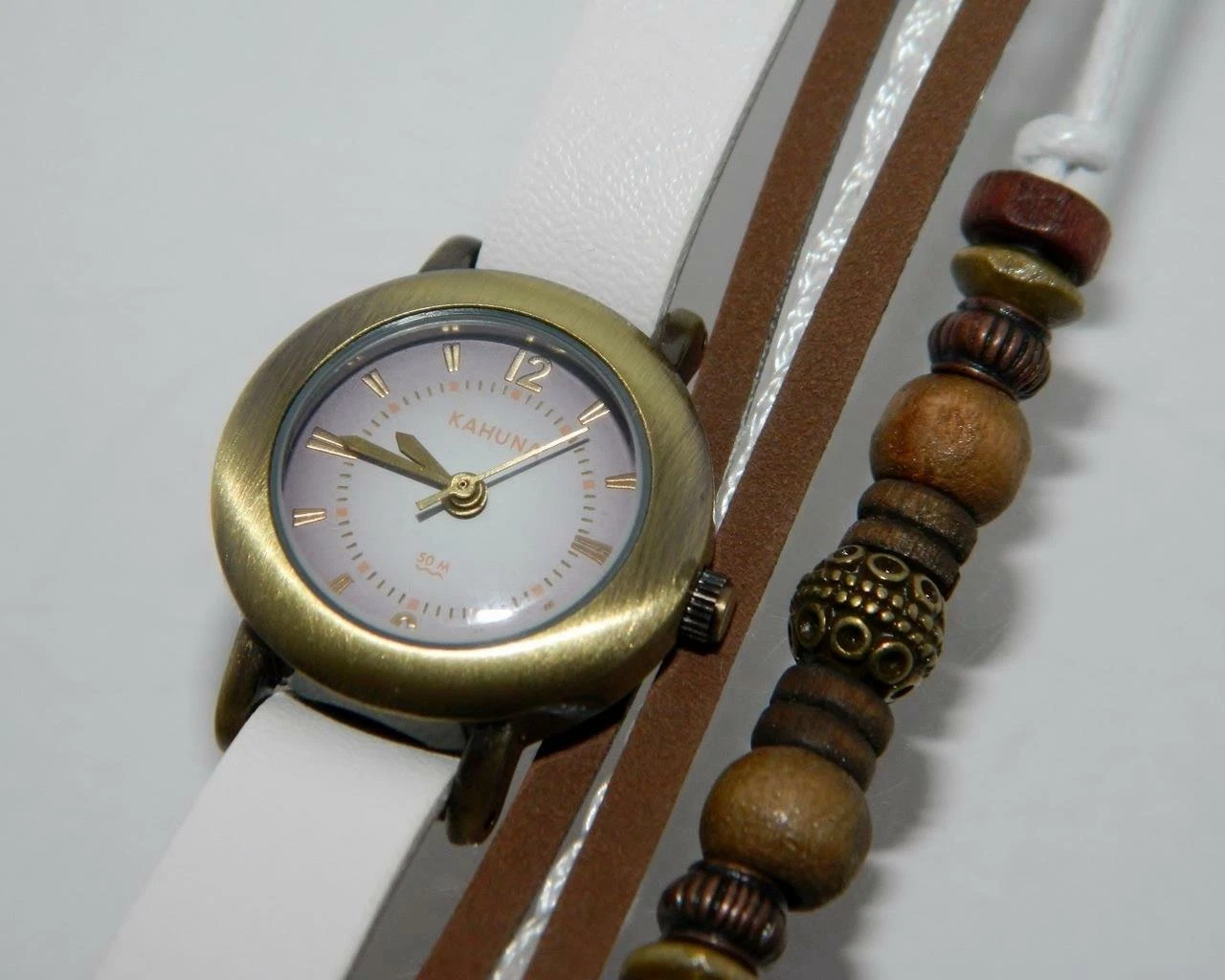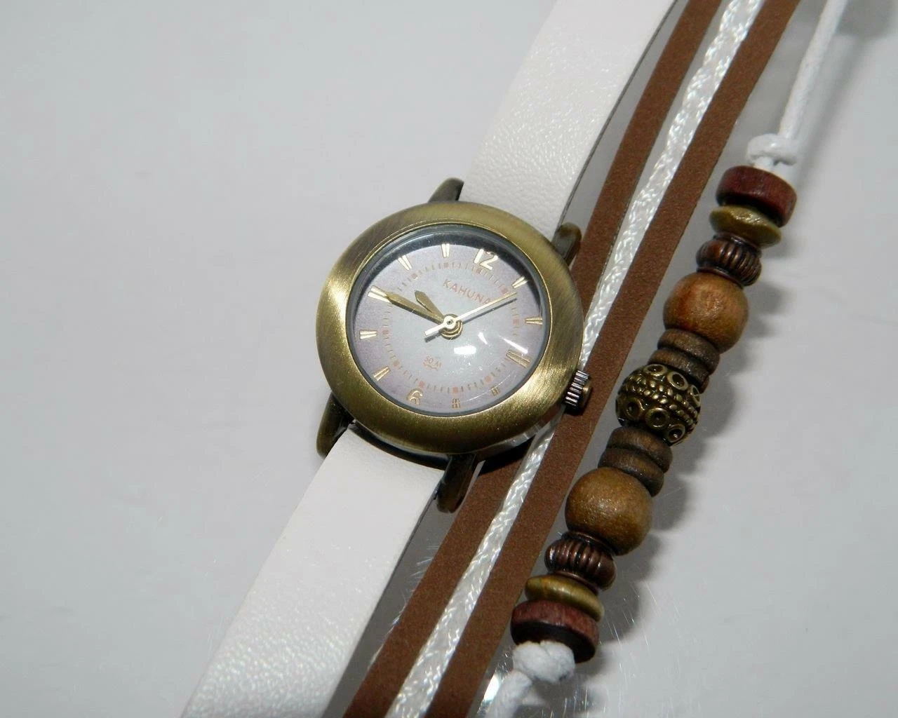 KAHUNA Women's Bronze finish Lilac Dial 50 Meter White /Brown/Beaded Strap Watch