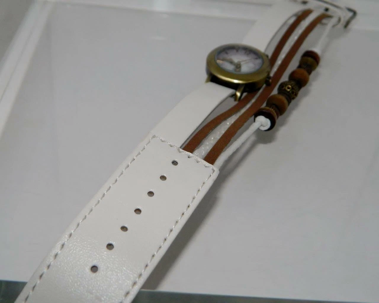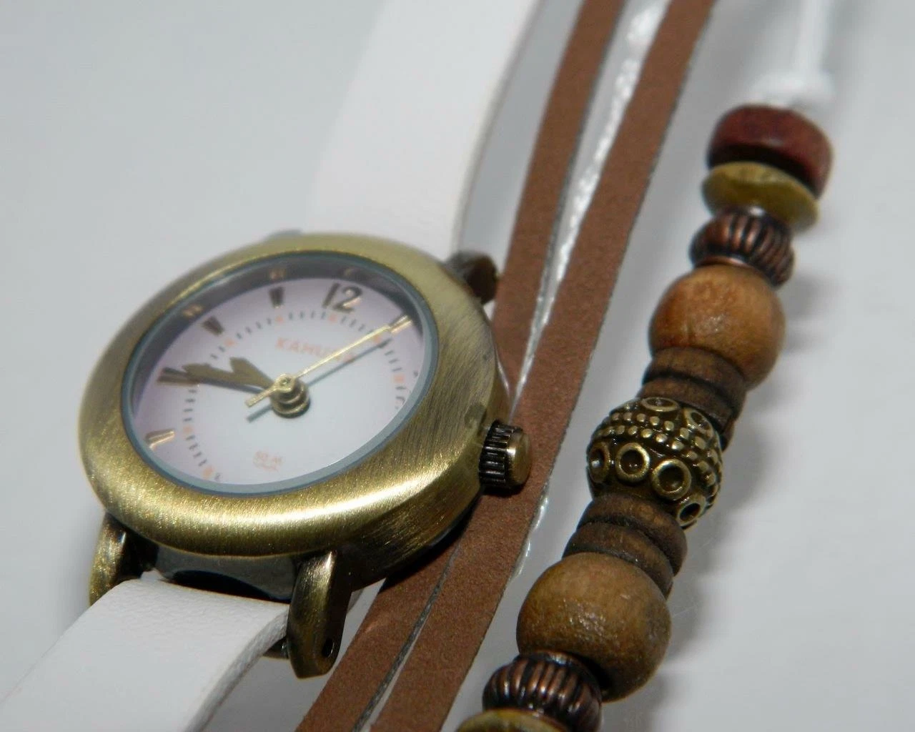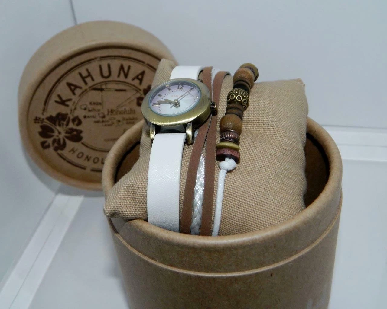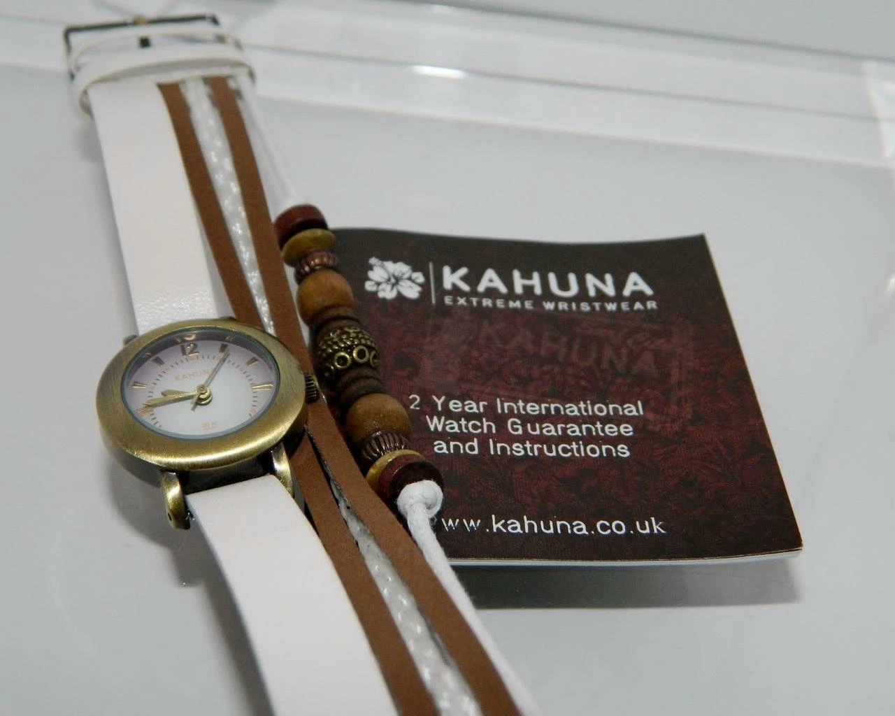 KAHUNA Women's Bronze finish Lilac Dial 50 Meter White /Brown/Beaded Strap Watch