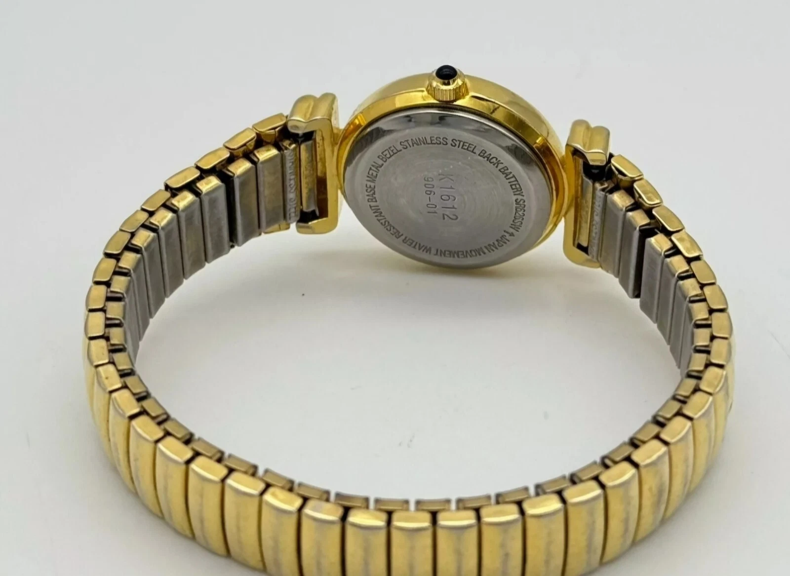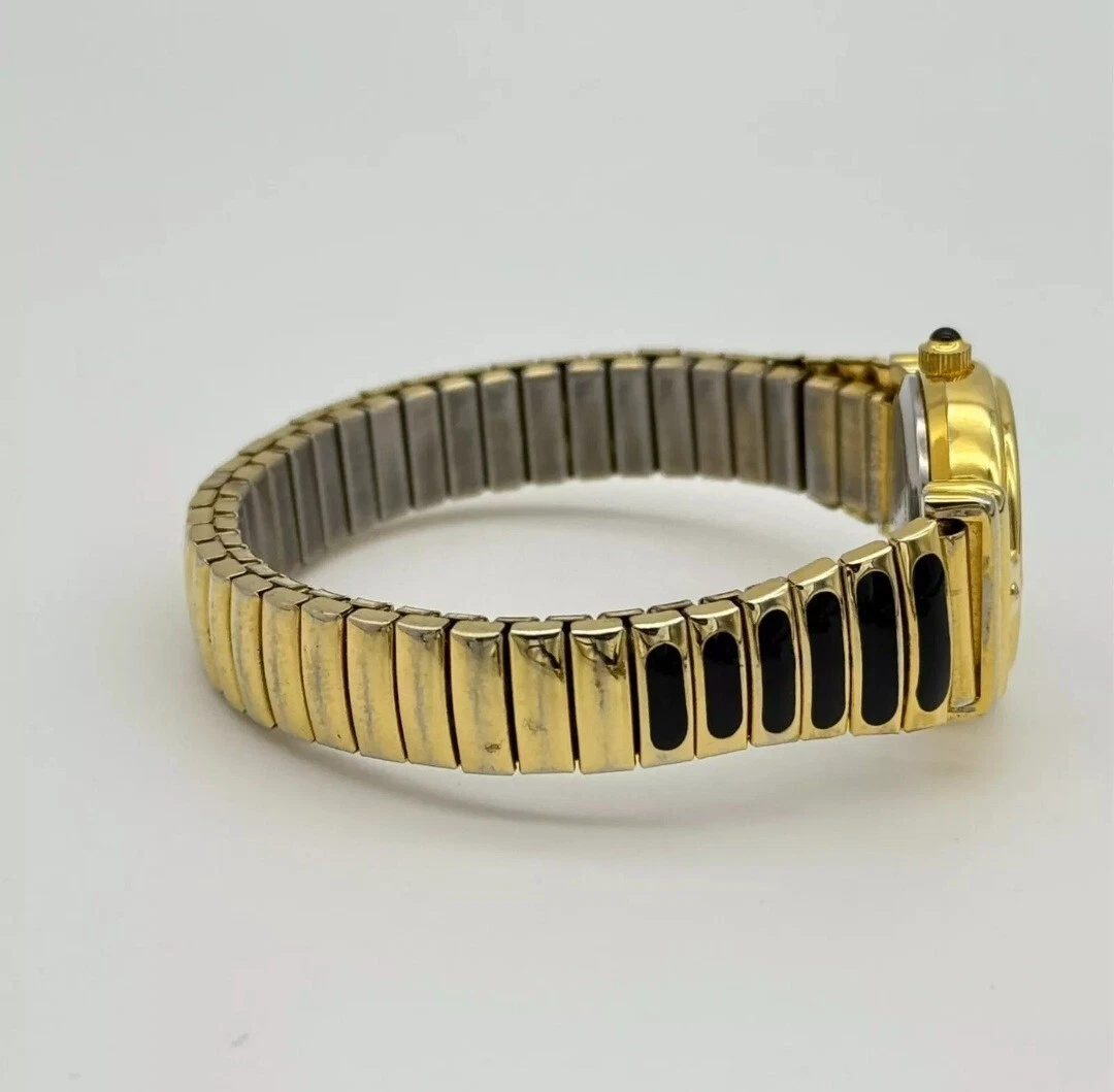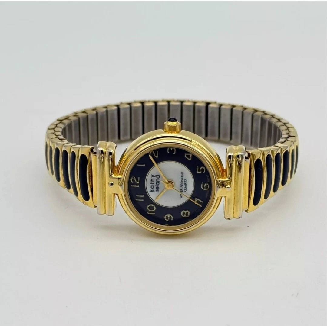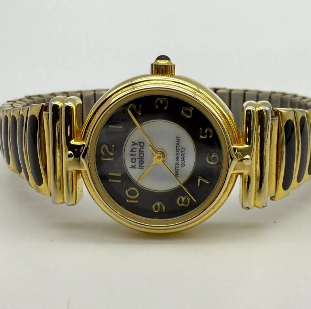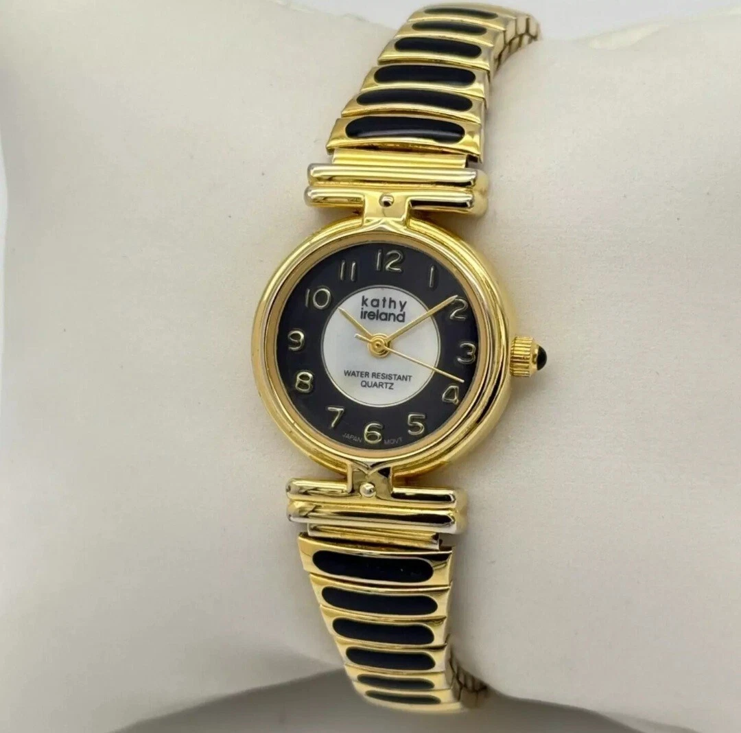 Ladies 1990s KATHY IRELAND Gold & Black Tone Classic Bracelet Watch, 23mm K1612