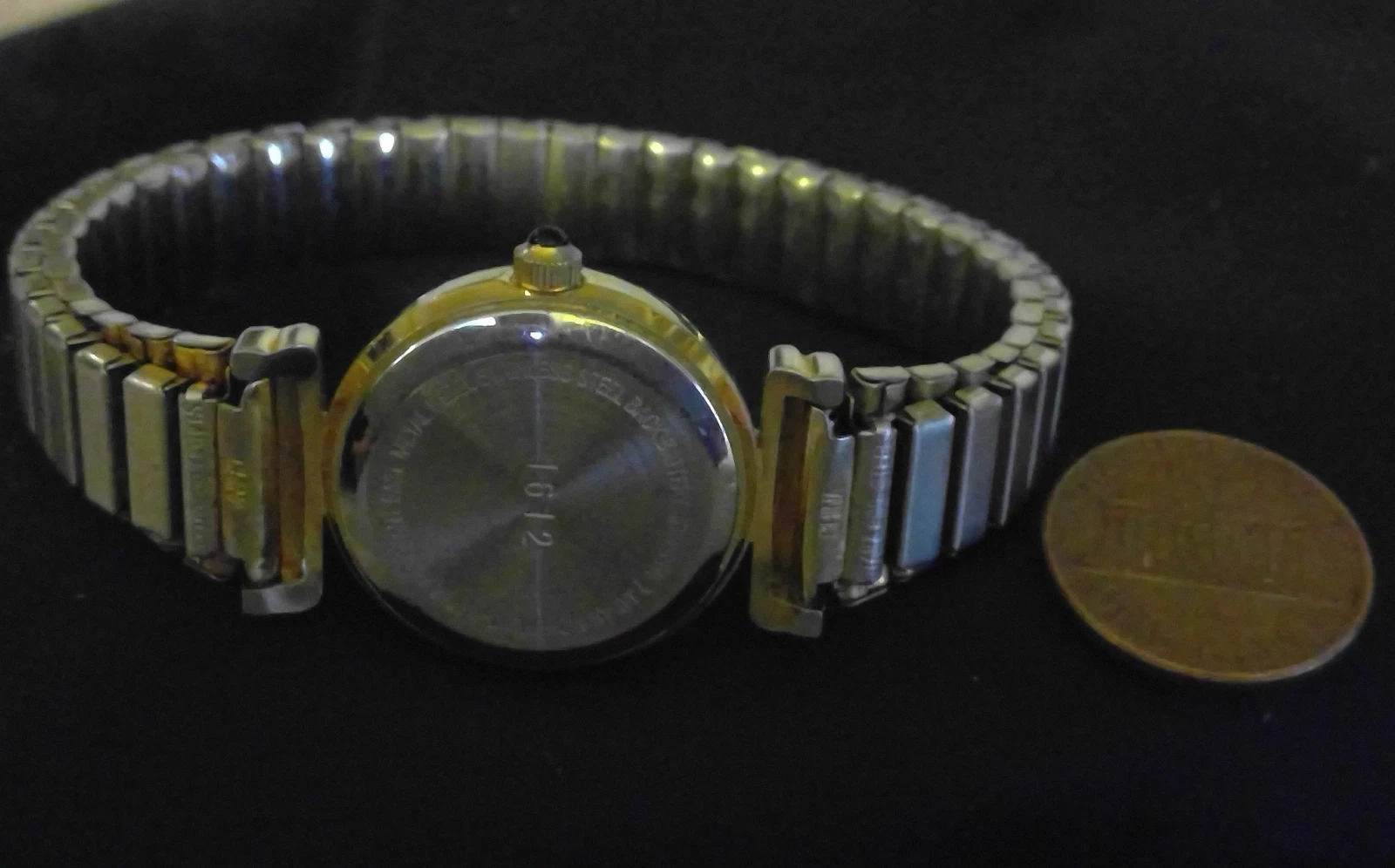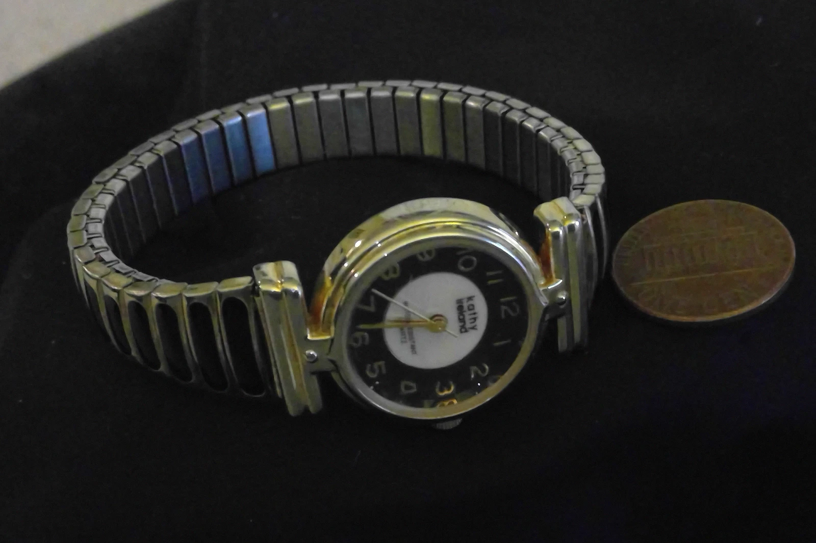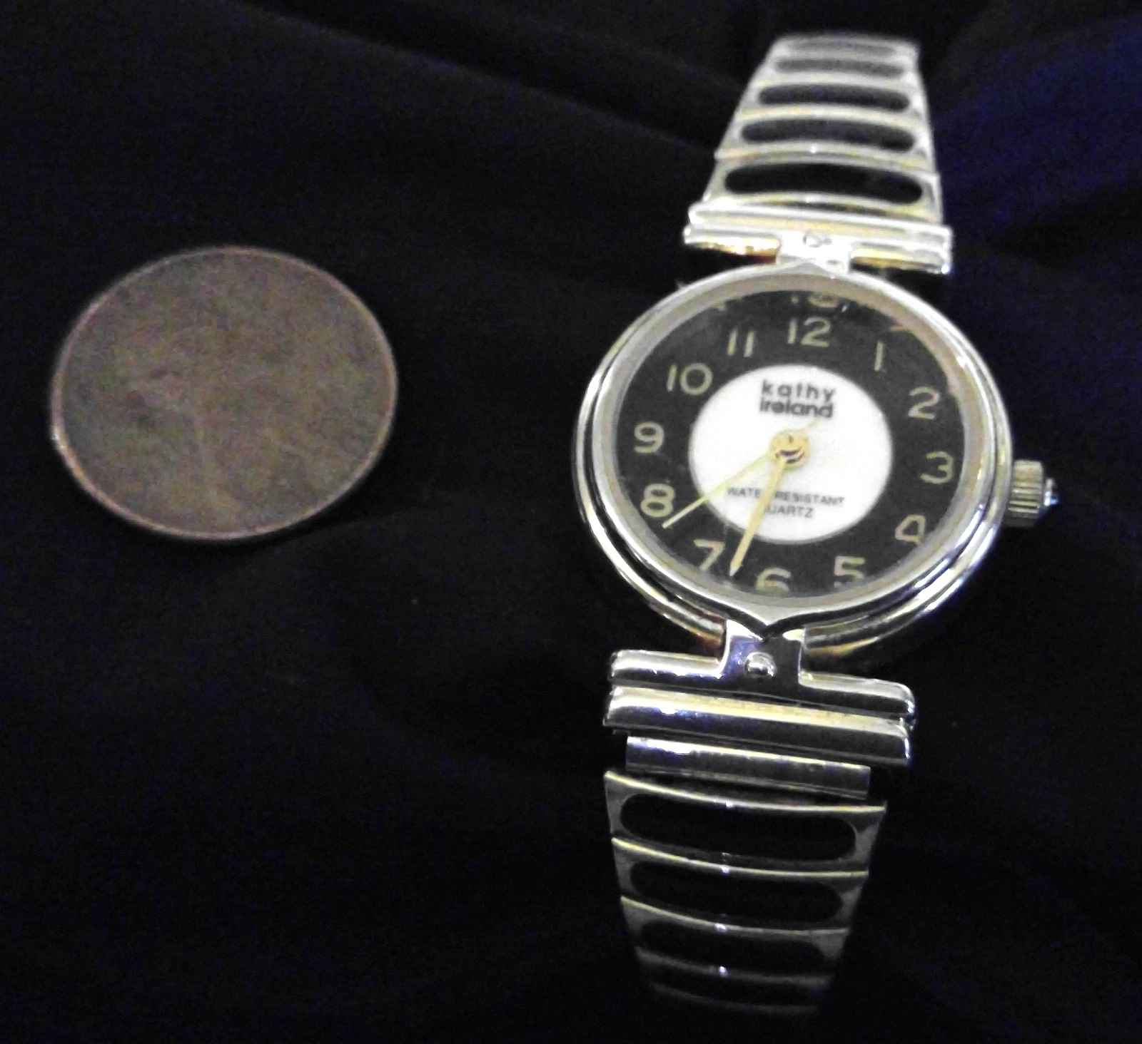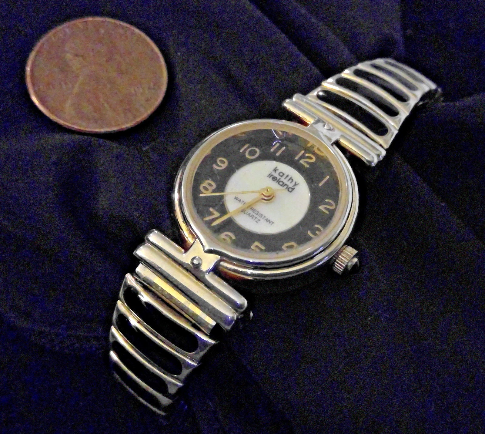 Kathy Ireland Watch Black MOP Face Gold & Silver Tone Stretch Band New Battery