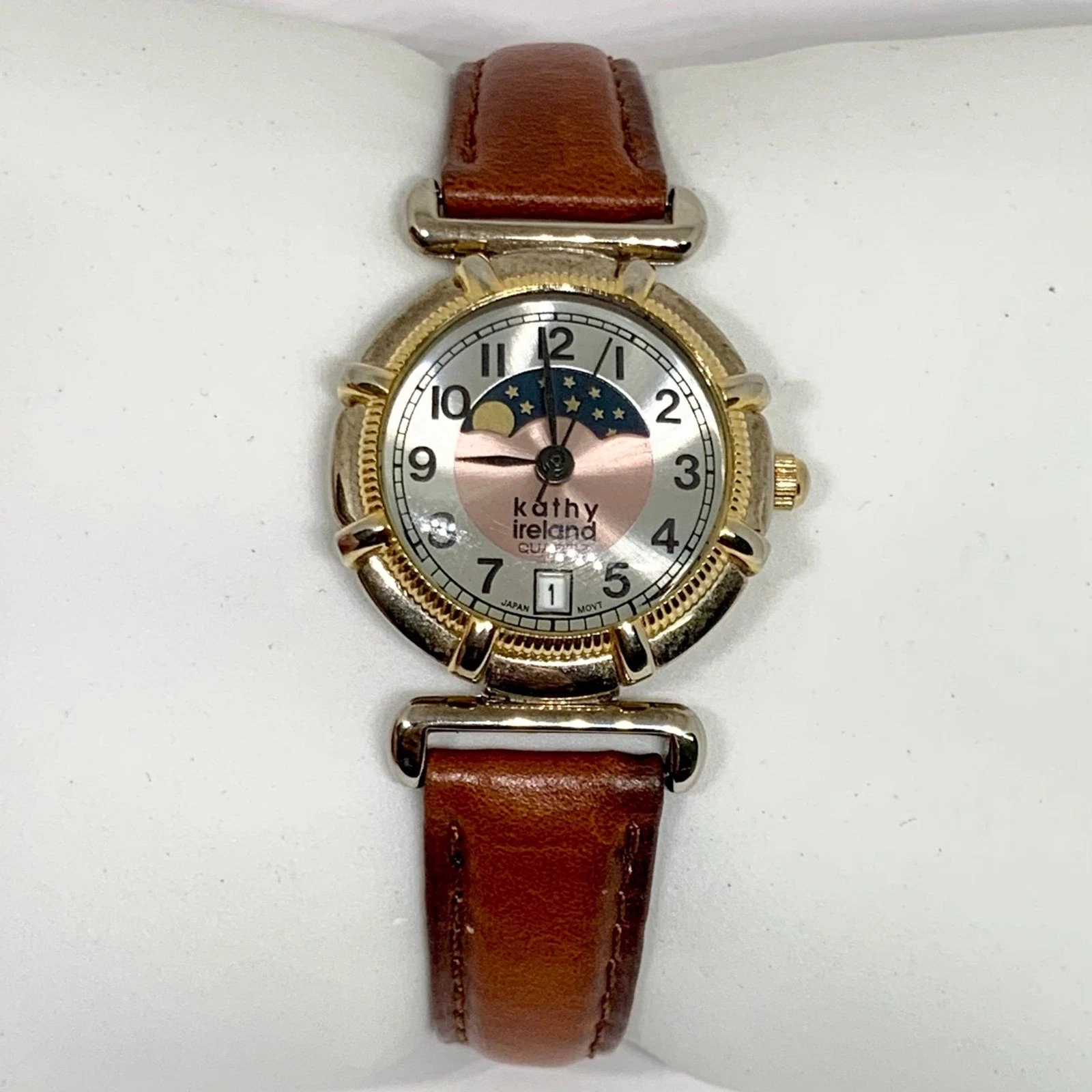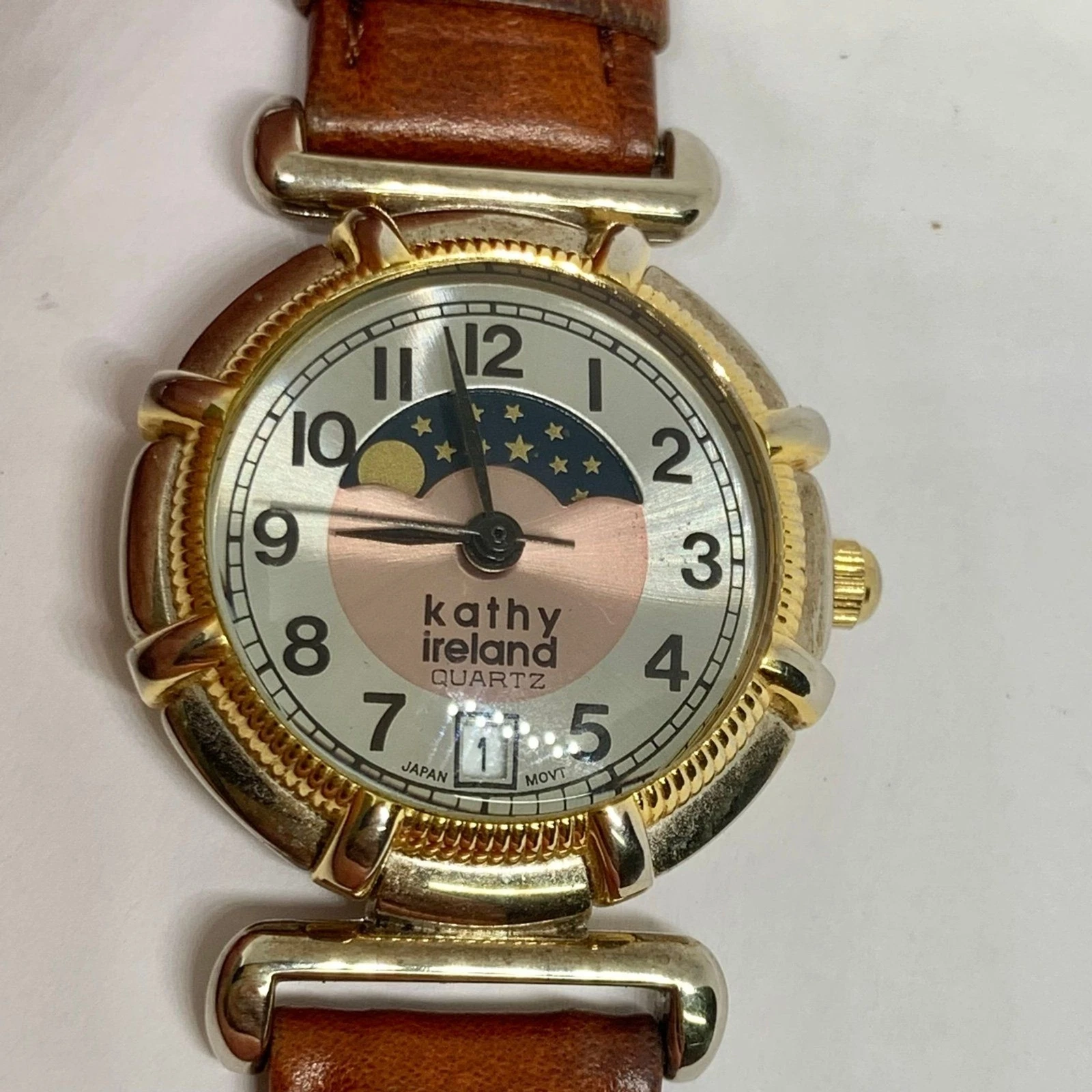 Ladies KATHY IRELAND vintage date watch silver gold Tone Moon Phase 27mm running