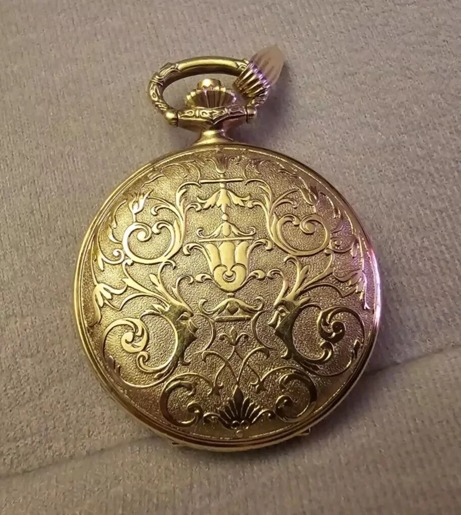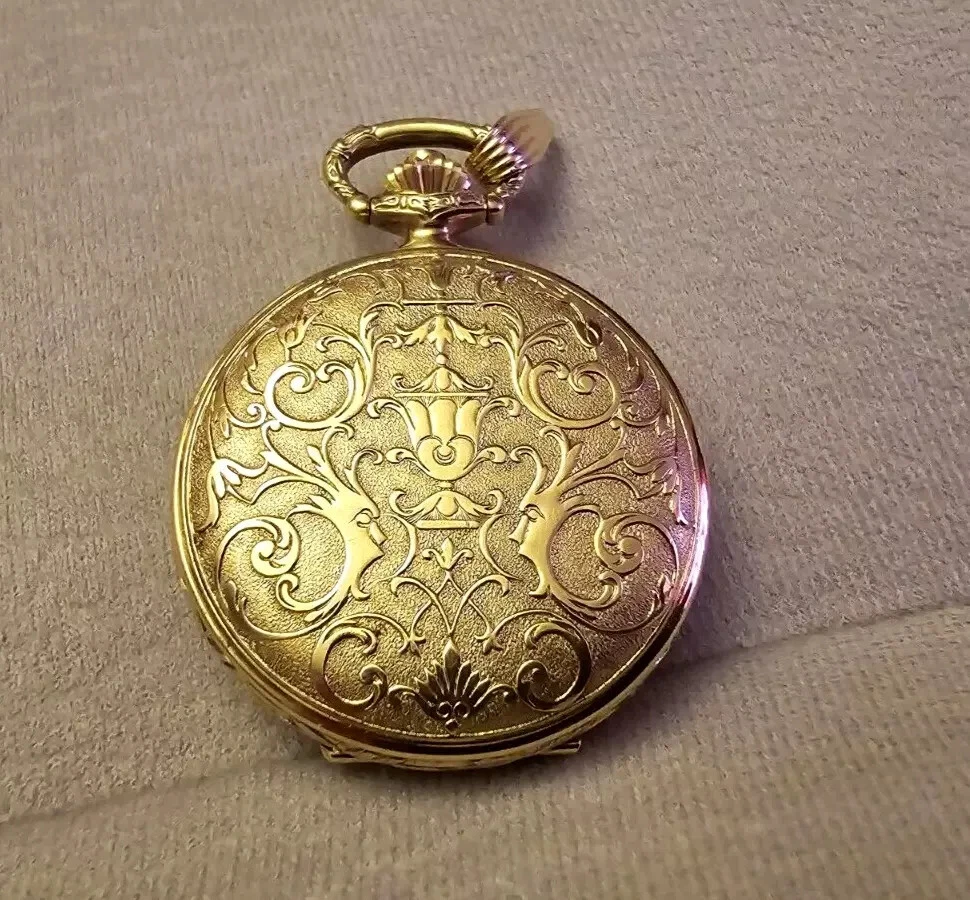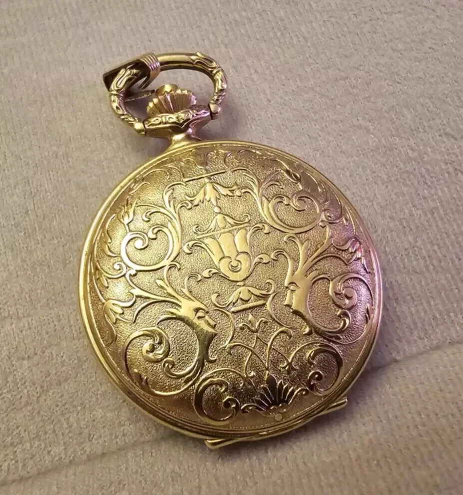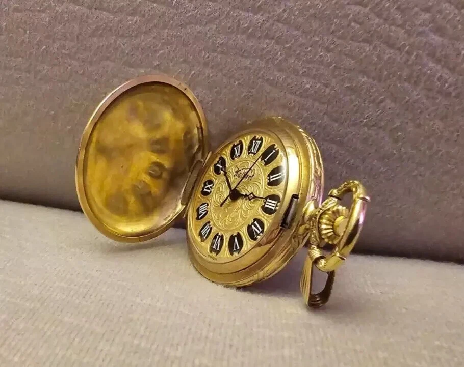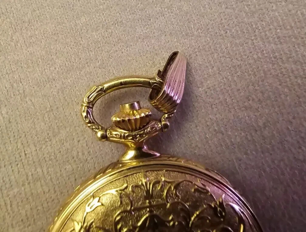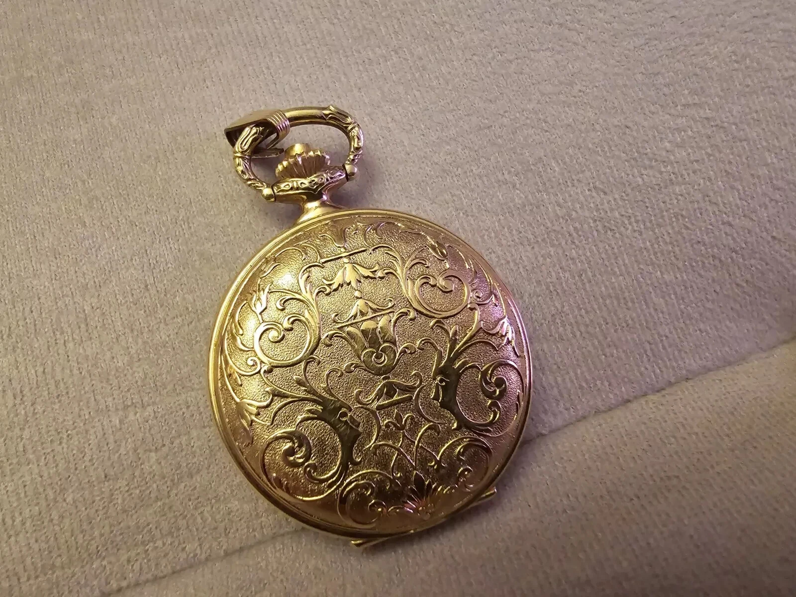 Kelbert Swiss Pocket Watch Gold Tone w/Red Filagree Cover Vintage 17 Jewel RUNS!