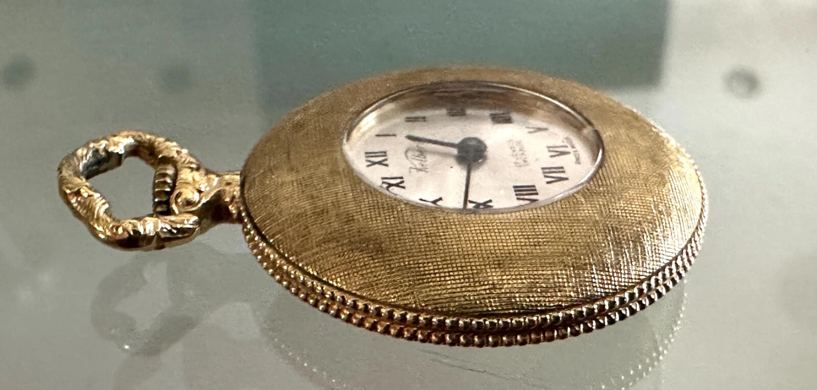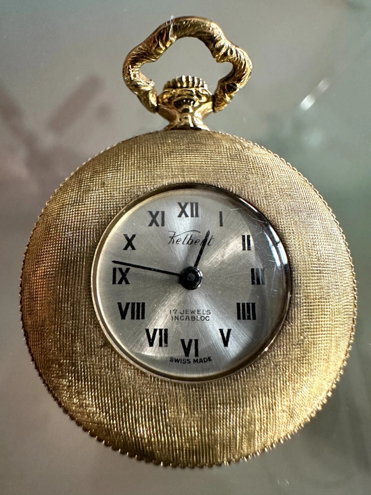 VINTAGE KELBERT 17 JEWEL GOLD VERMEIL OPEN FACE WIND UP POCKET WATCH SMALL 1.25"