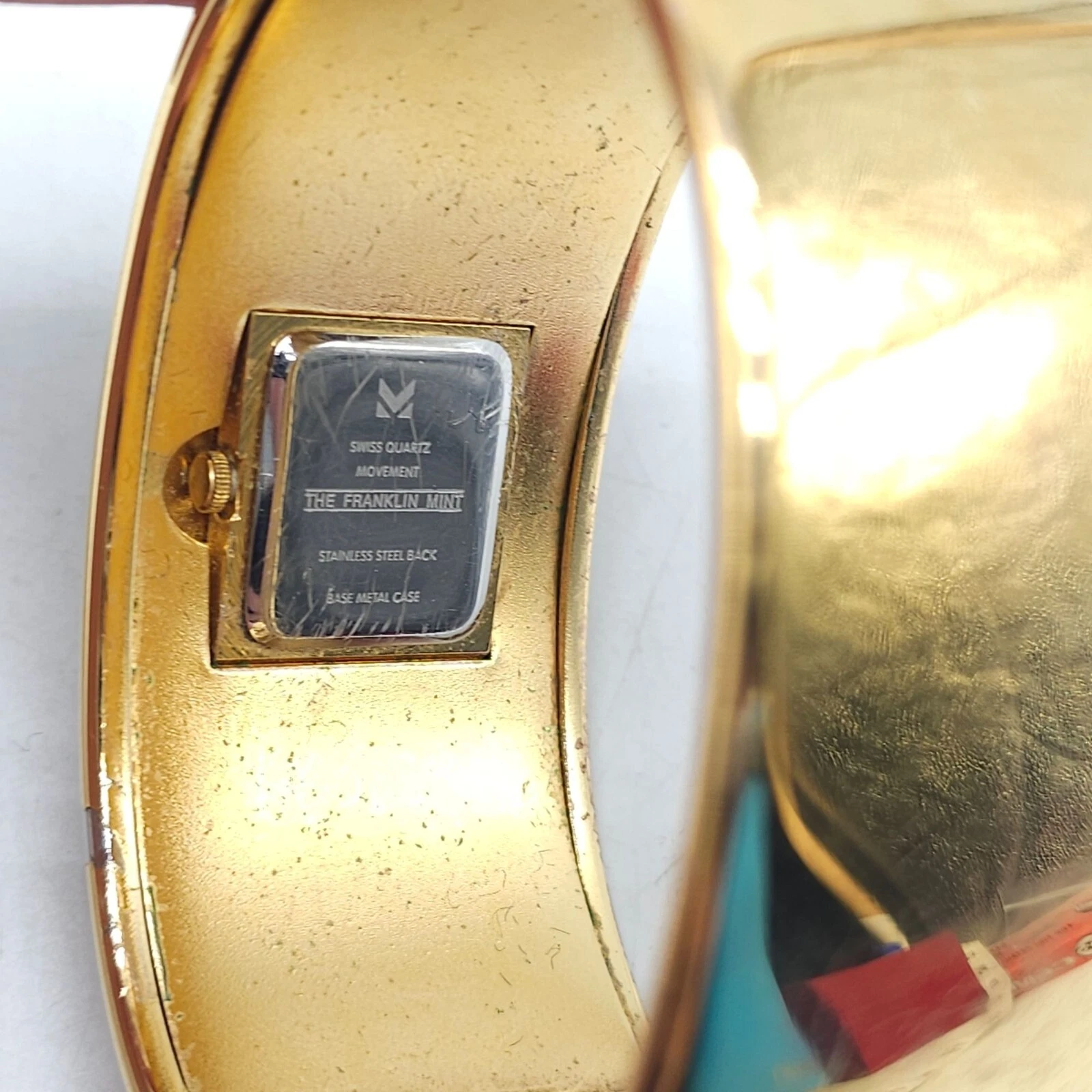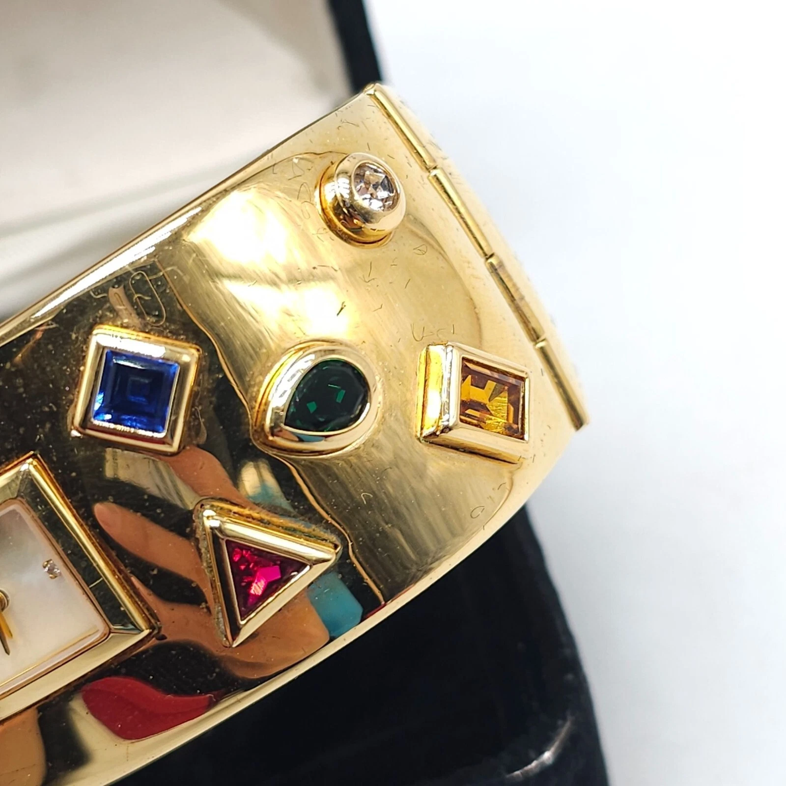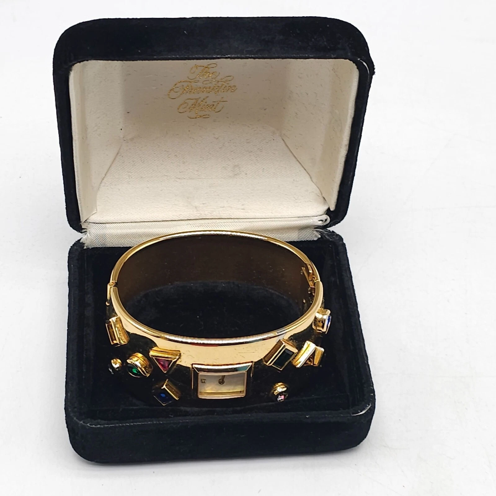 Vintage Franklin Mint Gold-Tone Bangle Watch With Colorful Gemstone Accents Box