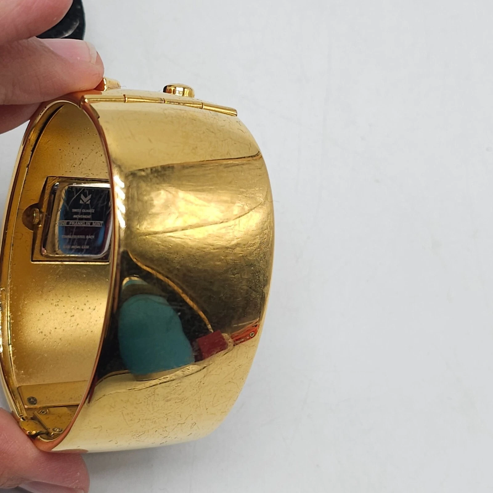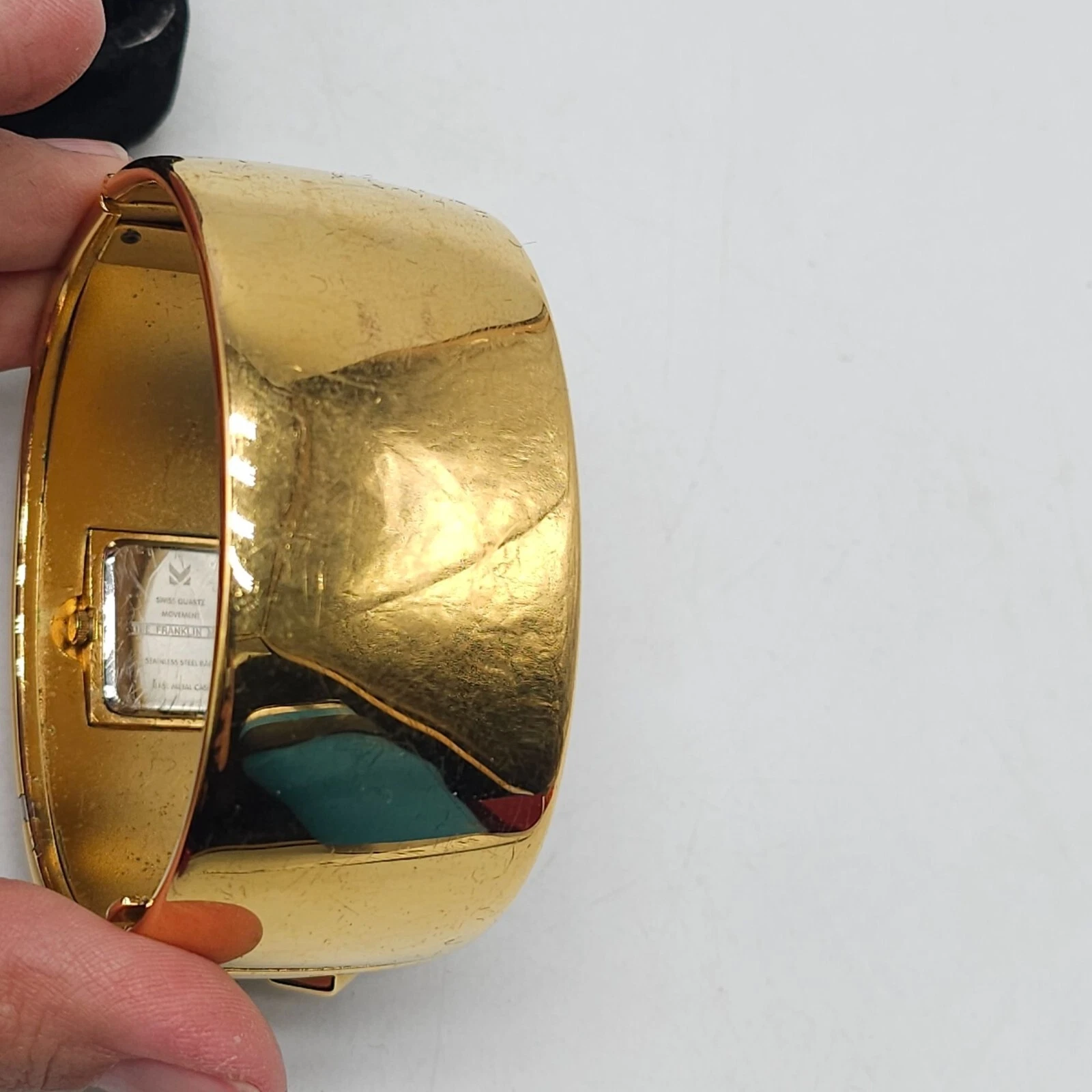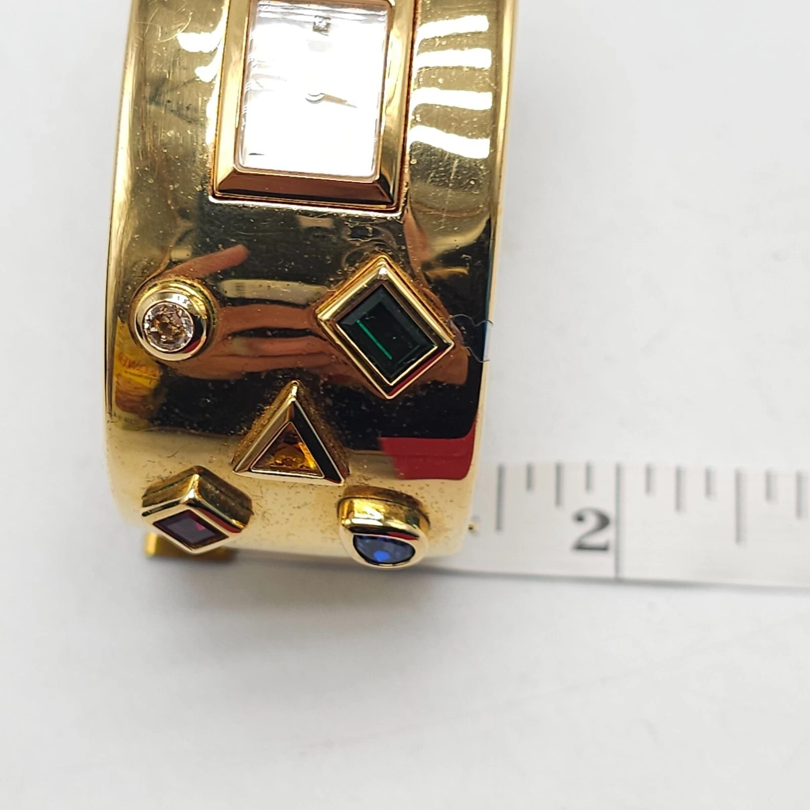 Vintage Franklin Mint Gold-Tone Bangle Watch With Colorful Gemstone Accents Box