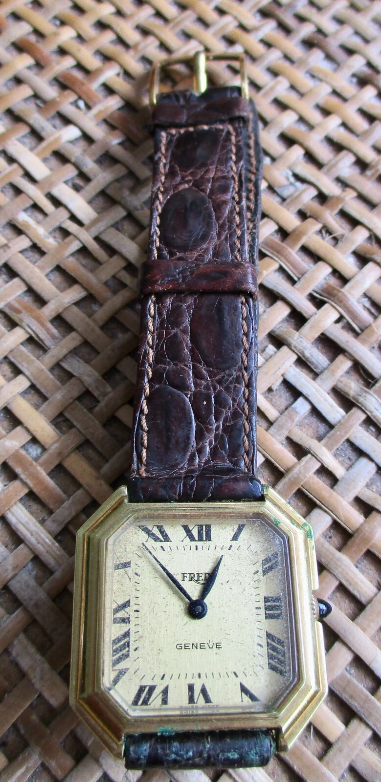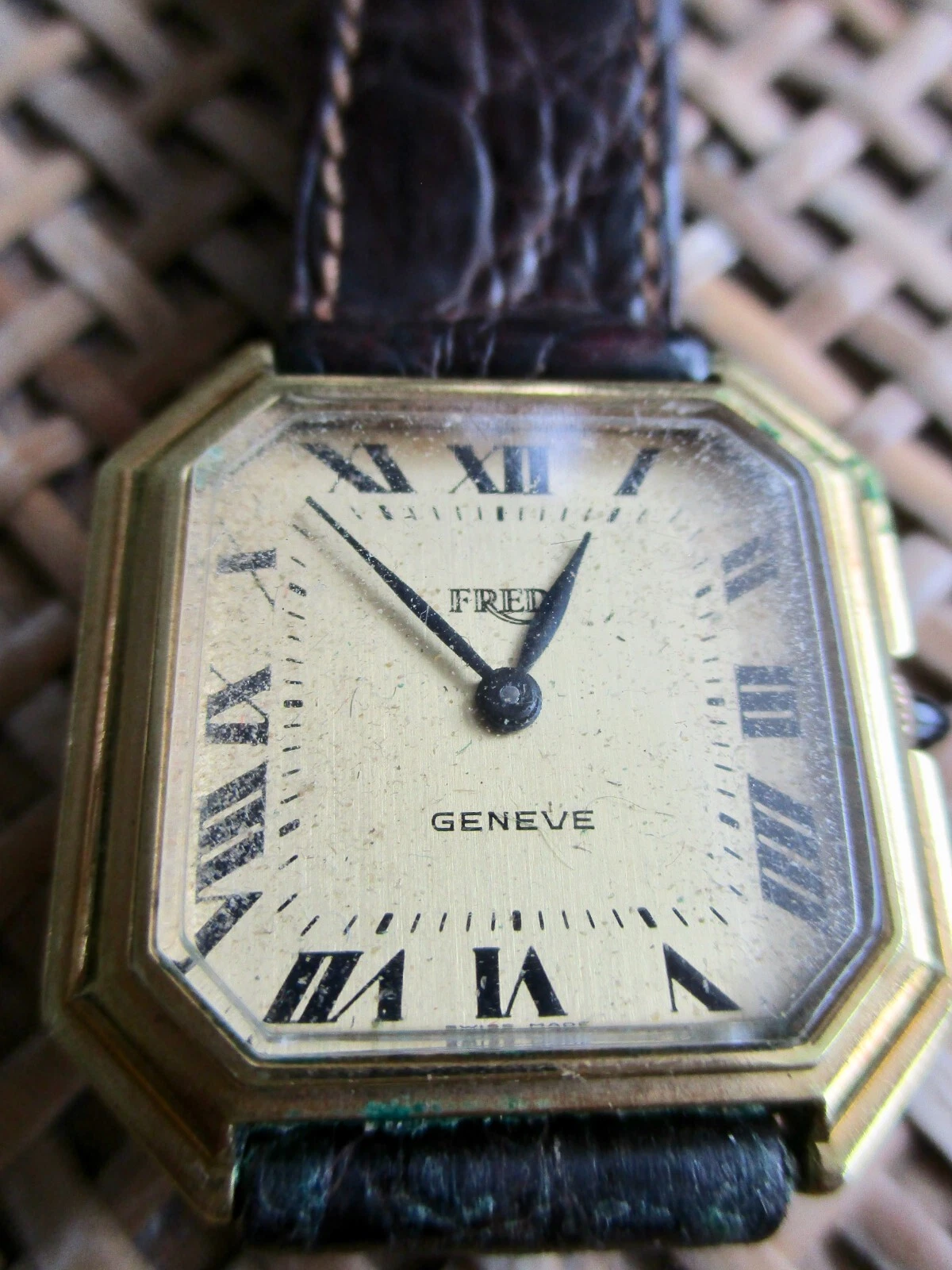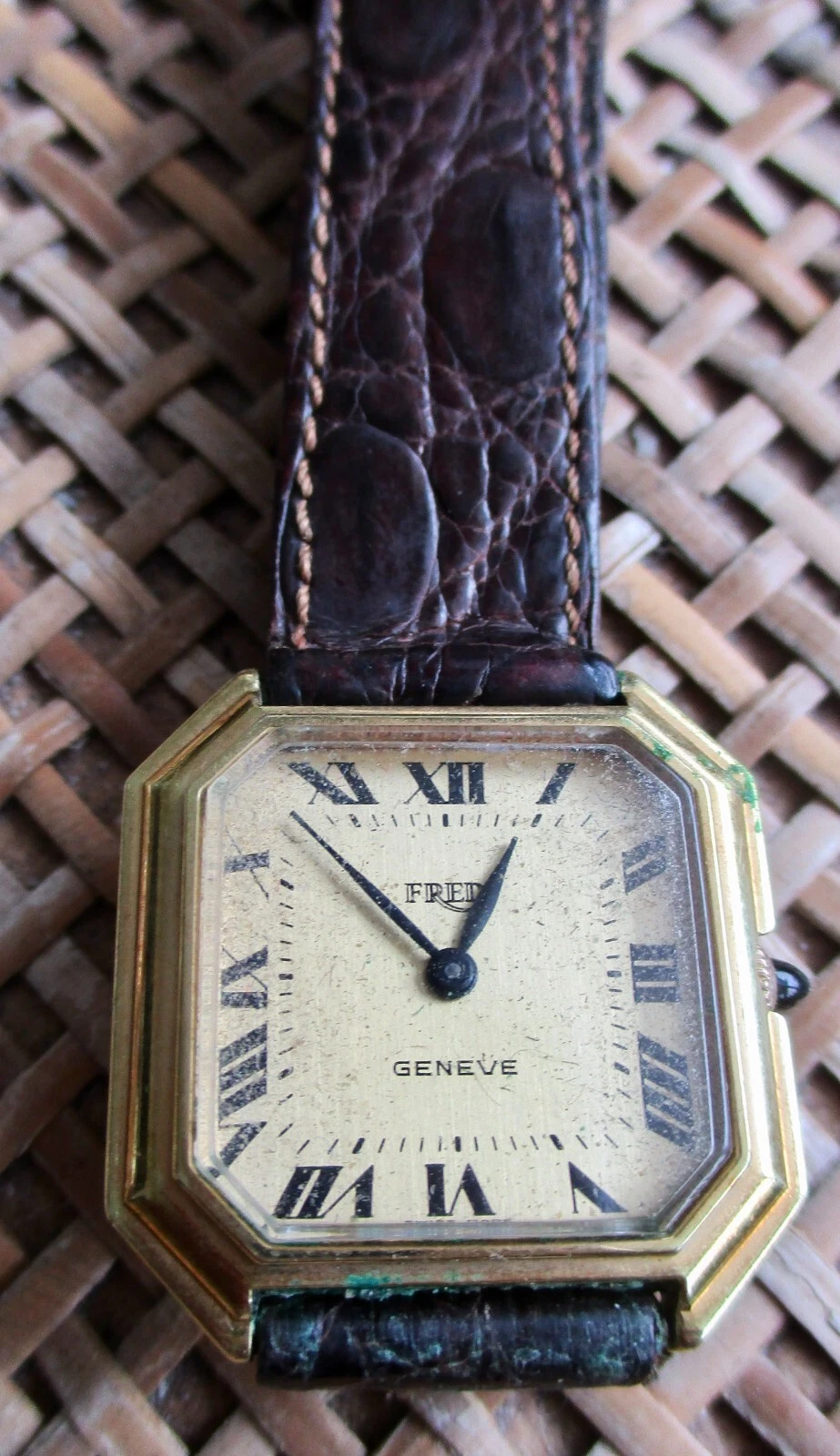 VINTAGE FRED STEPPED OCTAGON LADIES 18K GOLD PLATED 27 MM MANUAL WIND , WORKING