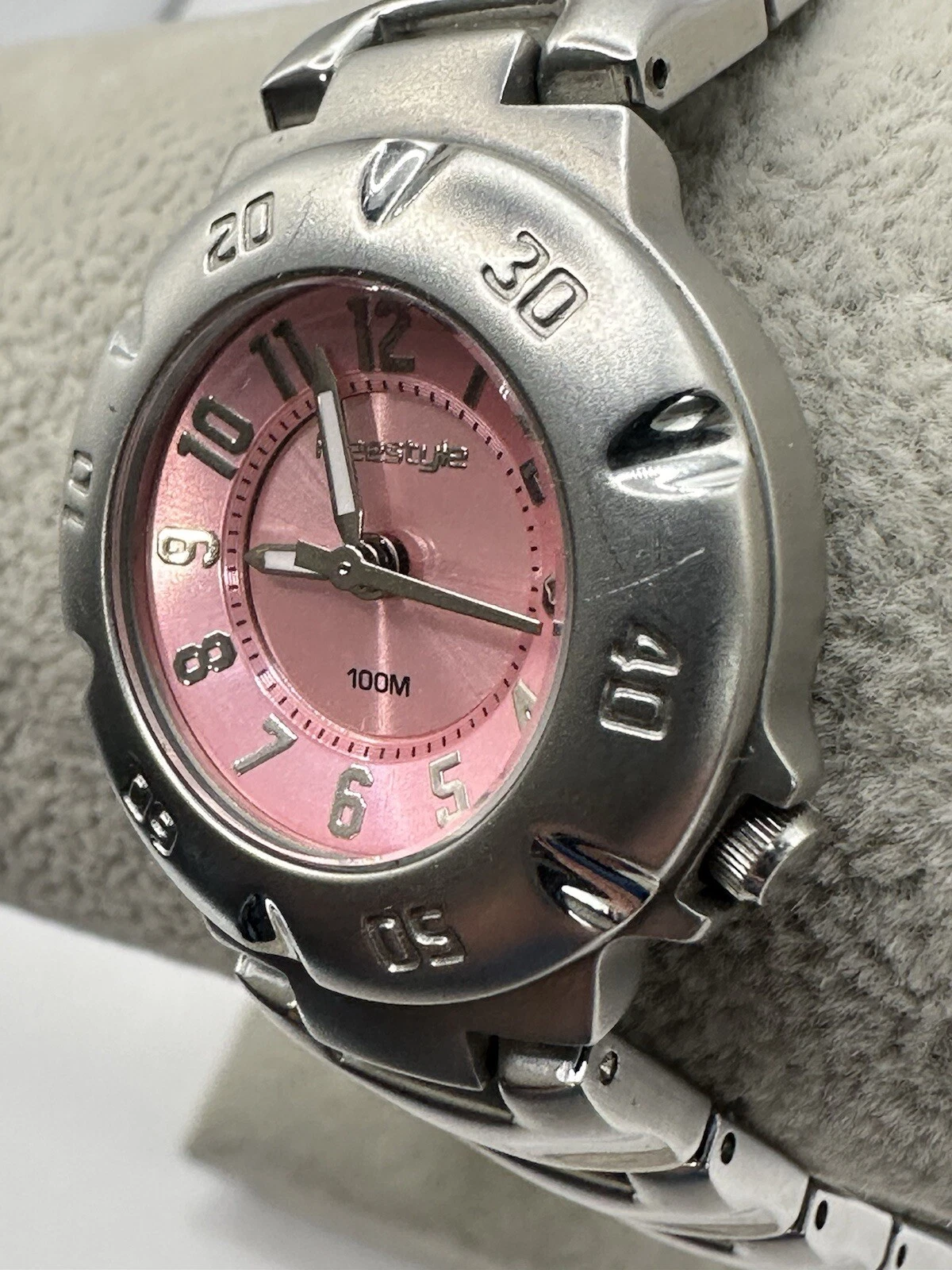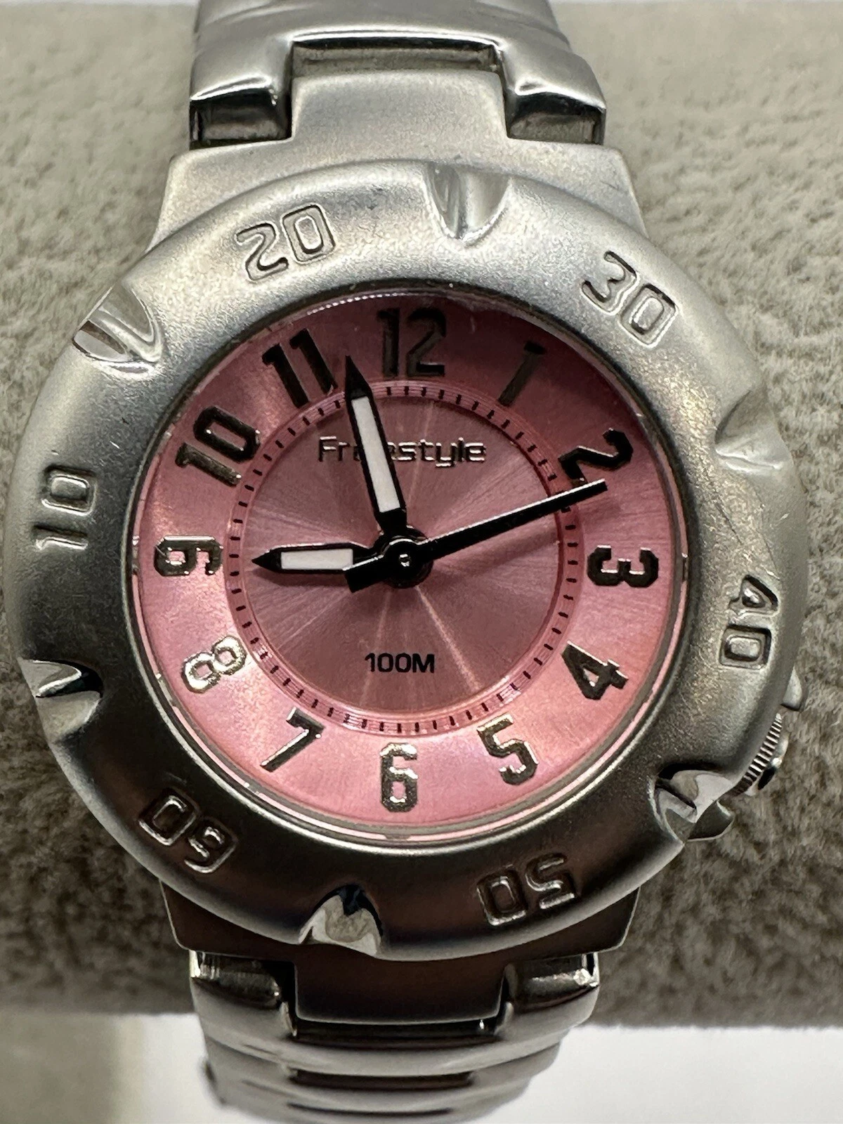 Vintage Freestyle Bump 627 27mm 6" New Battery Women Surf Dive Watch Pink Dial V