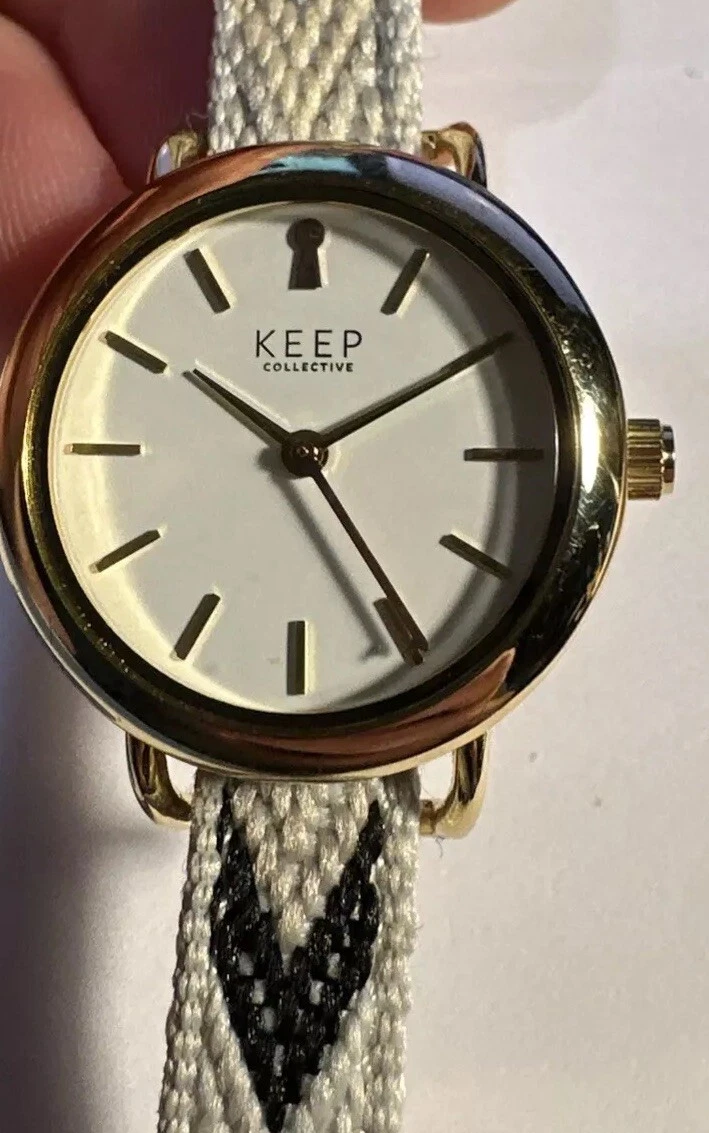 Keep Collective Gold Ladies Watch Round Soft Cotton Strap - New Battery