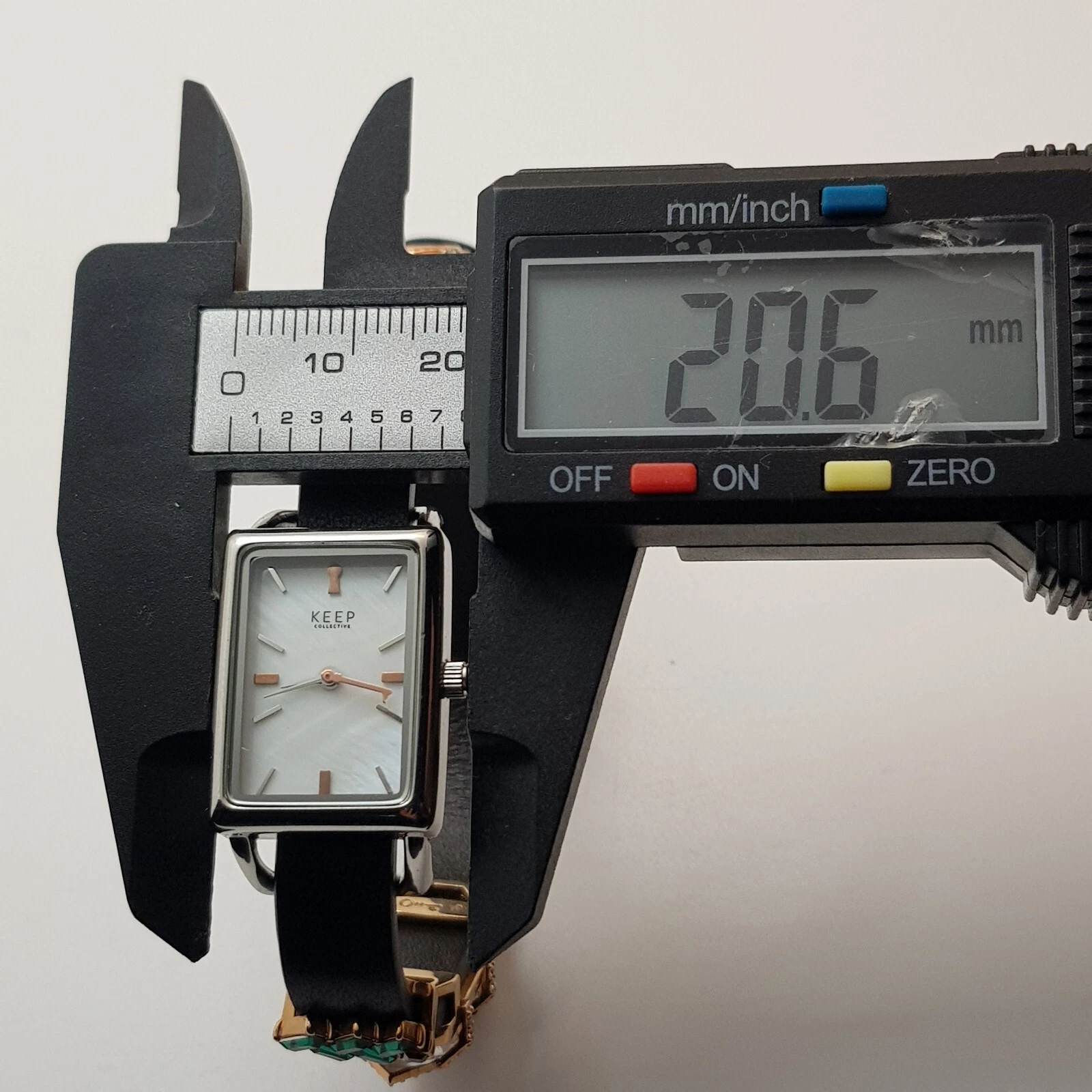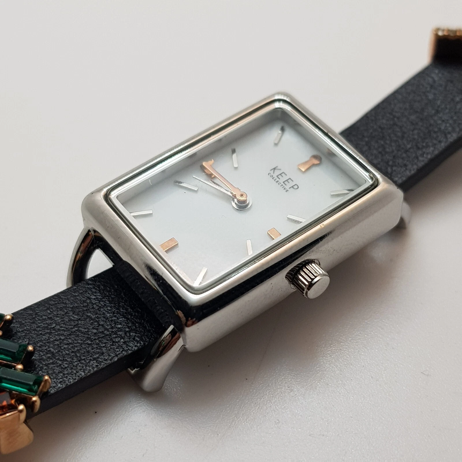 Keep Collective Women's Quartz Watch White Dial Black Leather Band NEW BATTERY