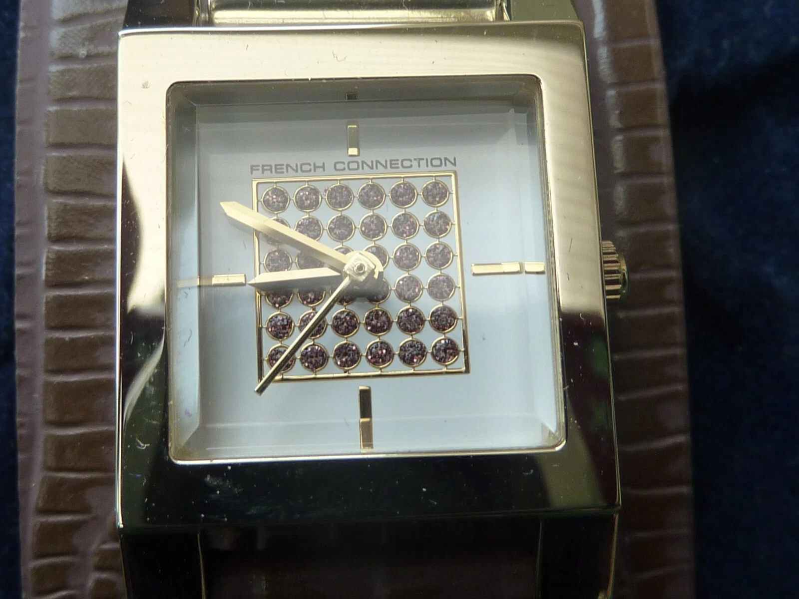 FCUK TIME SQUARE DIAL WATCH WITH LEATHER STRAP N9