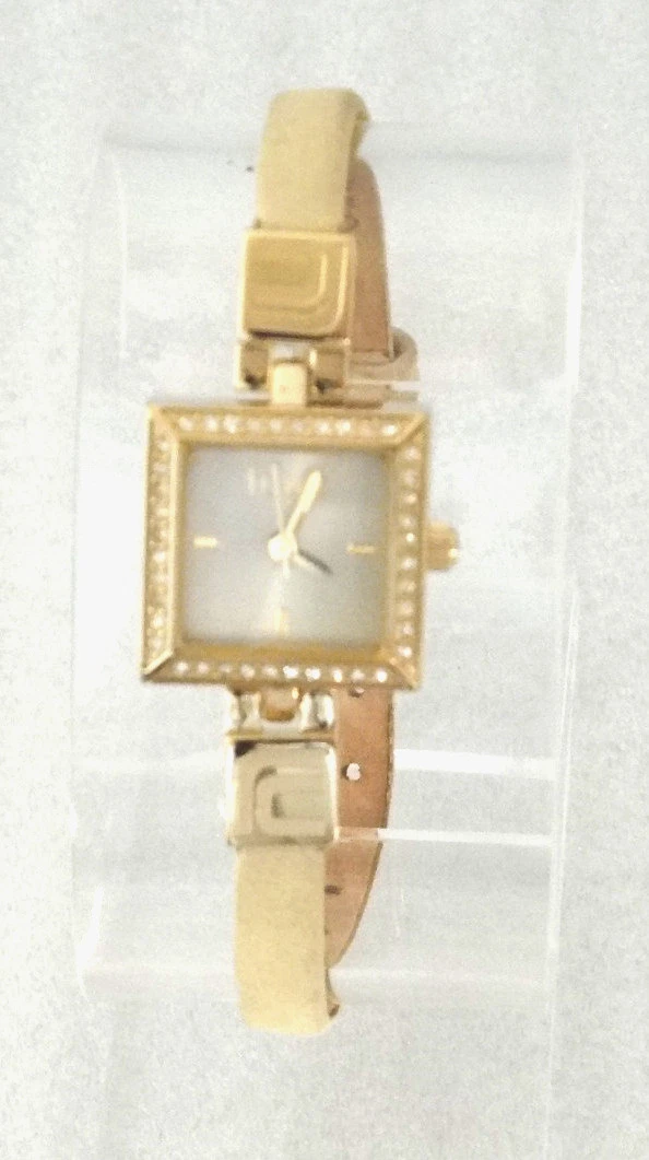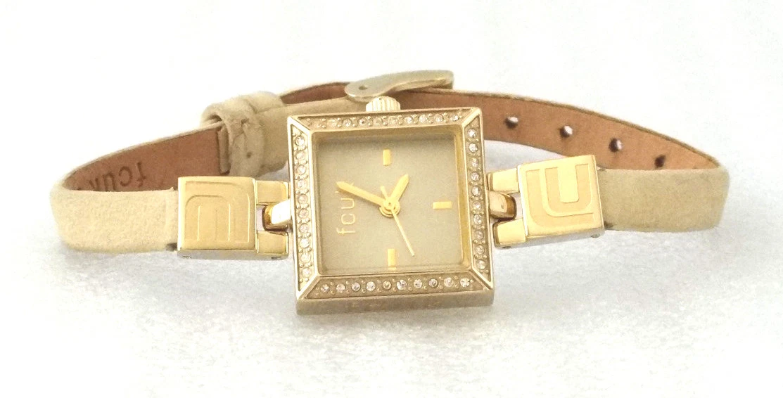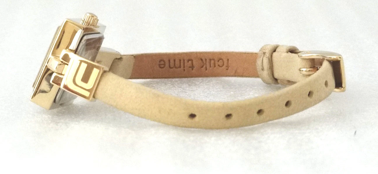 Fcuk Time F2V323 Gold Tone Case Crystal Bezel Genuine Leather Band Women's Watch