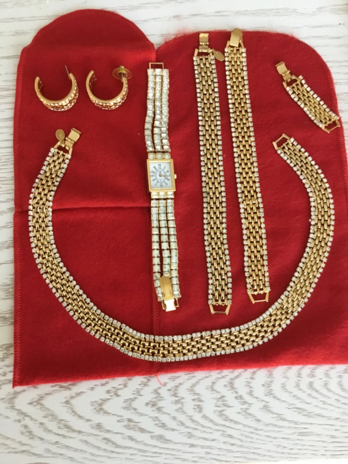 Kenneth Jay Lane Triple Row Crystal Accents Lot-Watch/Necklace/Bracelets/Earring