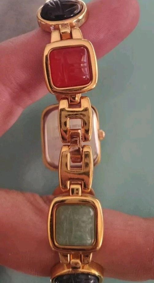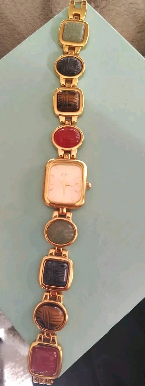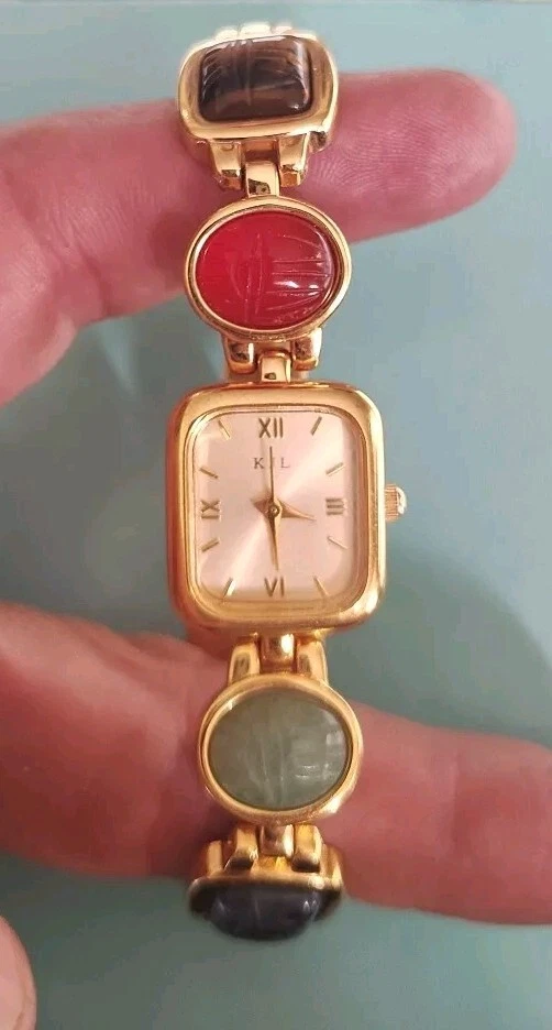 Kenneth Jay Lane KJL Women's Watch Egyptian Scarab Beetle Gemstones Gold Tone MT
