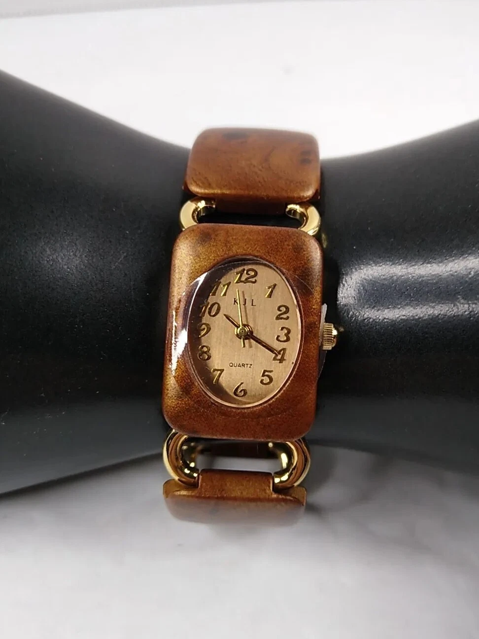 KENNETH J LANE KJL Wooden Toned Watch New Battery New Without Tag