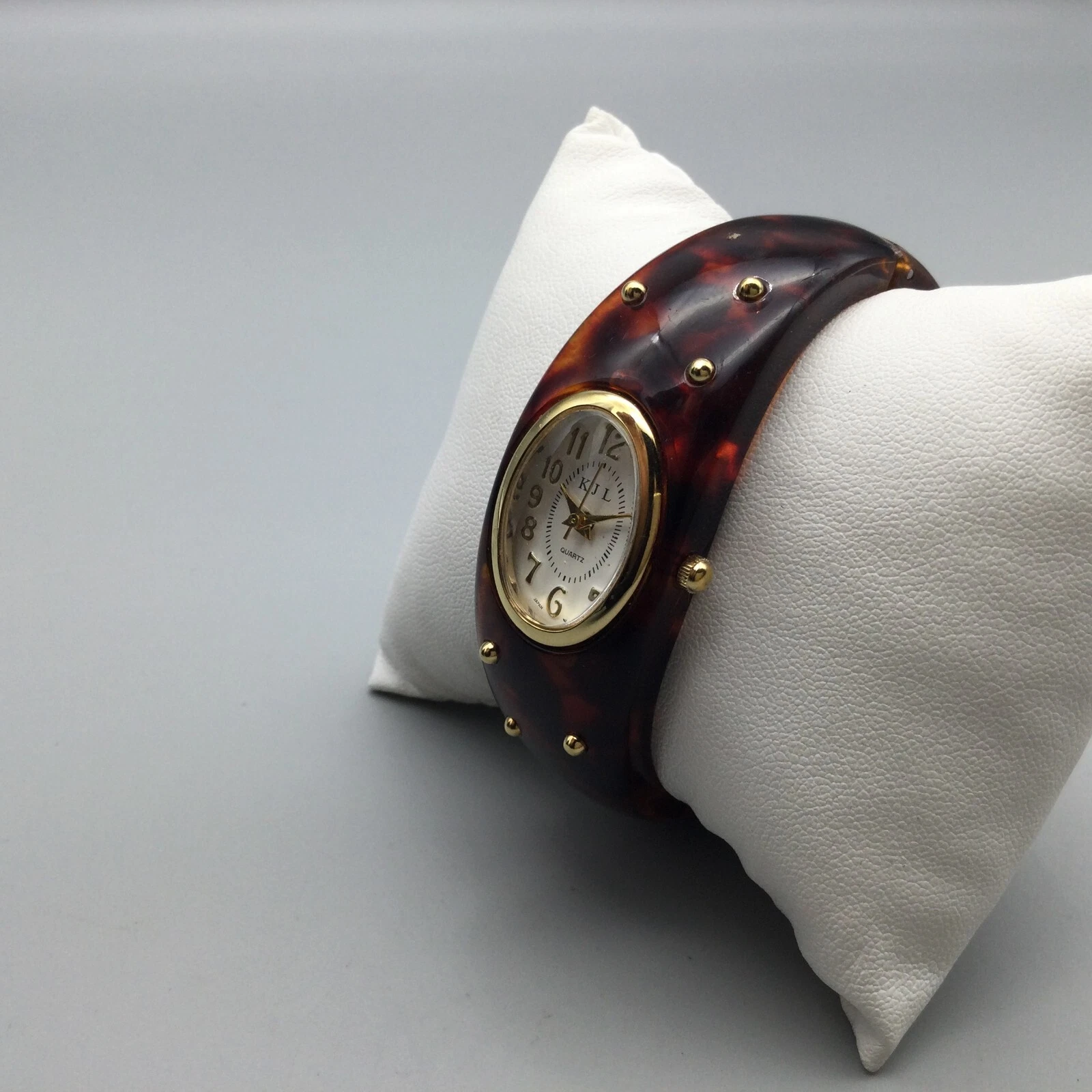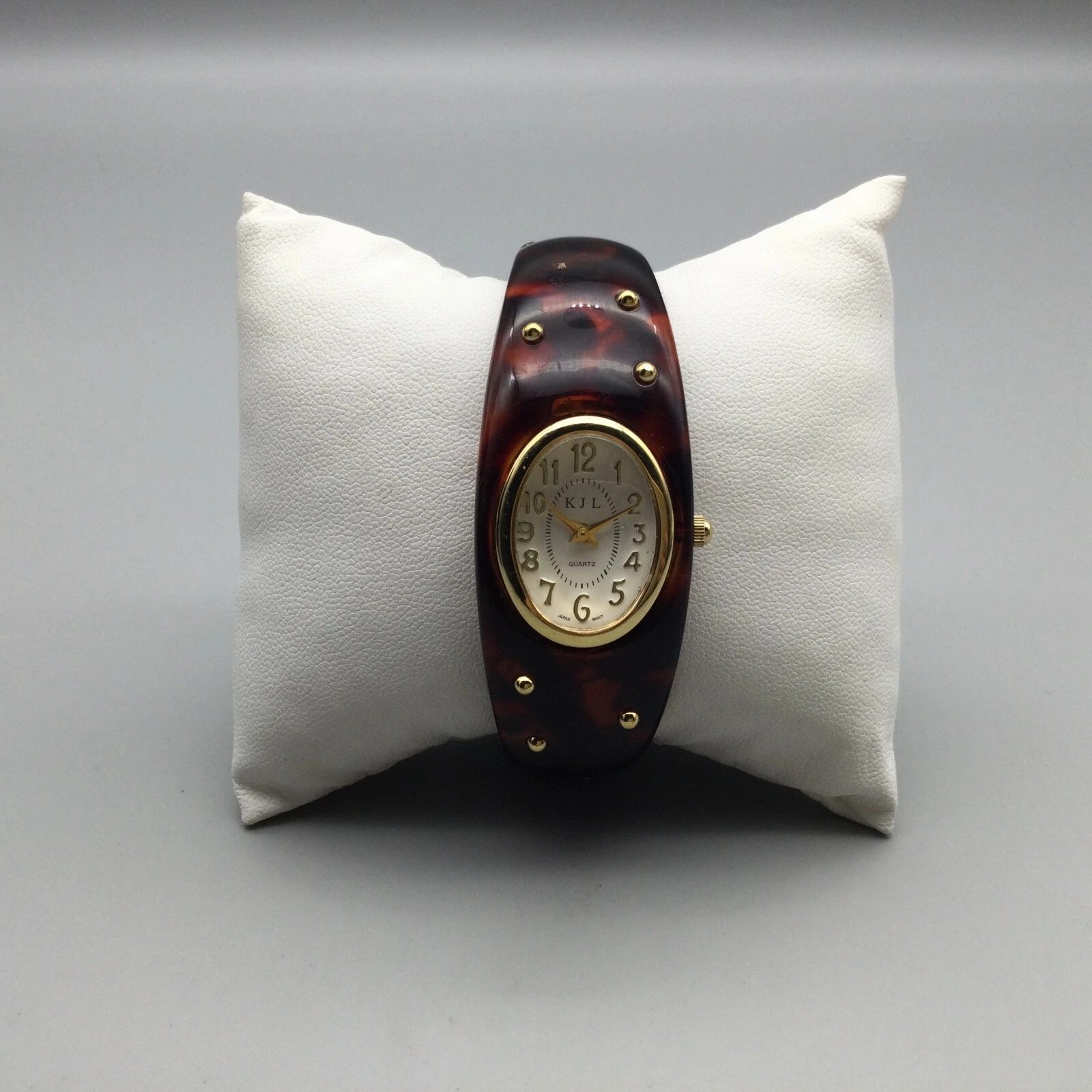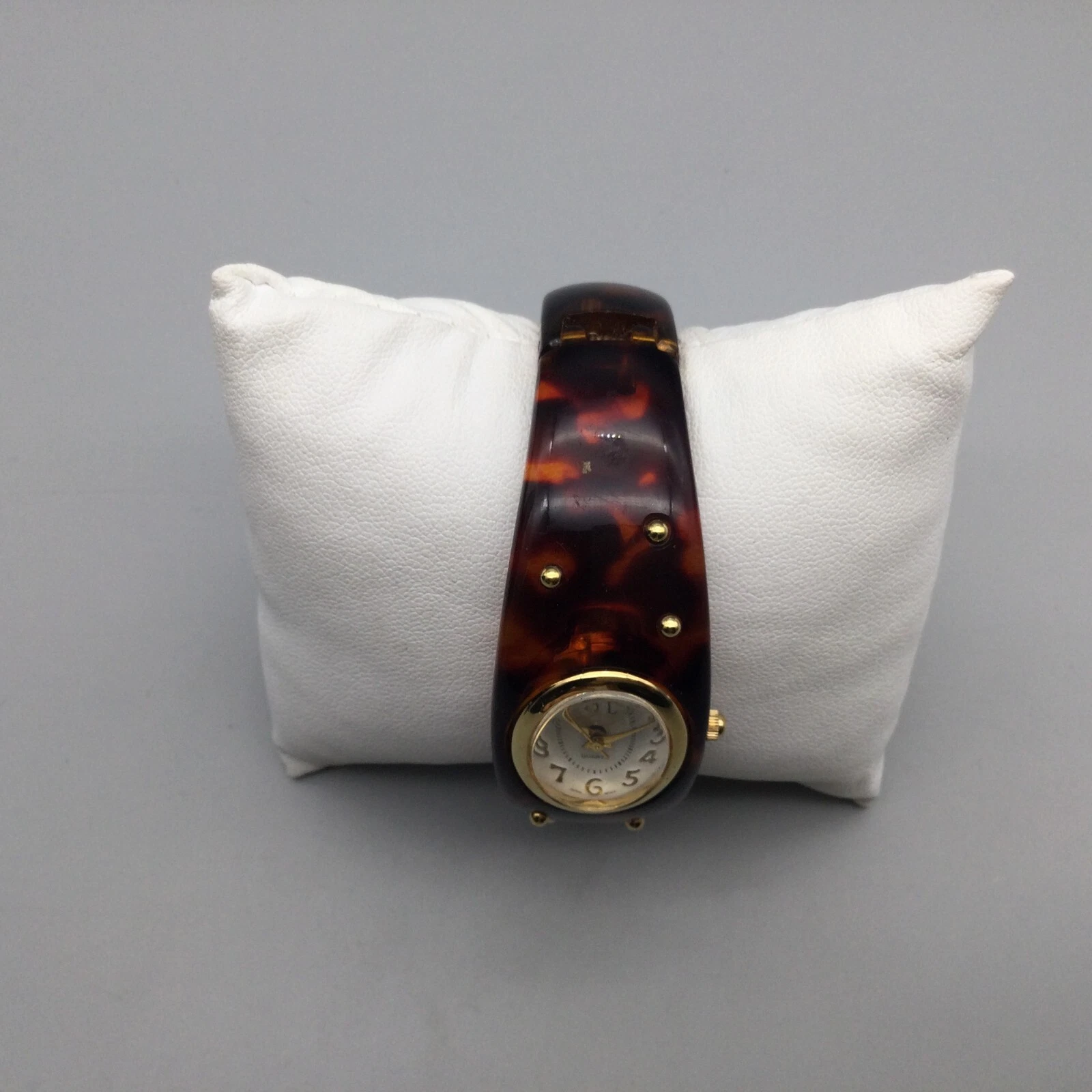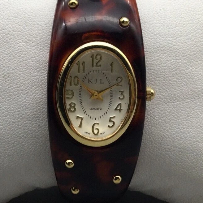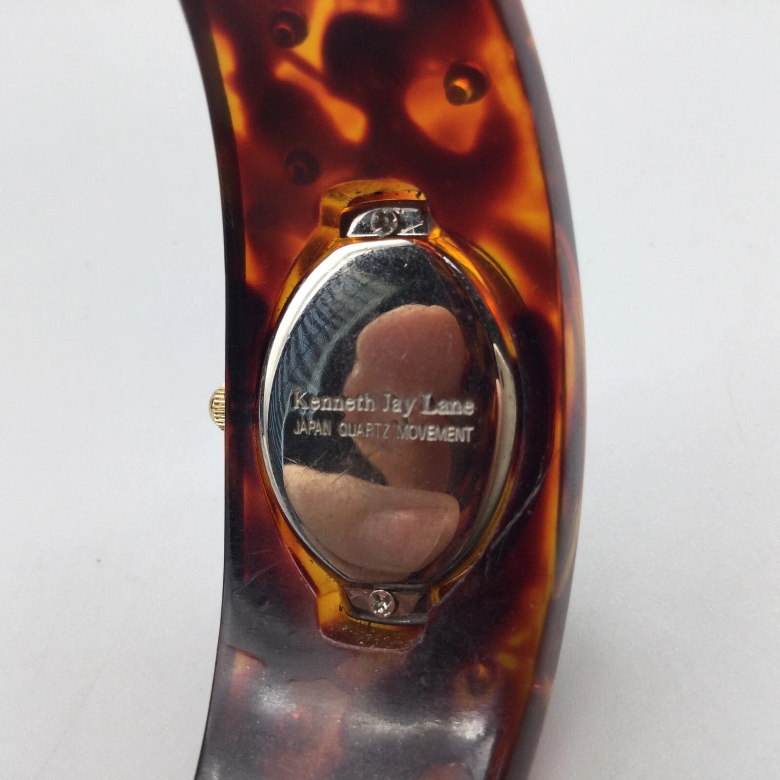 Vtg Kenneth Jay Lane KJL Watch Women Gold Tone Faux Tortoise New Battery 6.75"