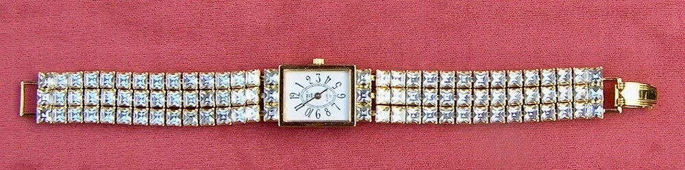 Vintage Kenneth Jay Lane Gold Tone Chain  Crystal Bracelet Watch