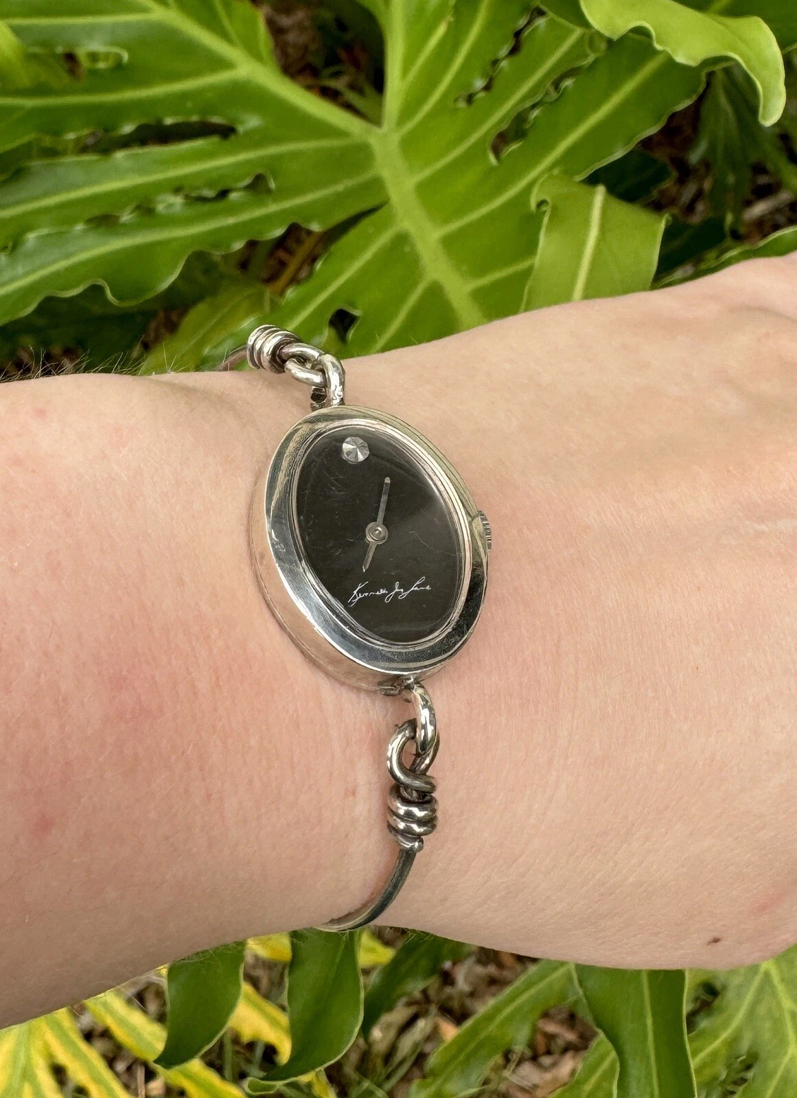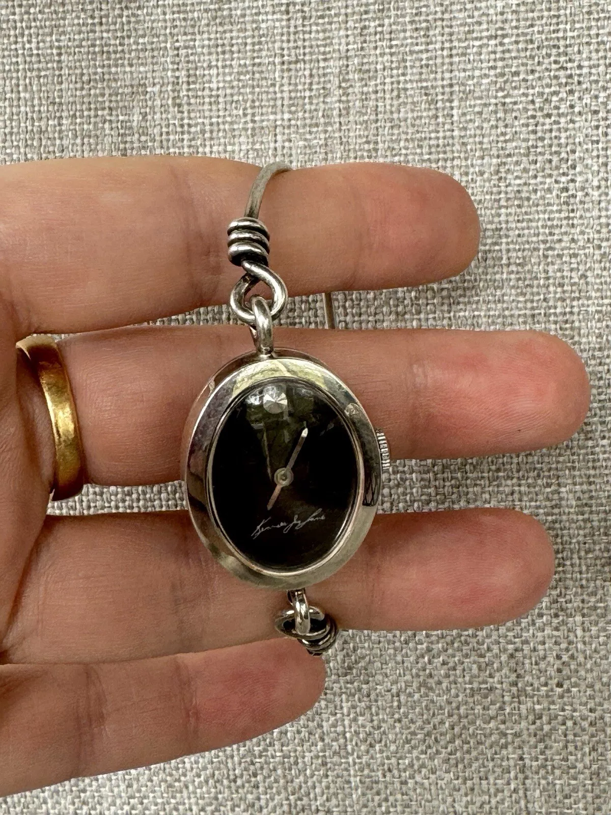 Vintage KENNETH JAY LANE 925 Sterling Silver 17j WindUp Ladies Bangle Watch Runs