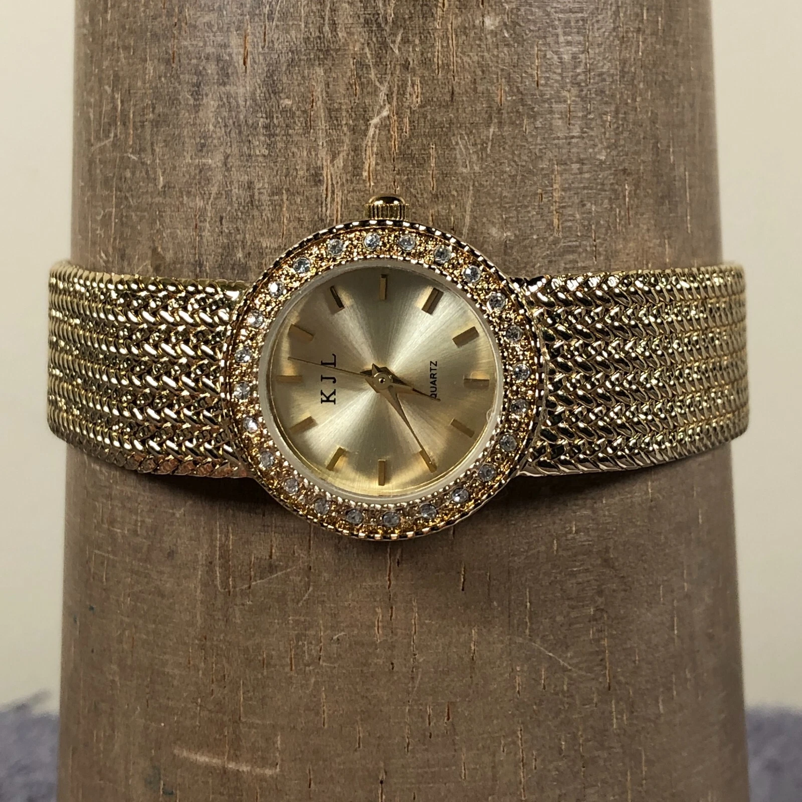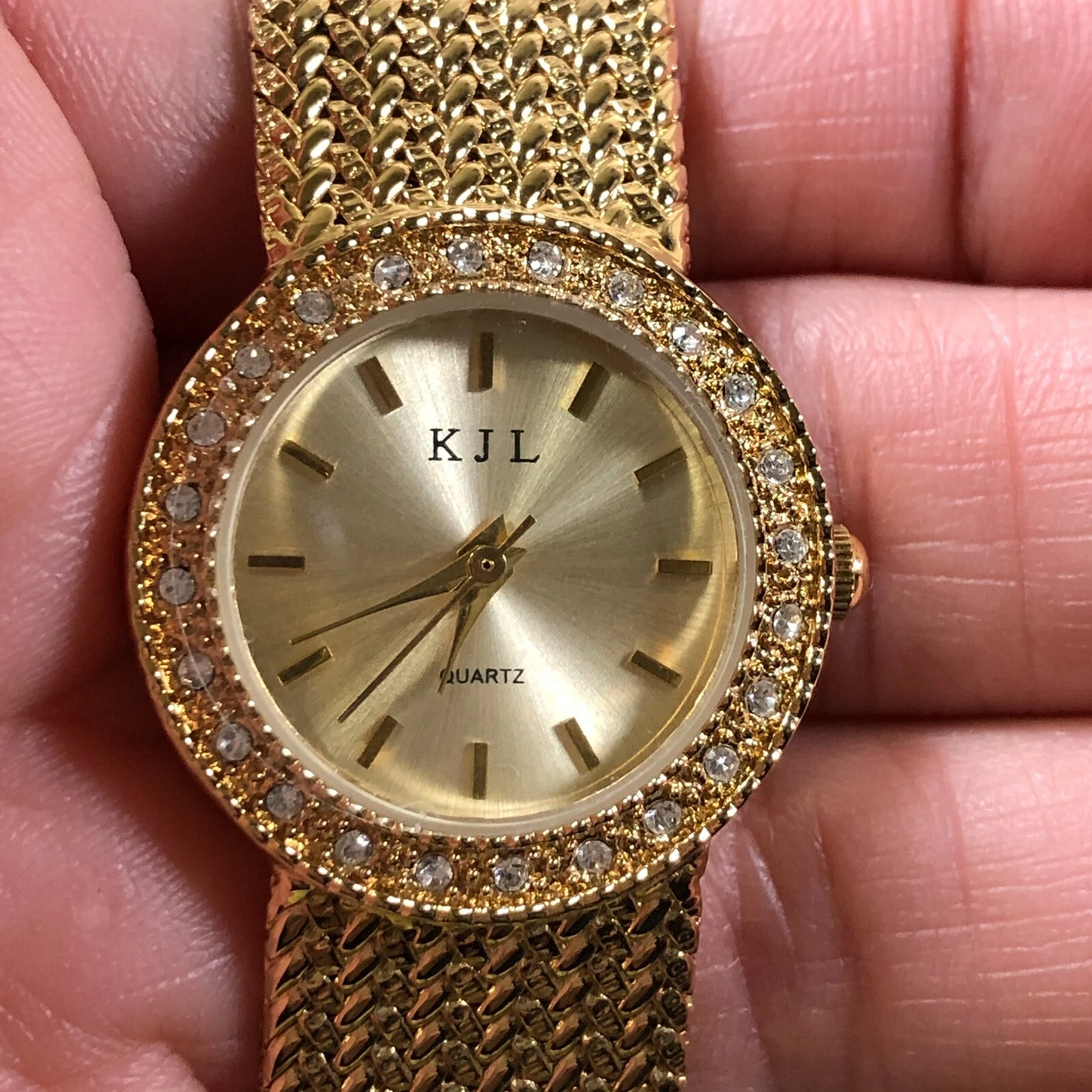 Kenneth Jay Lane Women Dress Pave Gold Tone Round 25mm Quartz Analog Watch 8"