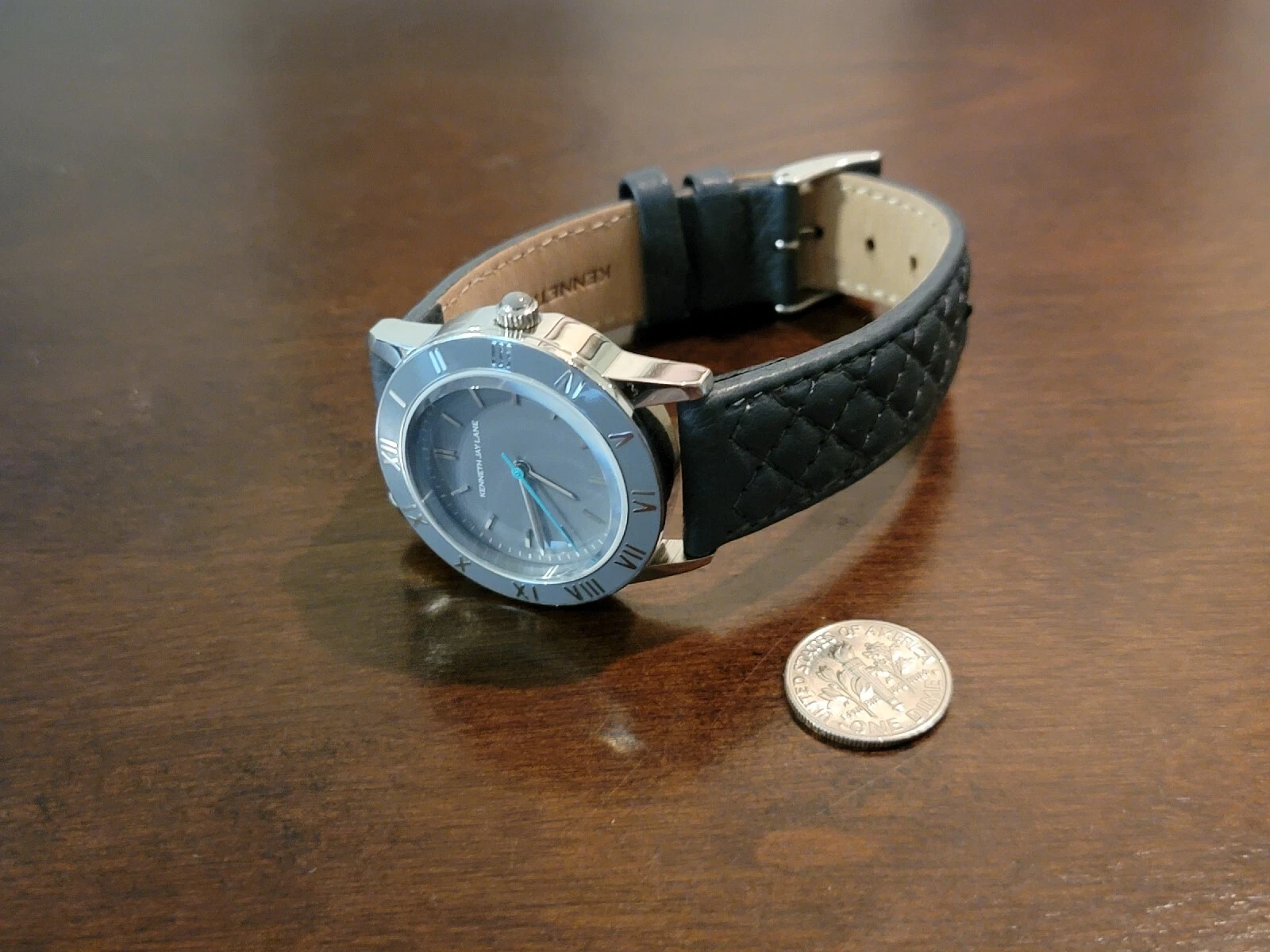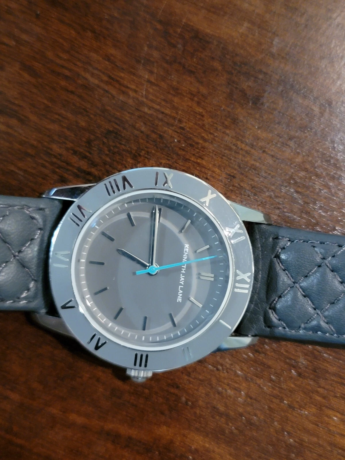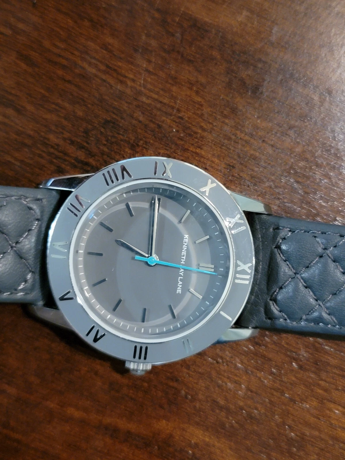 Kenneth Jay Lane Women's Sliver tone gray leather band watch