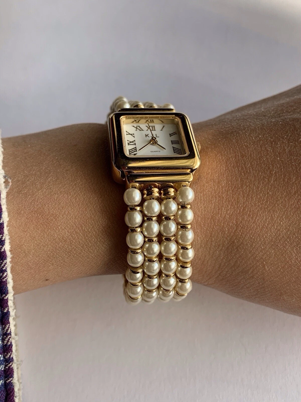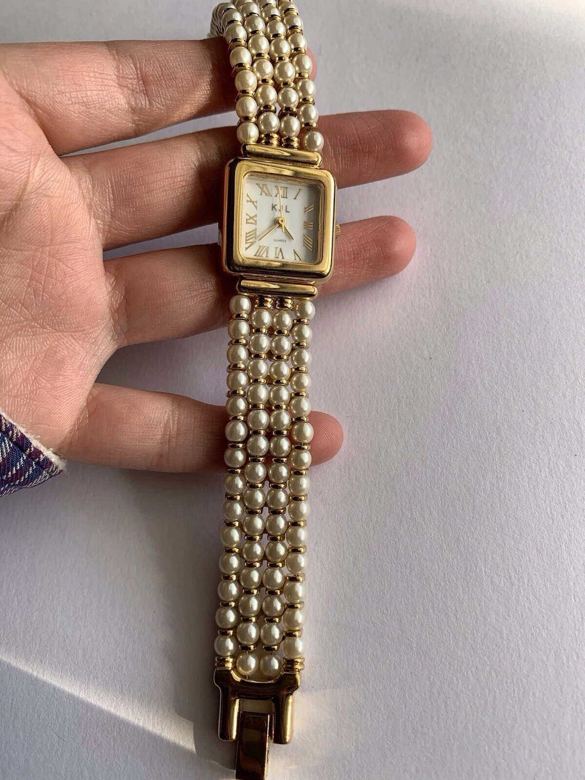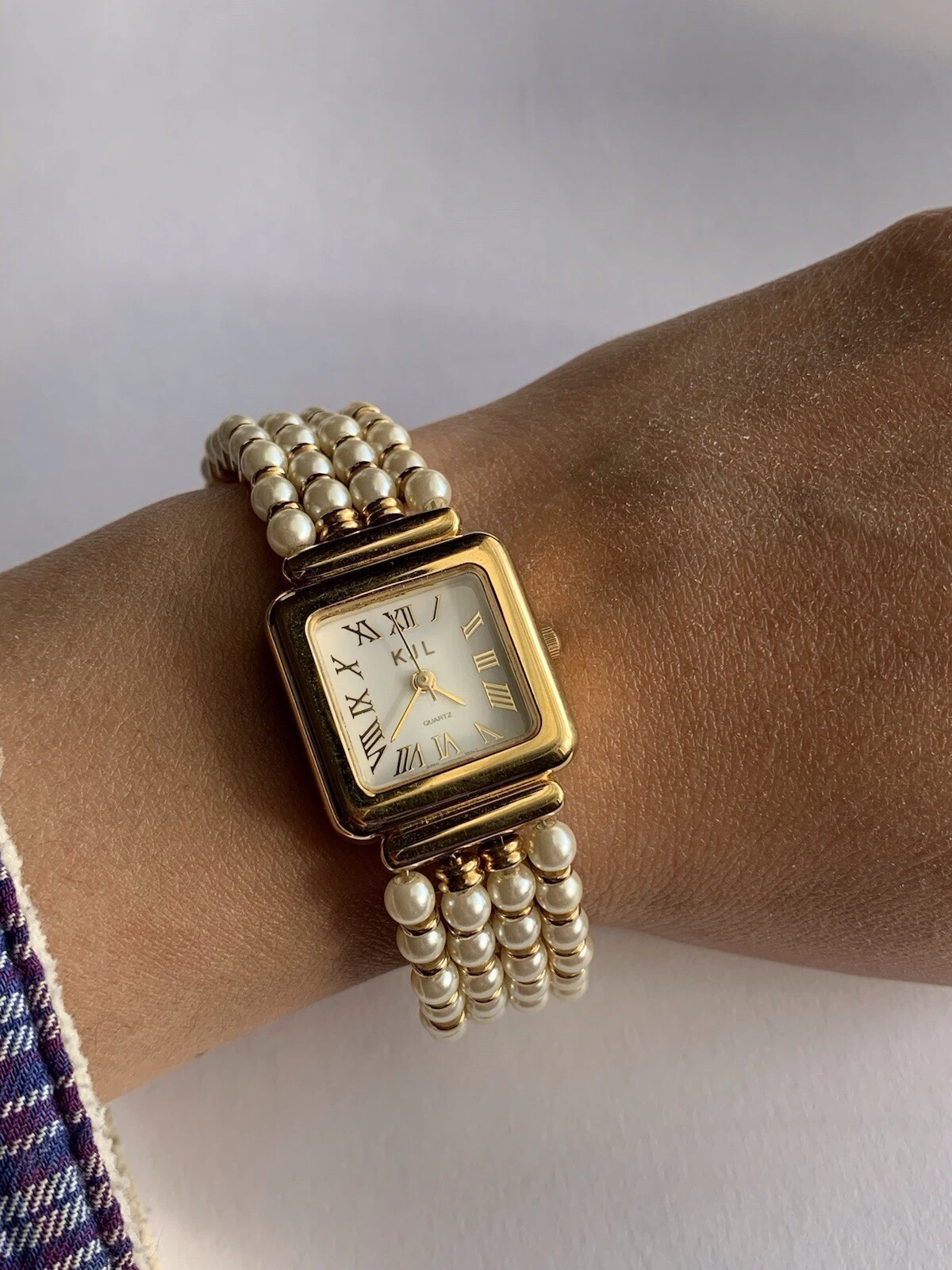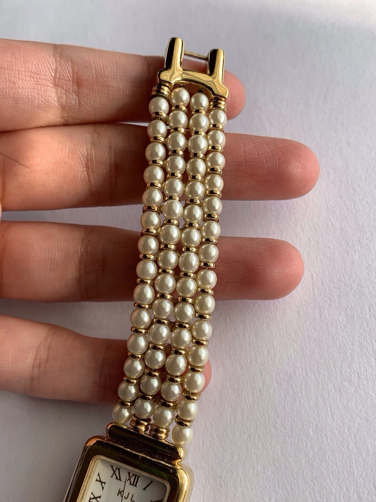 Kenneth Jay lane KJL Pearl Strands Gold Watch Untested