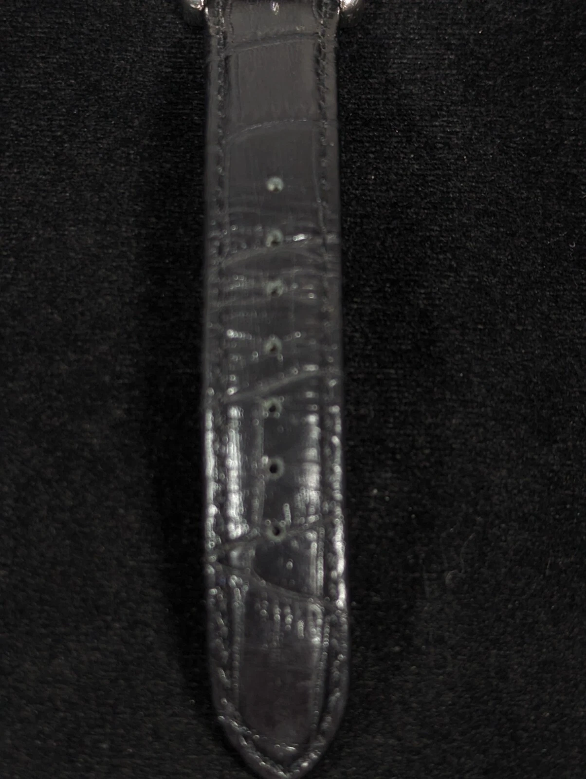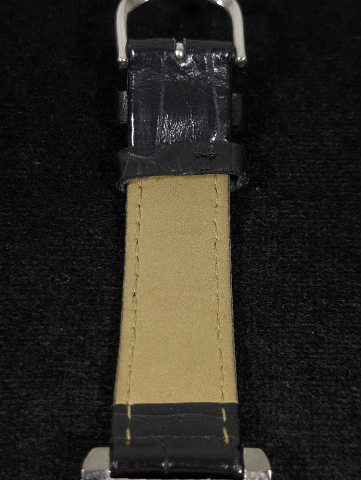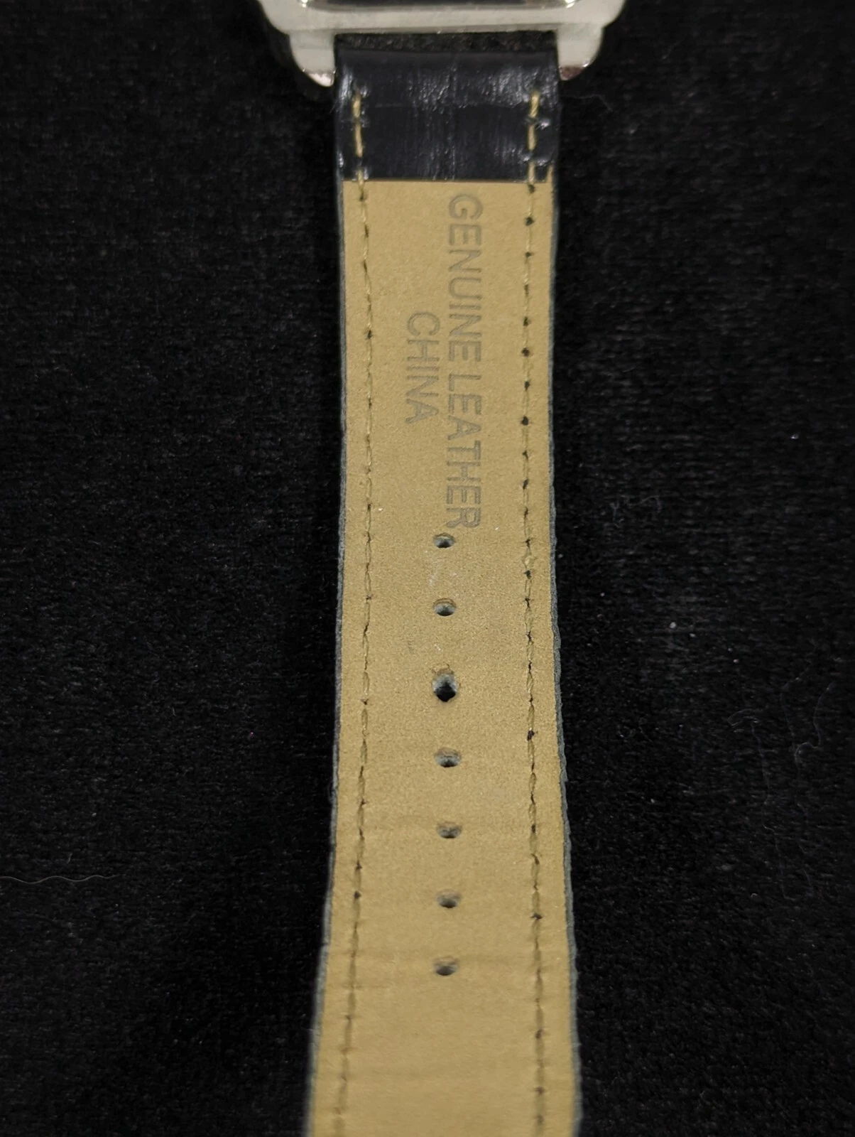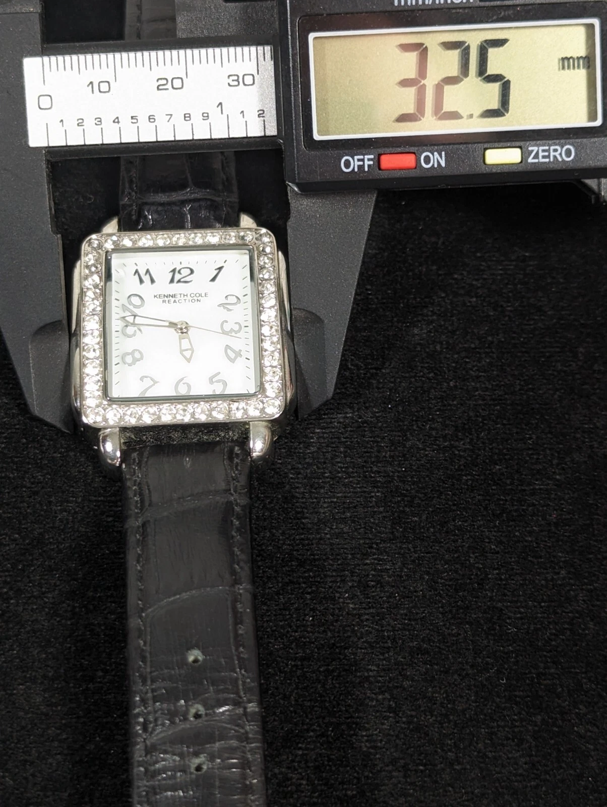 Kenneth Cole Reaction Crystal Accent Silver Tone Case Black Leather Band Watch