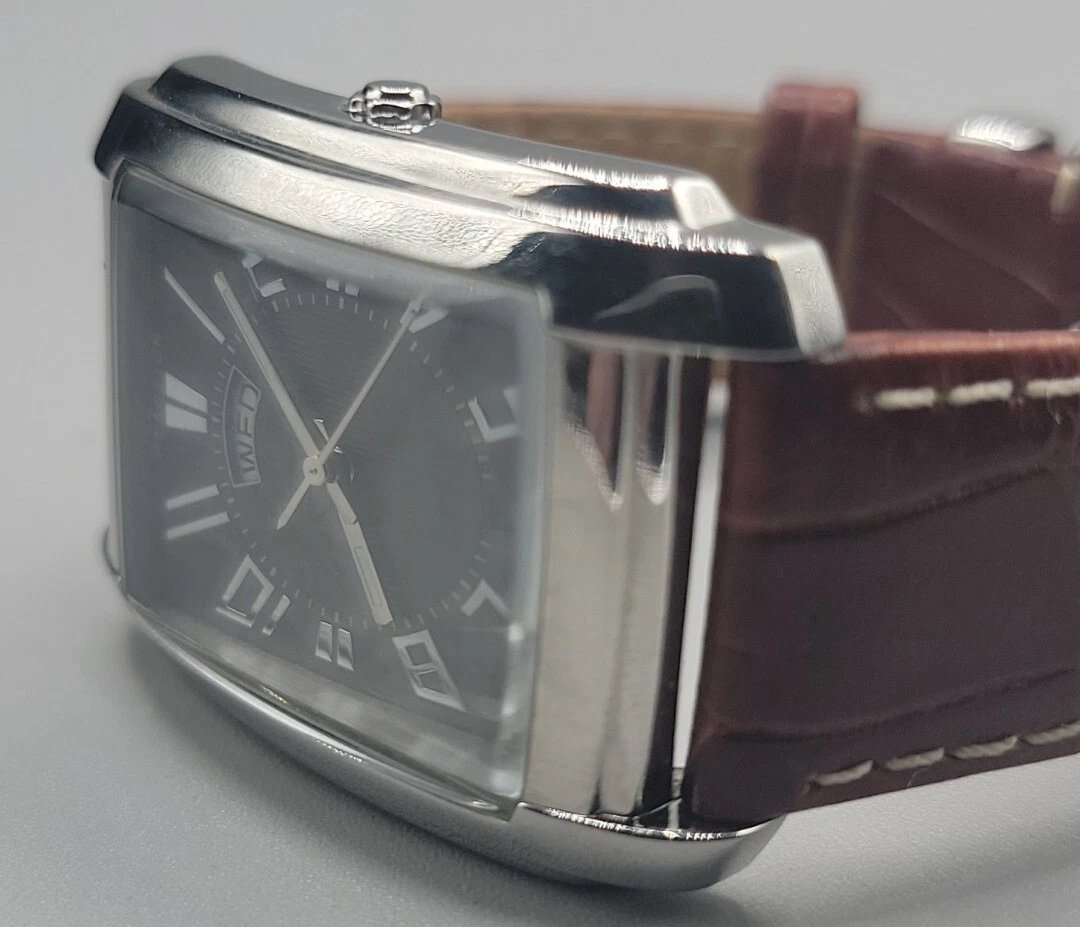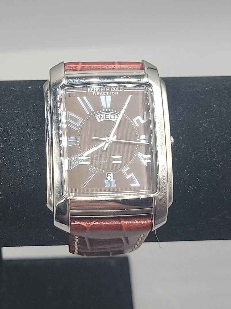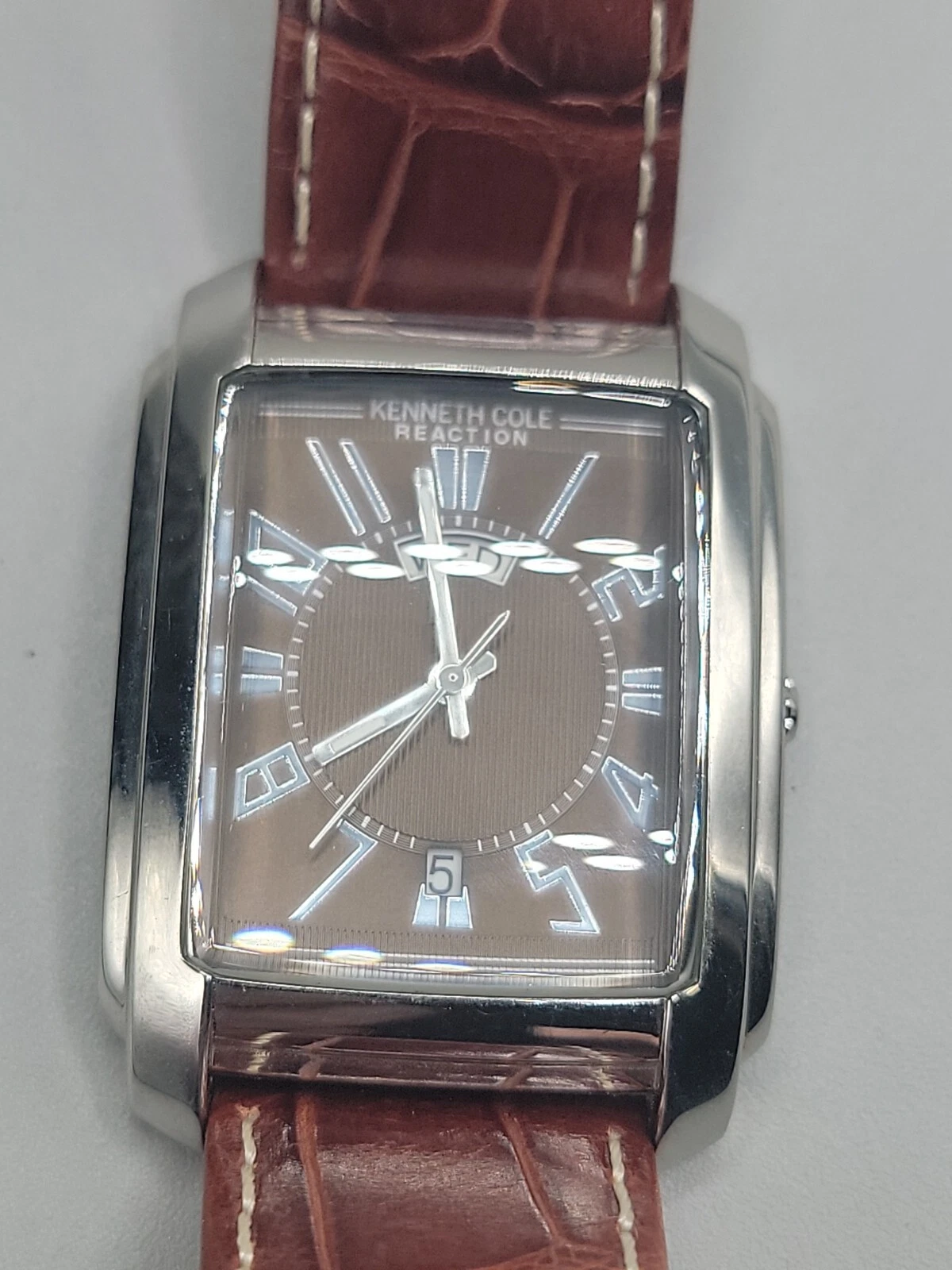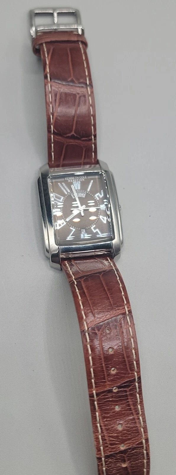 Kenneth Cole Reaction Mens Brown Watch KC1327 Croco Leather Band Date Display