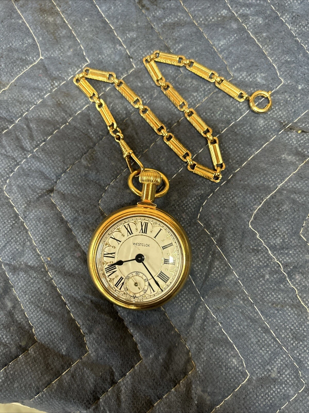Vintage Mechanical Westclox Train Pocket Watch Music Manual Wind