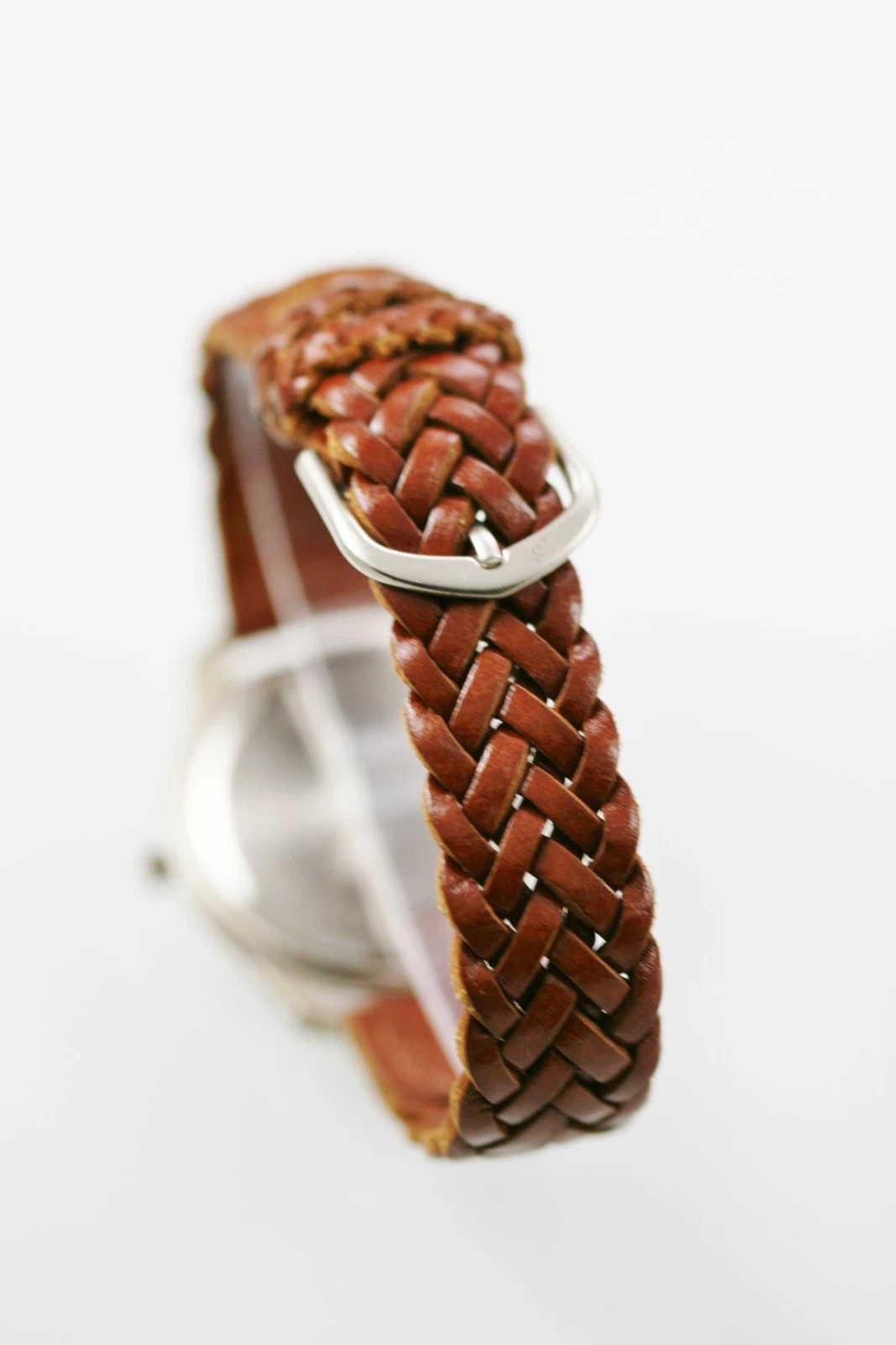Futura Watch Mens Stainless Silver Leather Brown Water Resist Luminescent Quartz