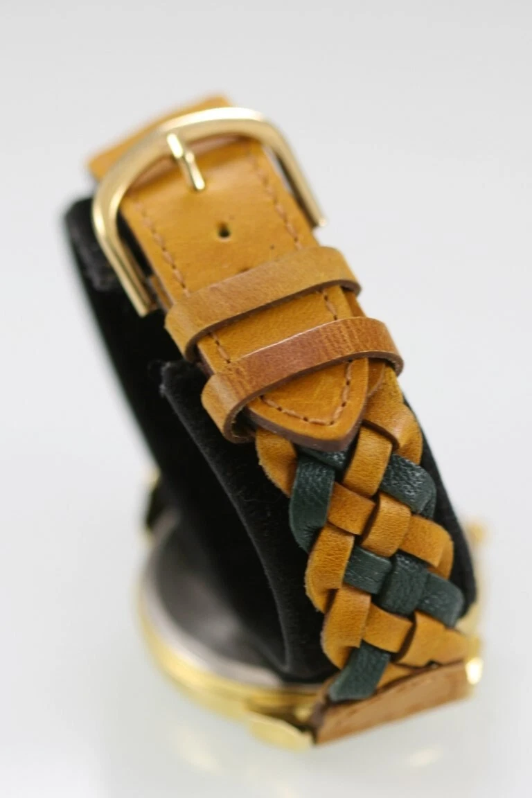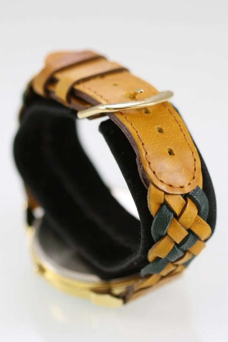 Futura Watch Men Gold Stainless St Battery Leather Brown WR White Green Quartz